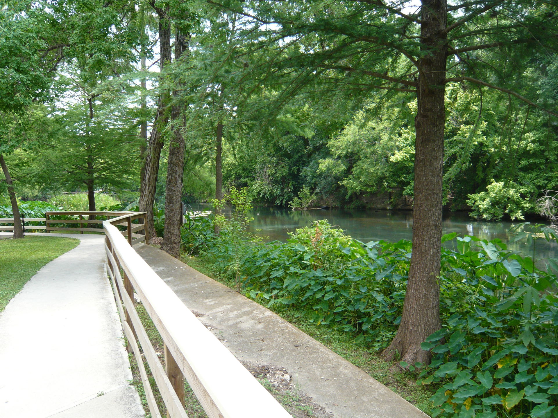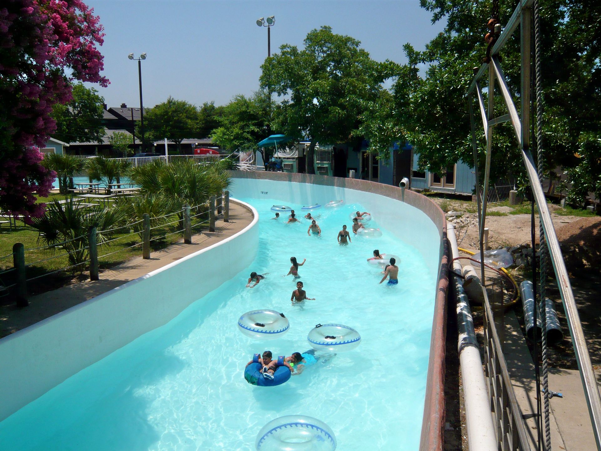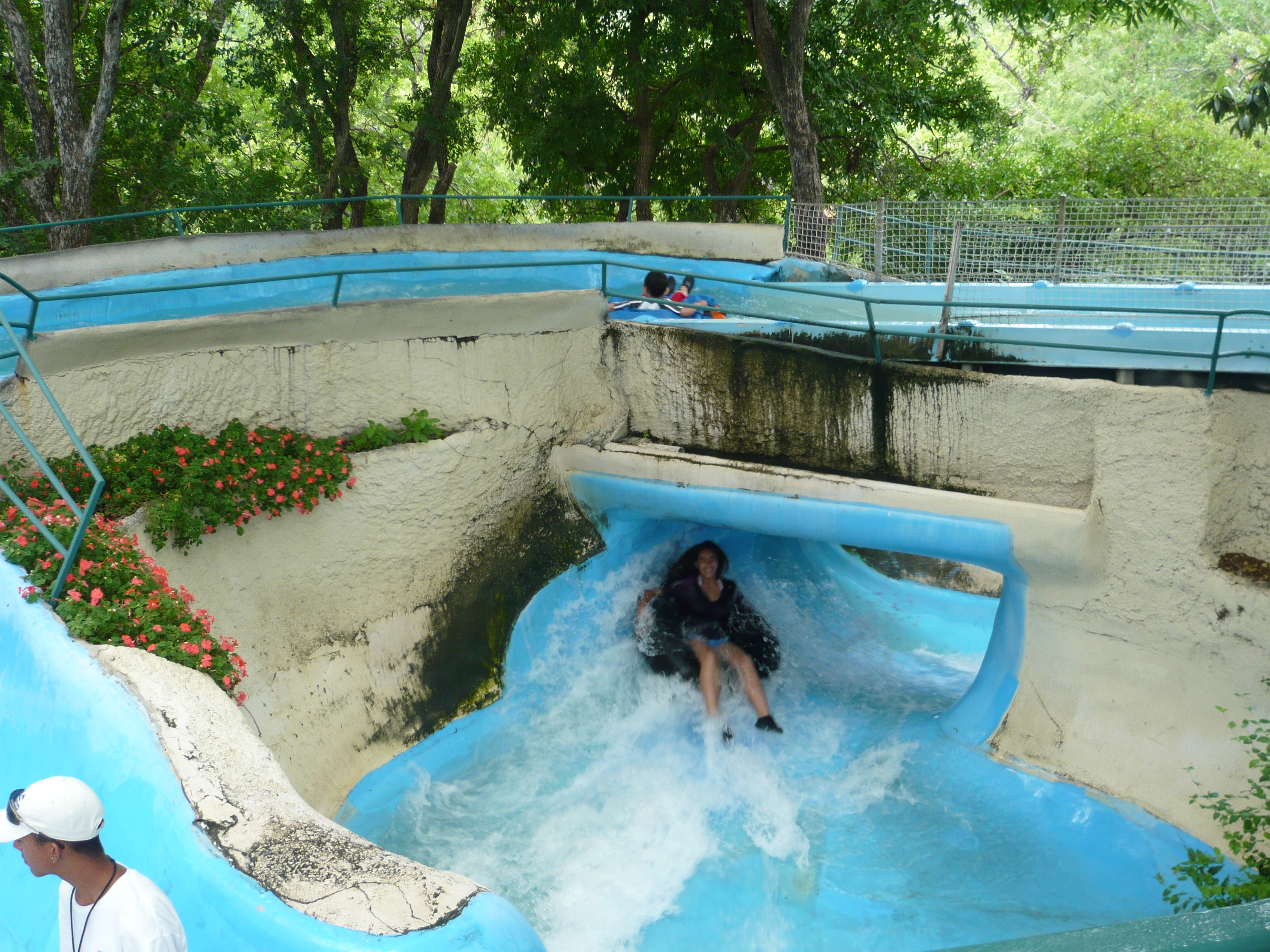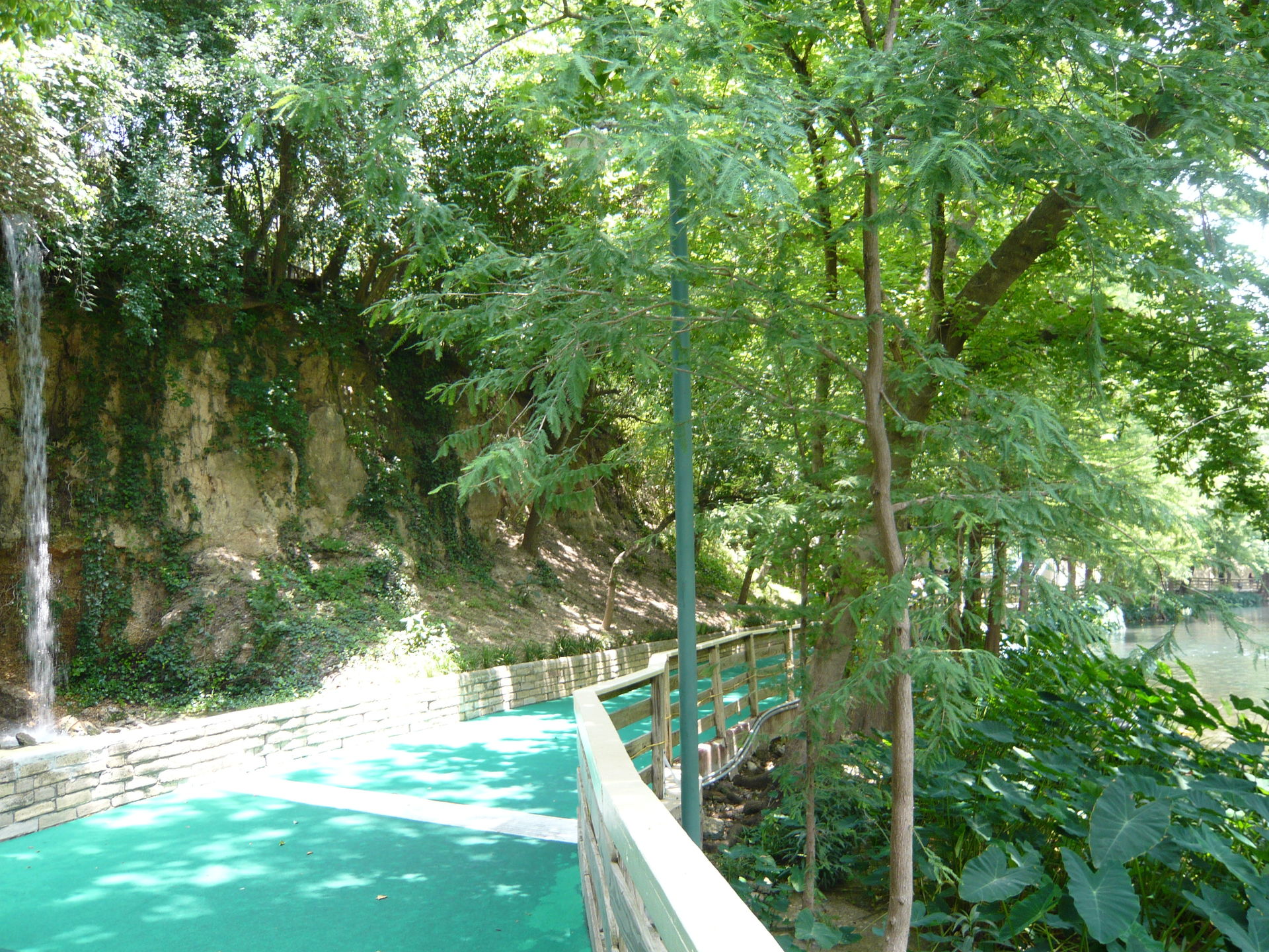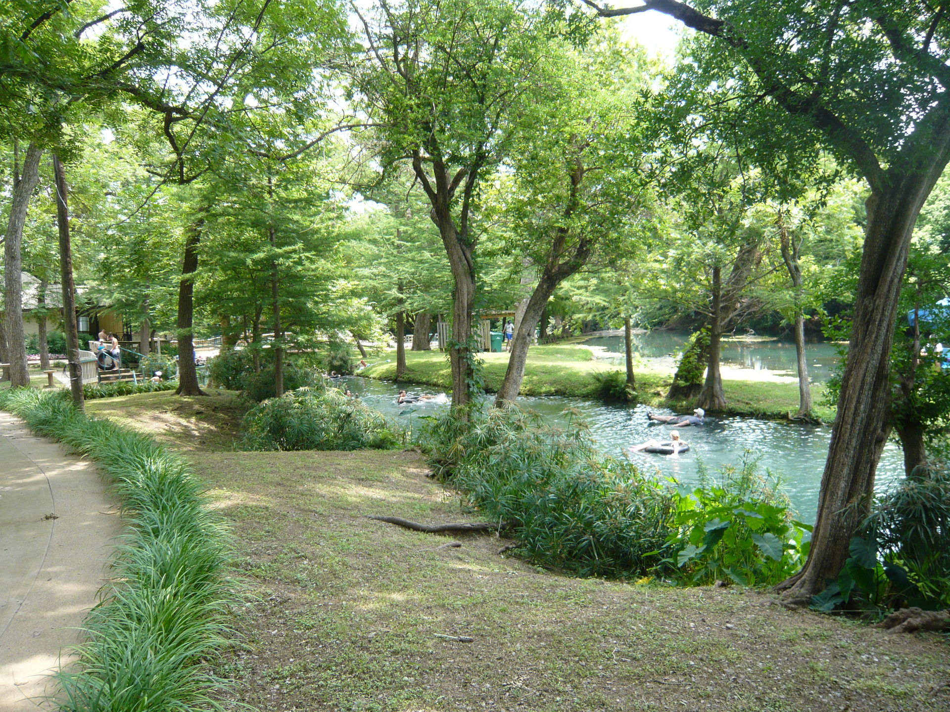 Bei diesen könnte man fast den Eindruck kriegen, dass das durch die Wasserpark-Gäste verbrauchte Wasser einfach ungefiltert in den Comal River zurückgeleitet wird. Allerdings war in der Nähe der Lagune noch eine Art Säuberungswehr zu sehen, das wahrscheinlich vom Park betrieben wird und wo das Wasser nochmals durchmuss, bevor es in den eigentlichen Comal River zurück gelangt - der Park macht sich ja streng genommen nur einen Seitenarm davon zu Nutze.