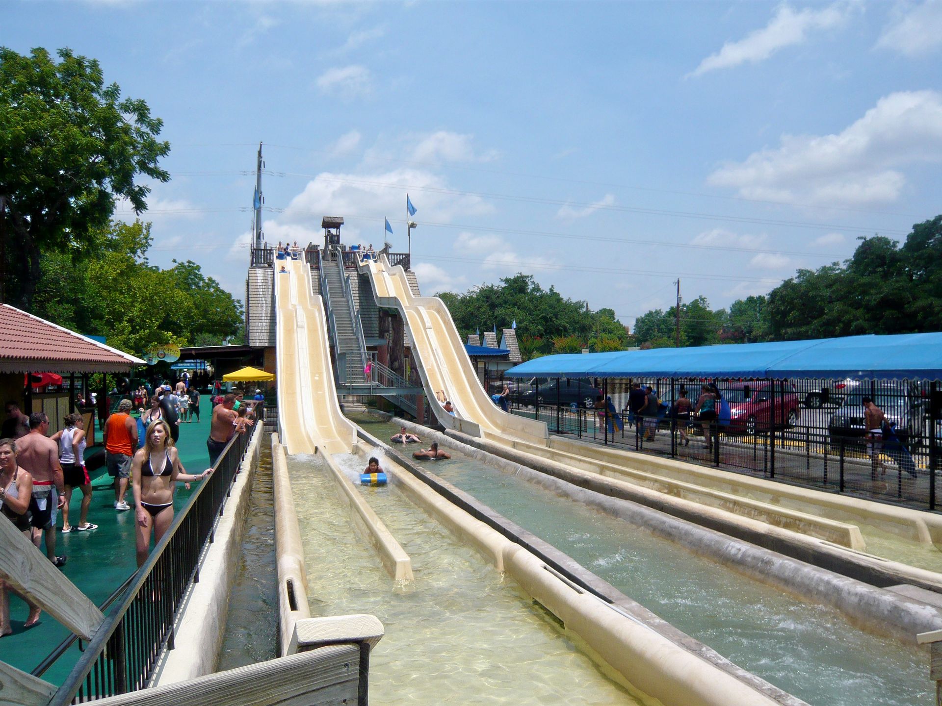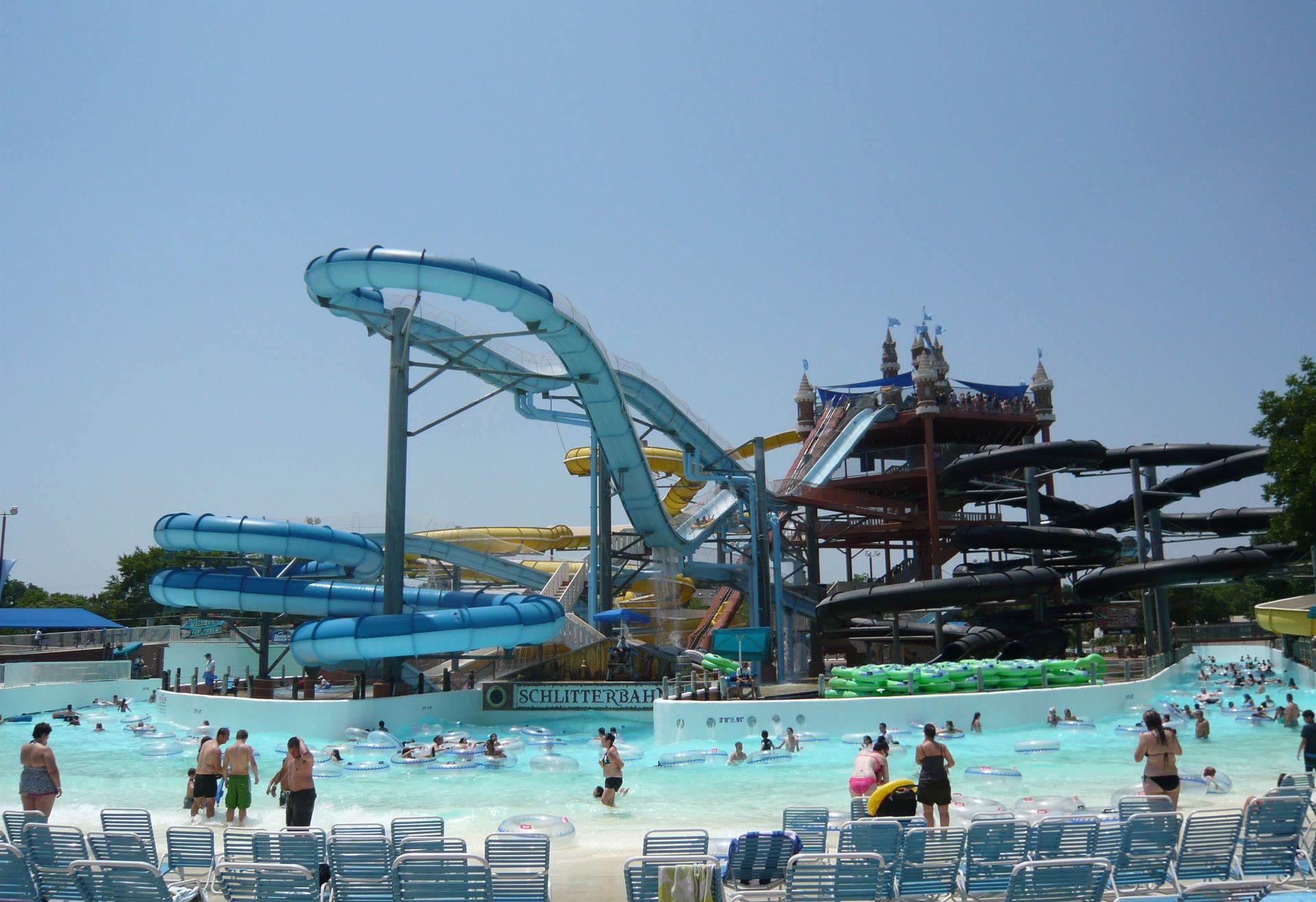 Tags darauf wurde dann ein Ziel angesteuert, das ich wasserparkmässig ganz ähnlich wie Noah's Ark zwei Wochen davor schon seit meinem ersten Modem auf dem Radar hatte: Schlitterbahn! S Die deutschen Kunstnamen, die immense Grösse des ganzen Resorts, die damals absolut aussergewöhnlich wirkenden Rutschen und die allgemeine Andersartigkeit dieses Wasserparks haben mich schon seit jeher fasziniert. Die Tatsache, dass die Anlage vortrefflicherweise in der deutschen Semikolonie New Braunfels und damit auf direktem Wege nach San Antonio liegt, war natürlich Grund genug, den ganzen Spass für zwei volle Tage in unseren Reiseplan aufzunehmen. Jetzt gilt es sich erstmal zu orientieren:
