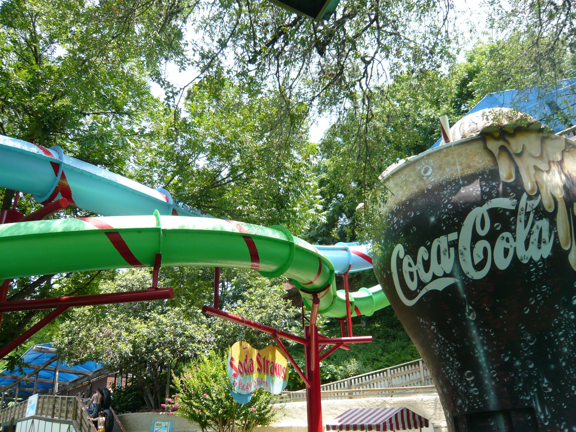 Die Soda Straw Body Slides sind zwei kurze und enge Röhrenrutschen, die in die grosse Lagune hineinmünden. Leider sind die einzelnen Segmente nicht besonders gut verfugt, so dass die kurze und knackige Rutschpartie teilweise etwas ungemütlich werden kann. Hier stellten wir ausserdem fest, dass die Röhrenfarbe in den Deckenteilen teilweise etwas dünn beschichtet ist und somit natürliches Sonnenlicht in die Rutschröhre eindringt, was interessante Lichtspiele ergibt. Der eine Kollege hat das dann herrlich treffend als "Gammel-Themeing" bezeichnet, was bei uns dann zum geflügelten Wort an diesem Tag wurde. S