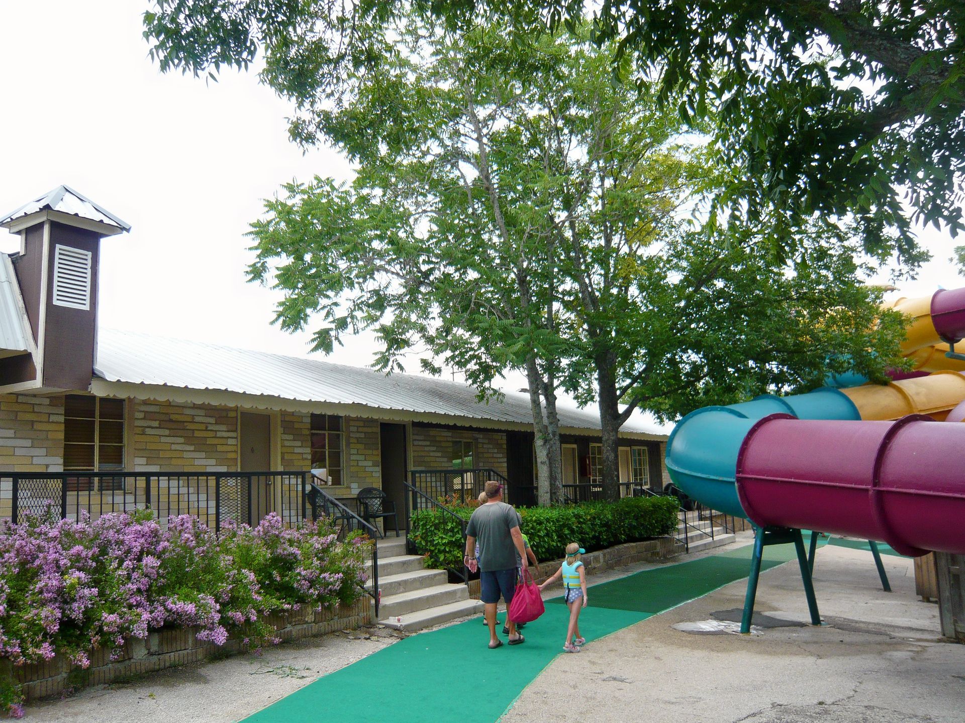 Auch hier befinden sich Motelzimmer - und die Rutschen führen etwa vier Meter oder so vor der Veranda durch. Was soll man dazu nur sagen? S