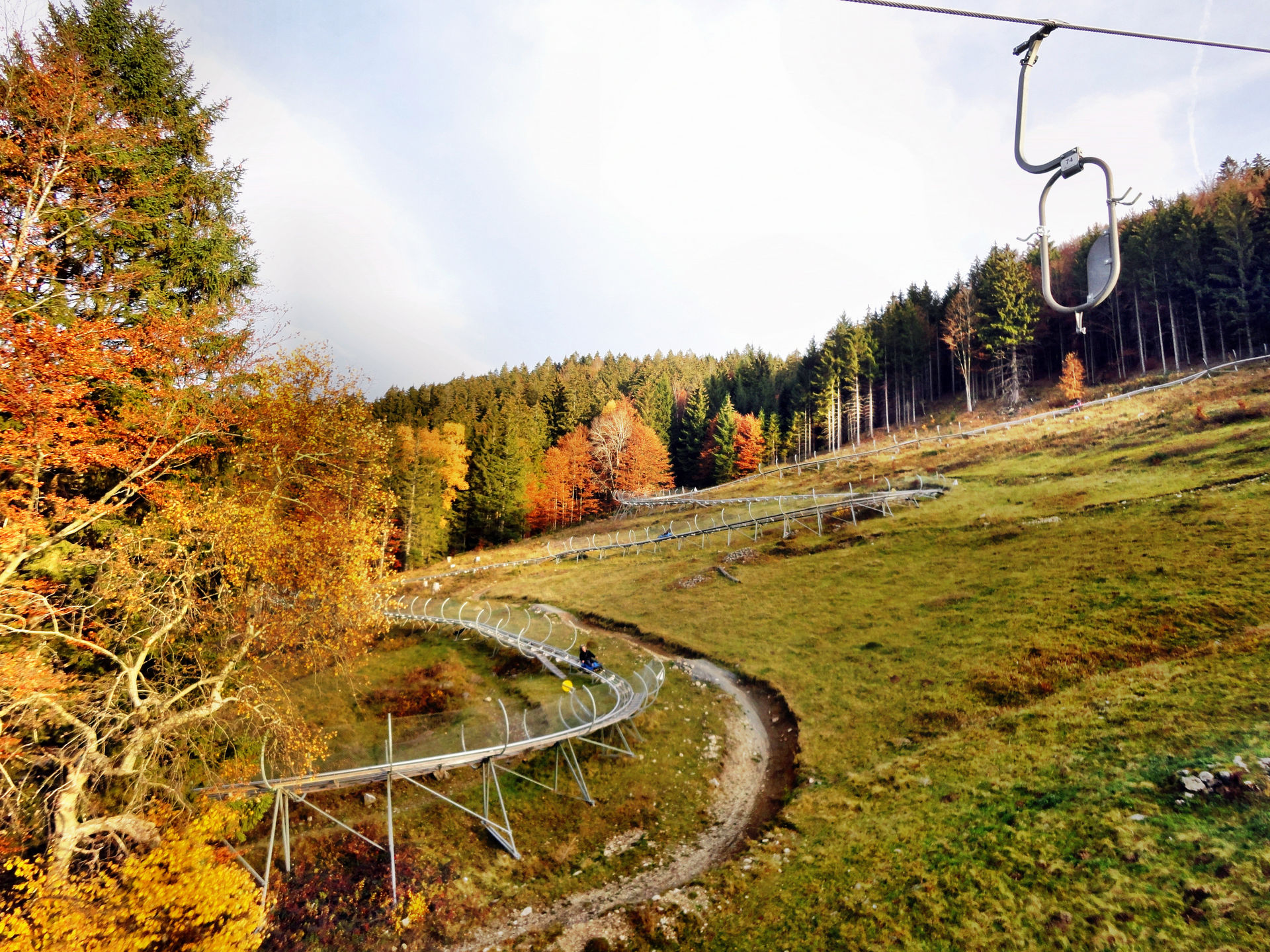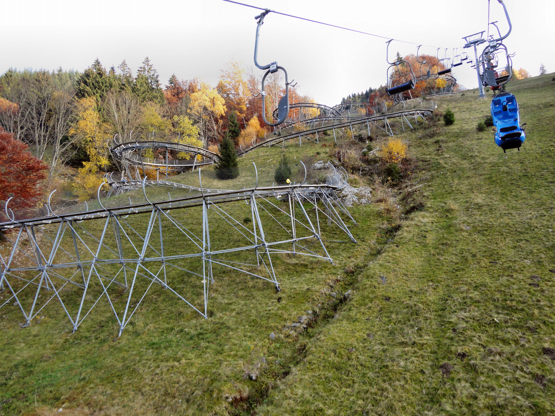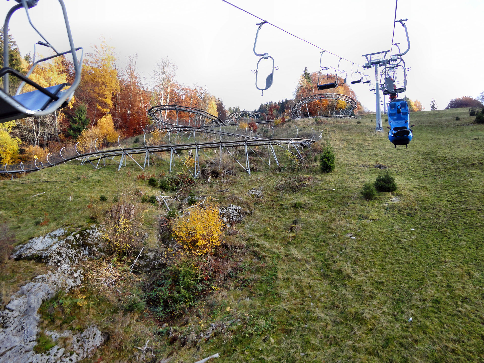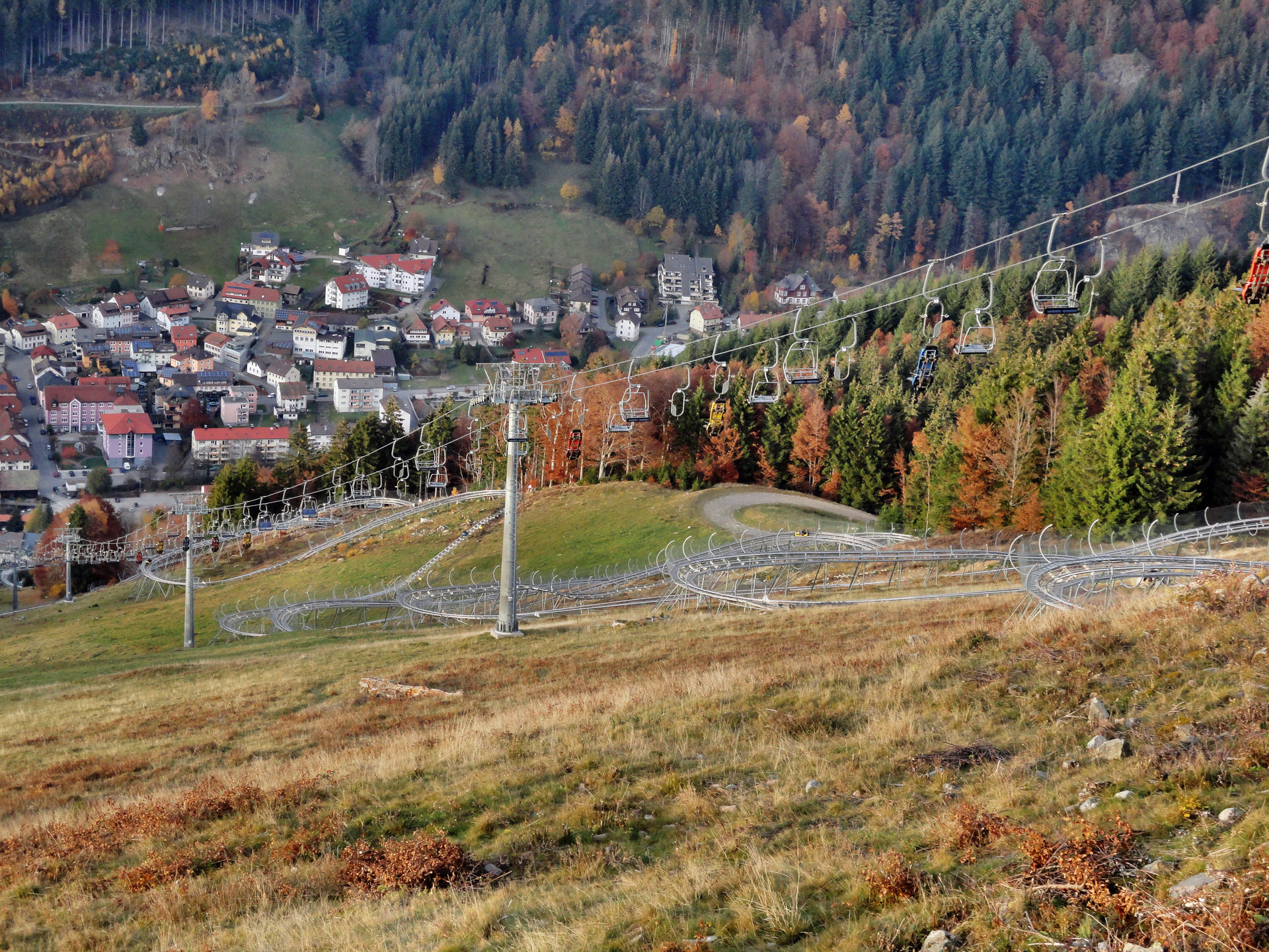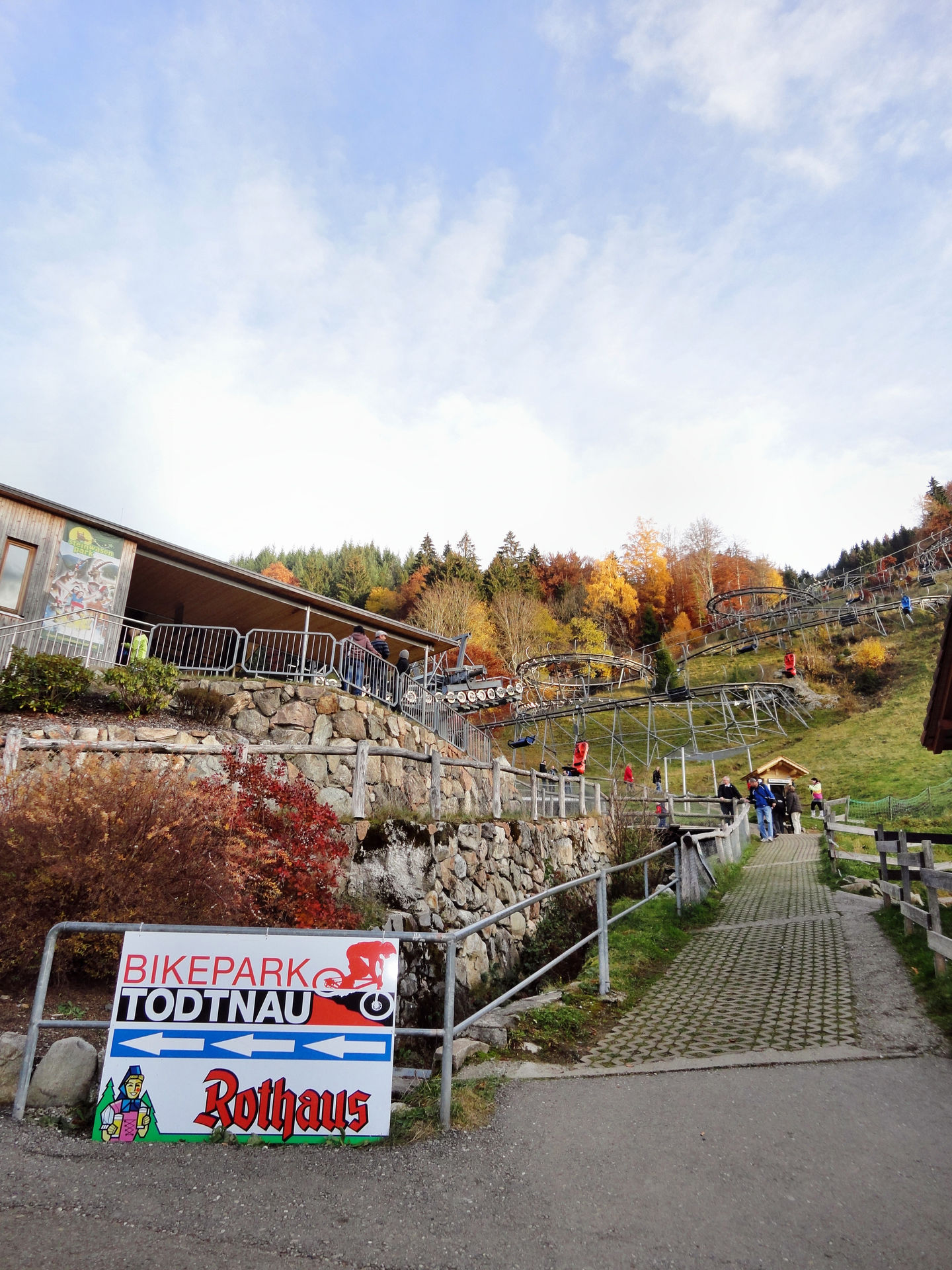 Bevor es am 3.Tag des Europa Park Halloween 2011-Fahrt auch wieder in Namensgebenden Park zurück ging stand noch der Ausflug nach Todtnau an. Vom Steinwasenpark brachte uns der Bus über den Notschrei hinab in den Talort Todtnau. An einem der, den Ort umgebenden Hänge, ist der Hasenhorncoaster aufgebaut. Dieser Alpin Coaster ist nur per Sessellift zu erreichen. Der Lift bringt neben den Fußgängern auch die Schlitten und die Fahrräder für die Mountainbiker auf den Berg.