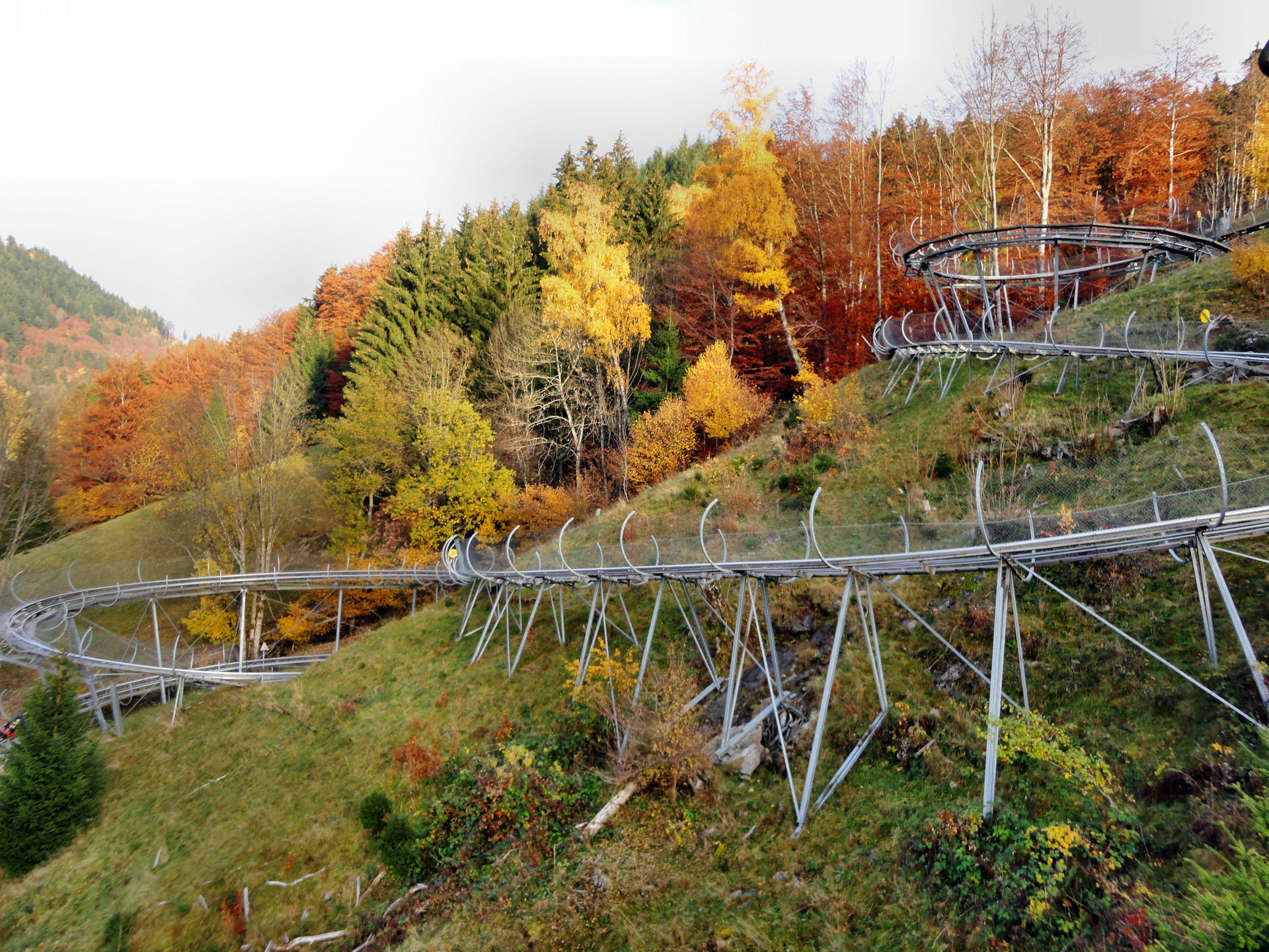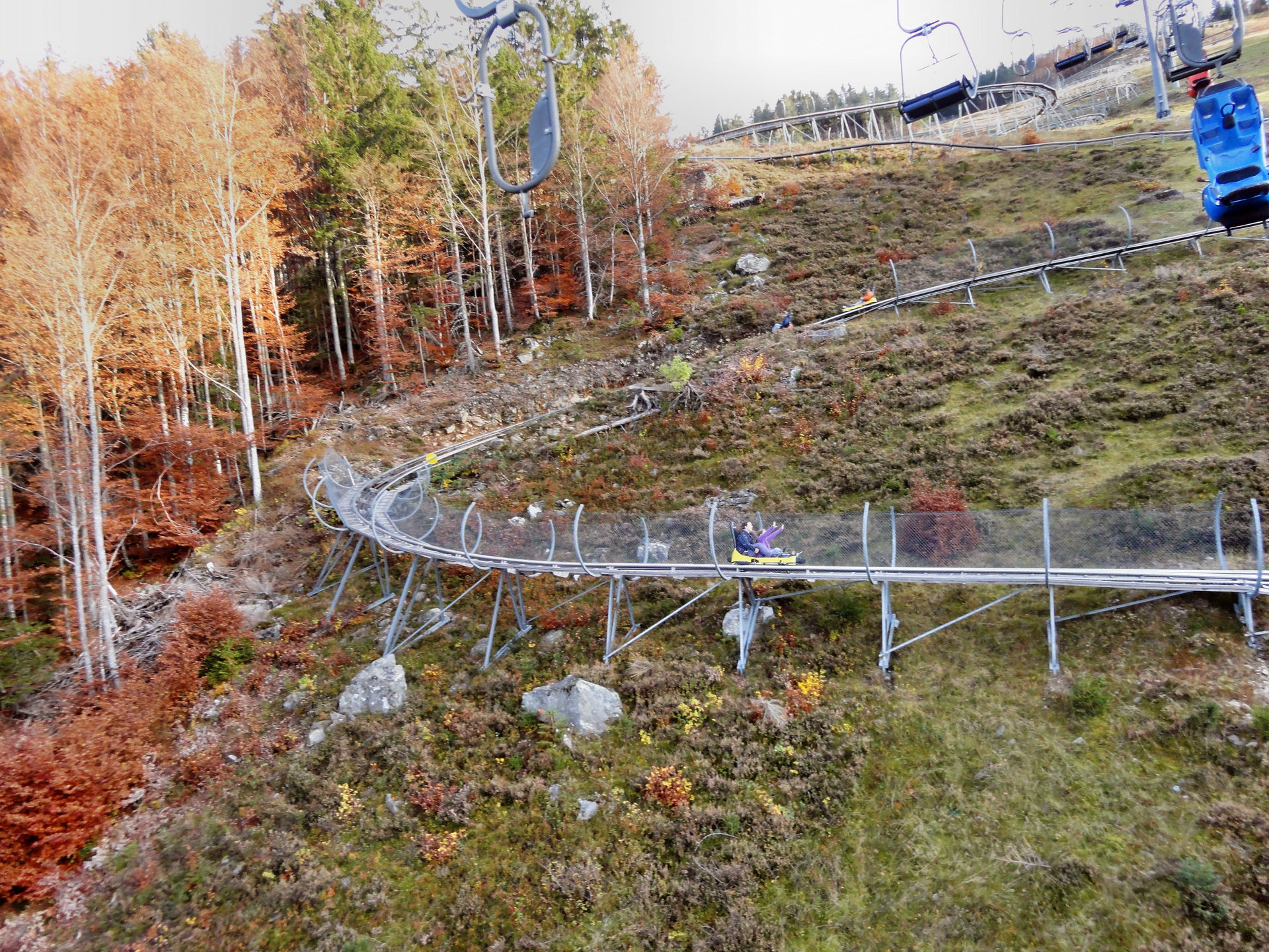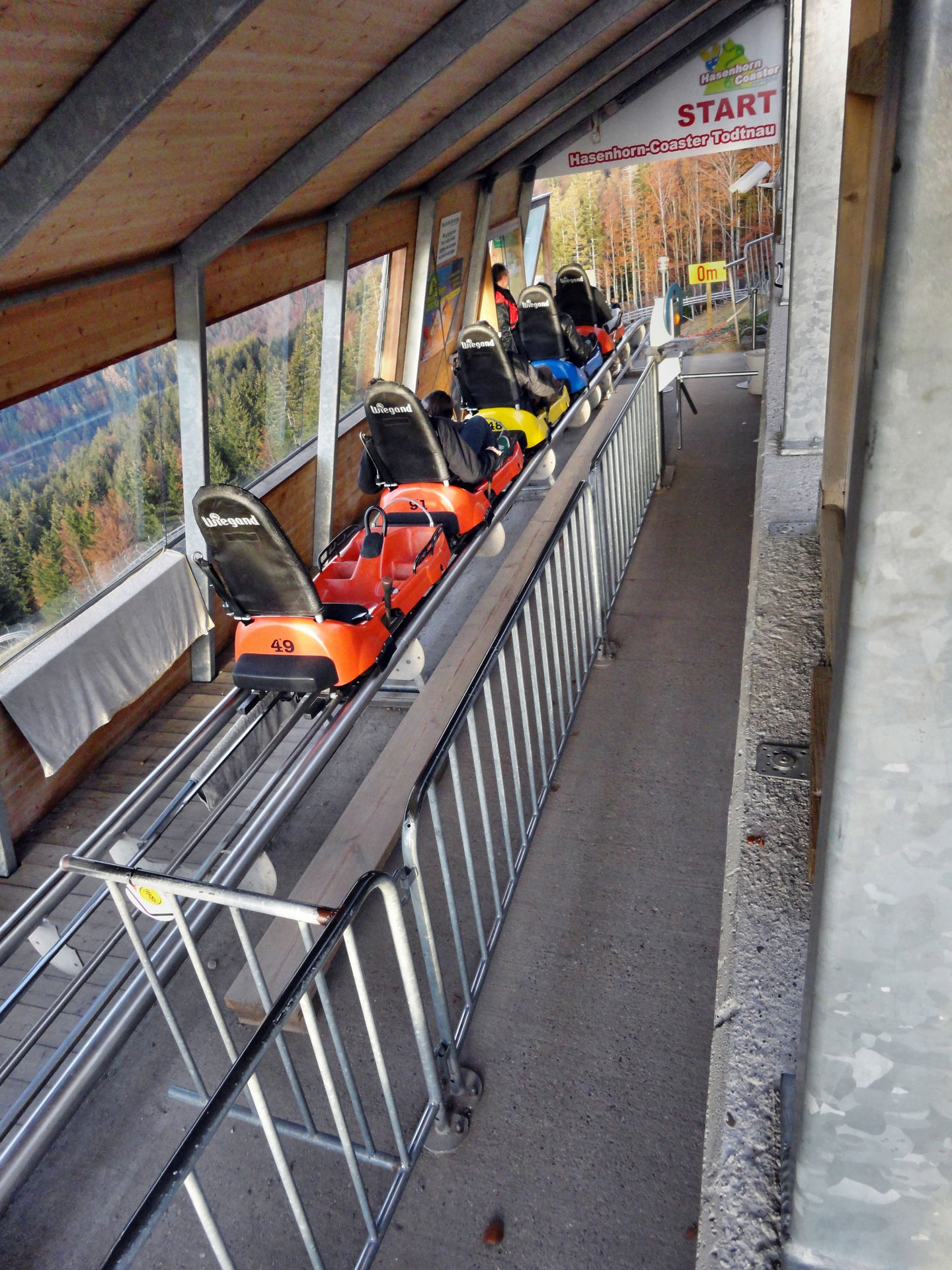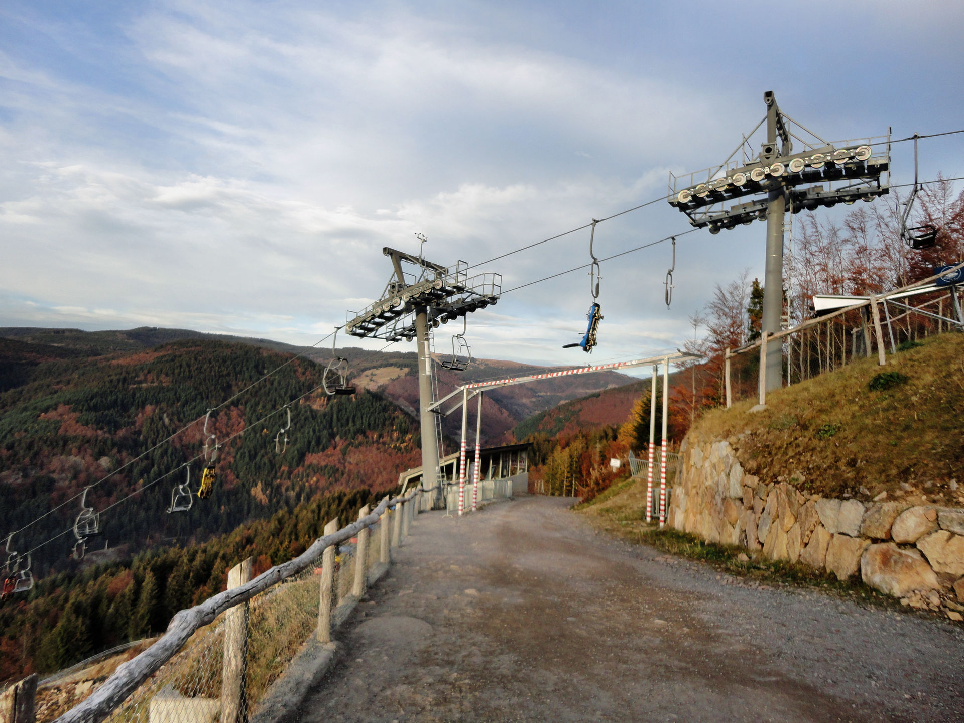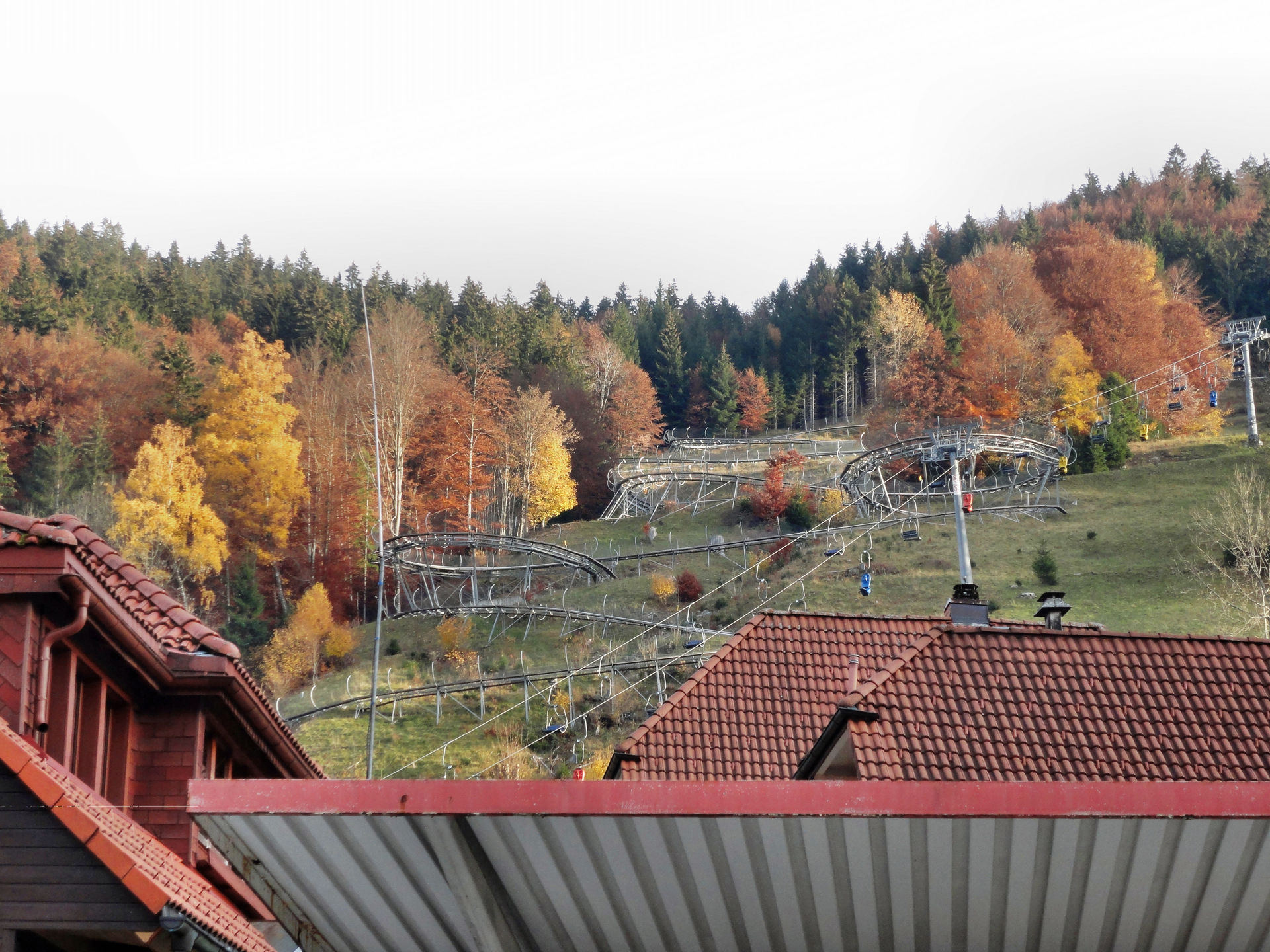 Bevor es am 3.Tag des Europa Park Halloween 2011-Fahrt auch wieder in Namensgebenden Park zurück ging stand noch der Ausflug nach Todtnau an. Vom Steinwasenpark brachte uns der Bus über den Notschrei hinab in den Talort Todtnau. An einem der, den Ort umgebenden Hänge, ist der Hasenhorncoaster aufgebaut. Dieser Alpin Coaster ist nur per Sessellift zu erreichen. Der Lift bringt neben den Fußgängern auch die Schlitten und die Fahrräder für die Mountainbiker auf den Berg.