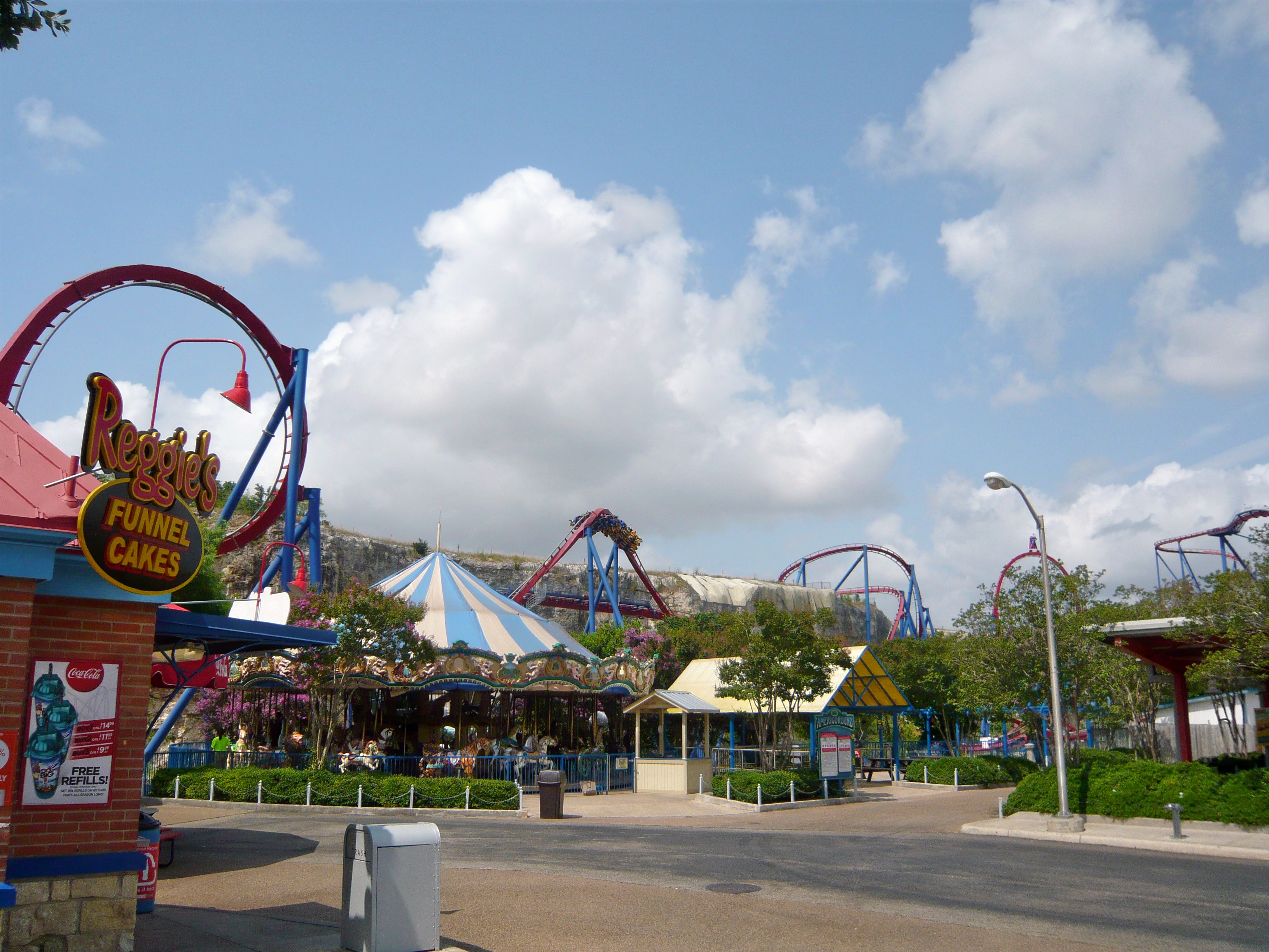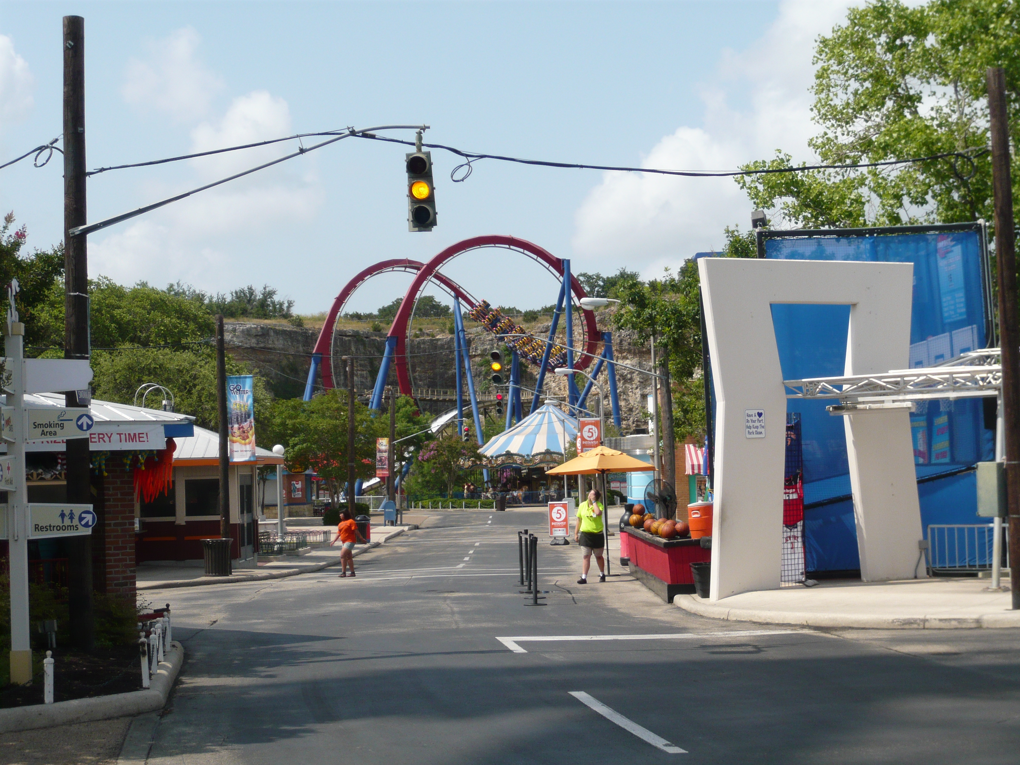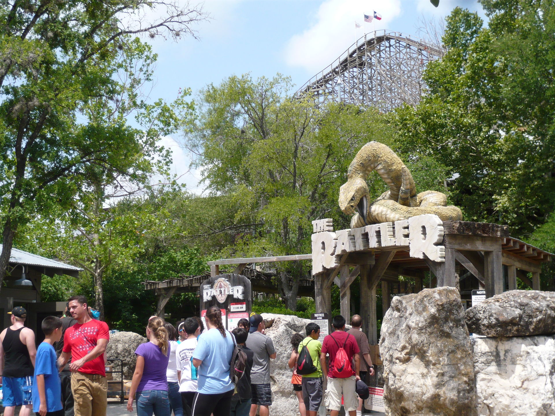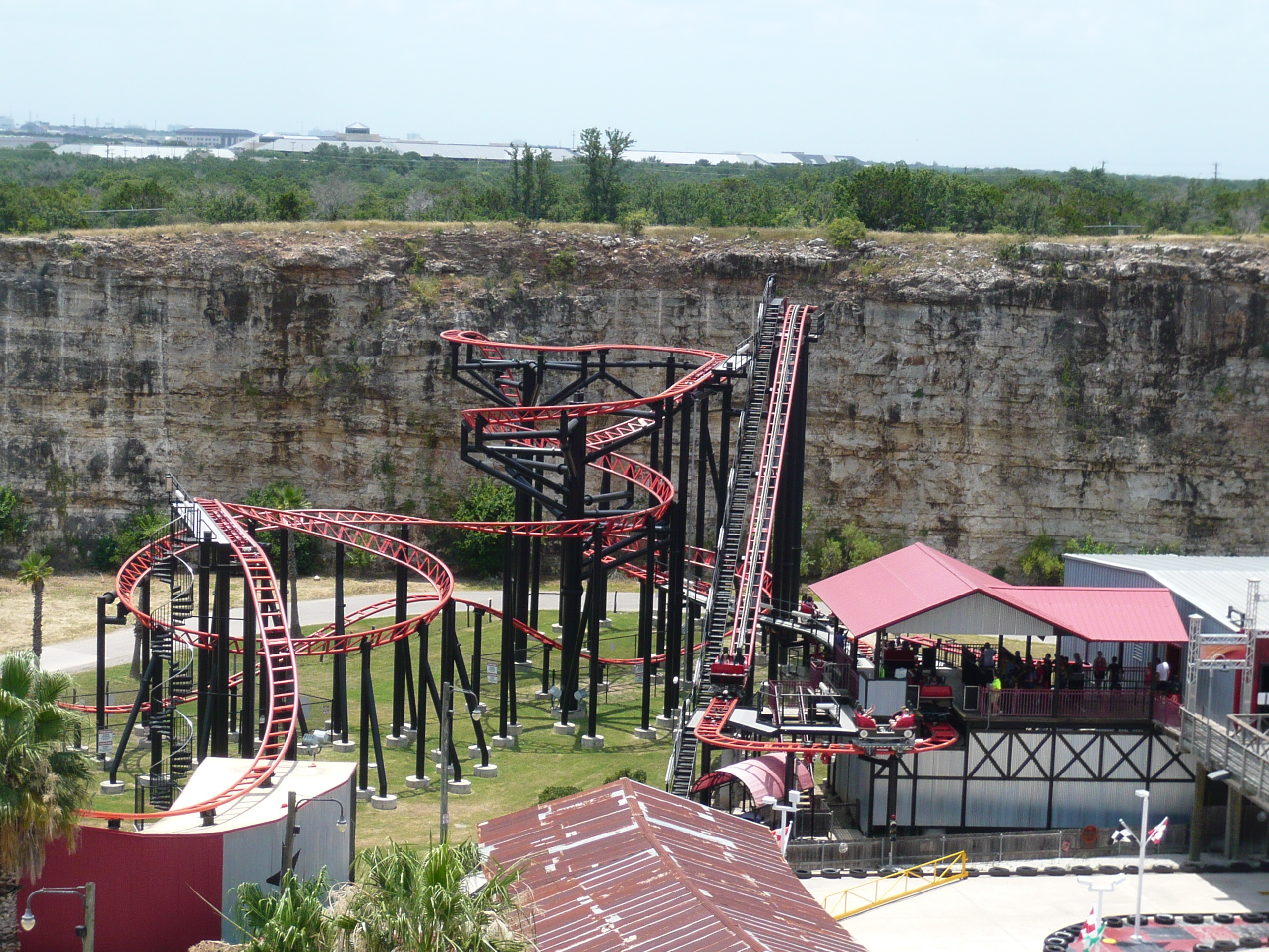 Nach ungefähr fünfeinhalb Stunden verliessen wir Six Flags Fiesta Texas dann wieder, um noch ein wenig auf Souvenirjagd in der angrenzenden La Cantera Mall zu gehen und um unser nächstes Hotel nahe Sea World zu suchen. Das Urteil über diesen Park fällt sehr durchmischt aus. Einerseits bietet er mit der wahrlich eindrucksvollen Lage an der Klippe, einem ausgesprochen netten Assortiment an leckeren Bahnen und auch einigen für Six Flags recht hervorstechend schönen Thematisierungsansätzen beste Voraussetzungen für einen tollen Tag. Andererseits hat man bei unserem Besuch dann auch wieder die typischen "Sux Flags"-Aspekte zu ertragen gehabt: Abzocke beim Parkieren, unverschämte Preise für Verpflegung, stellenweise unfassbar doofe und sehr kundenunfreundliche Operations oder auch den Umstand, dass bei Betriebsbeginn noch nicht alle Bahnen gelaufen sind und man dann die ursprünglich geplante Erkundungsroute wieder übern Haufen werfen kann, so dass man am Schluss dann doch in mühsamen, sich nur langsam fortbewegenden Schlangen verrottet. Mag sein, dass wir durch den Rest der Reise einfach zu sehr mit Glück verwöhnt waren diesbezüglich, aber gerade dieser letzte Aspekt hat uns hier abschnittweise ziemlich den Tag verdorben. Handumkehrt hat man dann aber auch wieder genügend Gegenbeispiele, wie z.B. den durchgehenden Zweizugbetrieb auf dem Schmuckstück Superman Krypton Coaster angetroffen. Doof ausgedrückt: da, wo es abfertigungstechnisch in dieser Weise ablief, hatten wir enormen Spass, und da wo nicht, eben überhaupt keinen. Zusammenfassend bleibt also ein irgendwo knapp über dem Mittelfeld anzusiedelnder Gesamteindruck - Pluspunkte gibts im Nachhinein dafür, was der Park bald aus dem ikonischen Rattler machen wird.