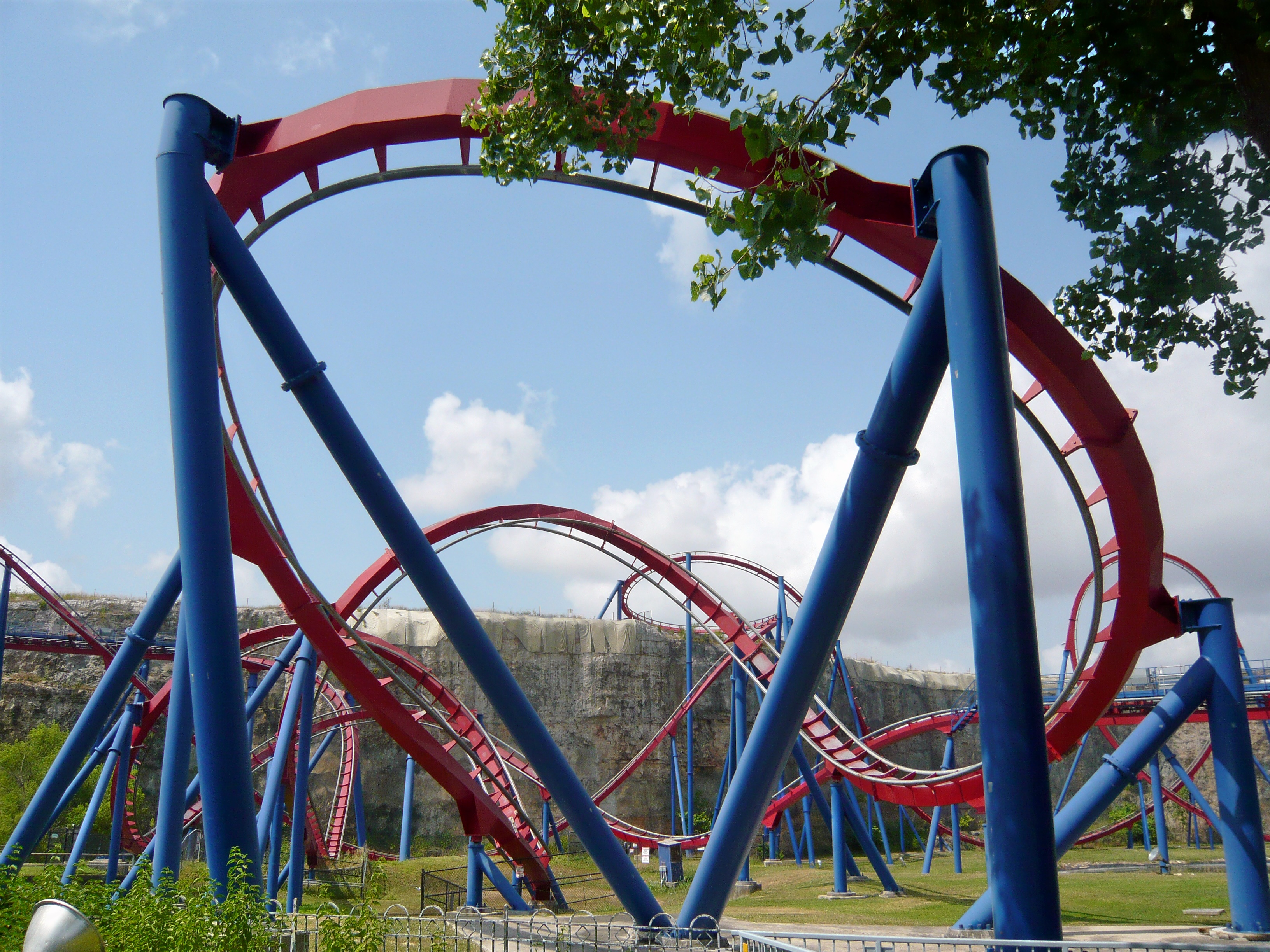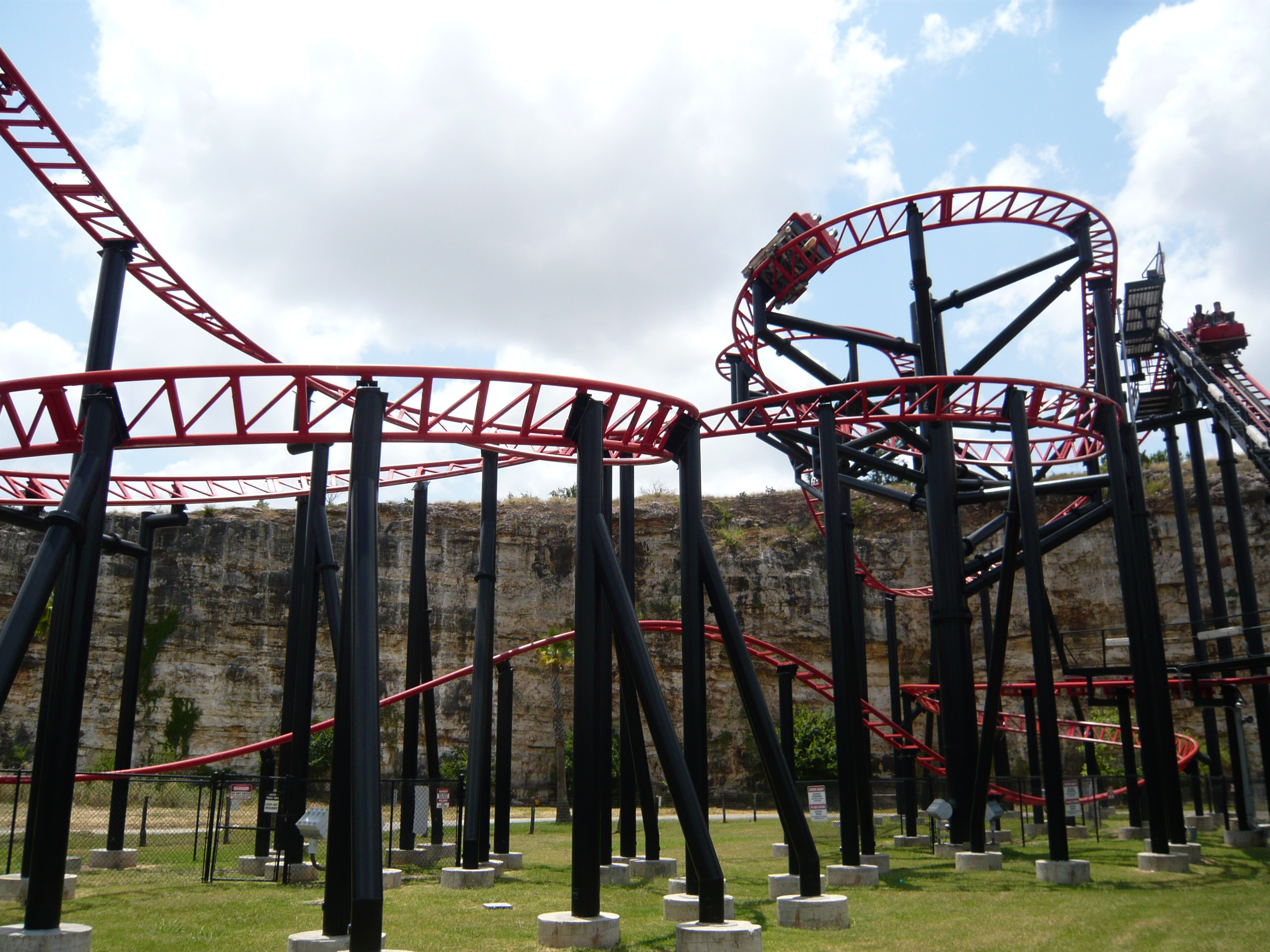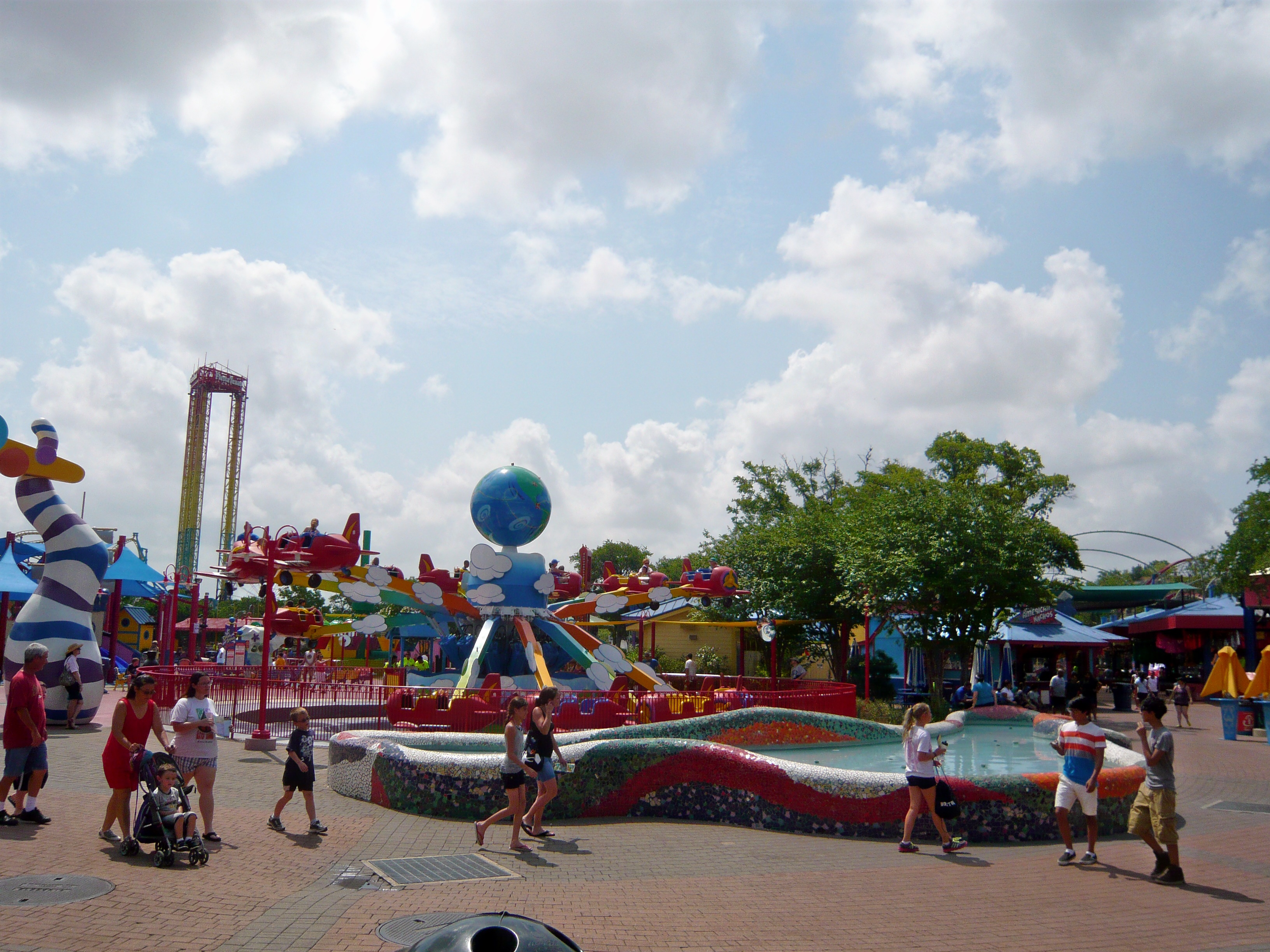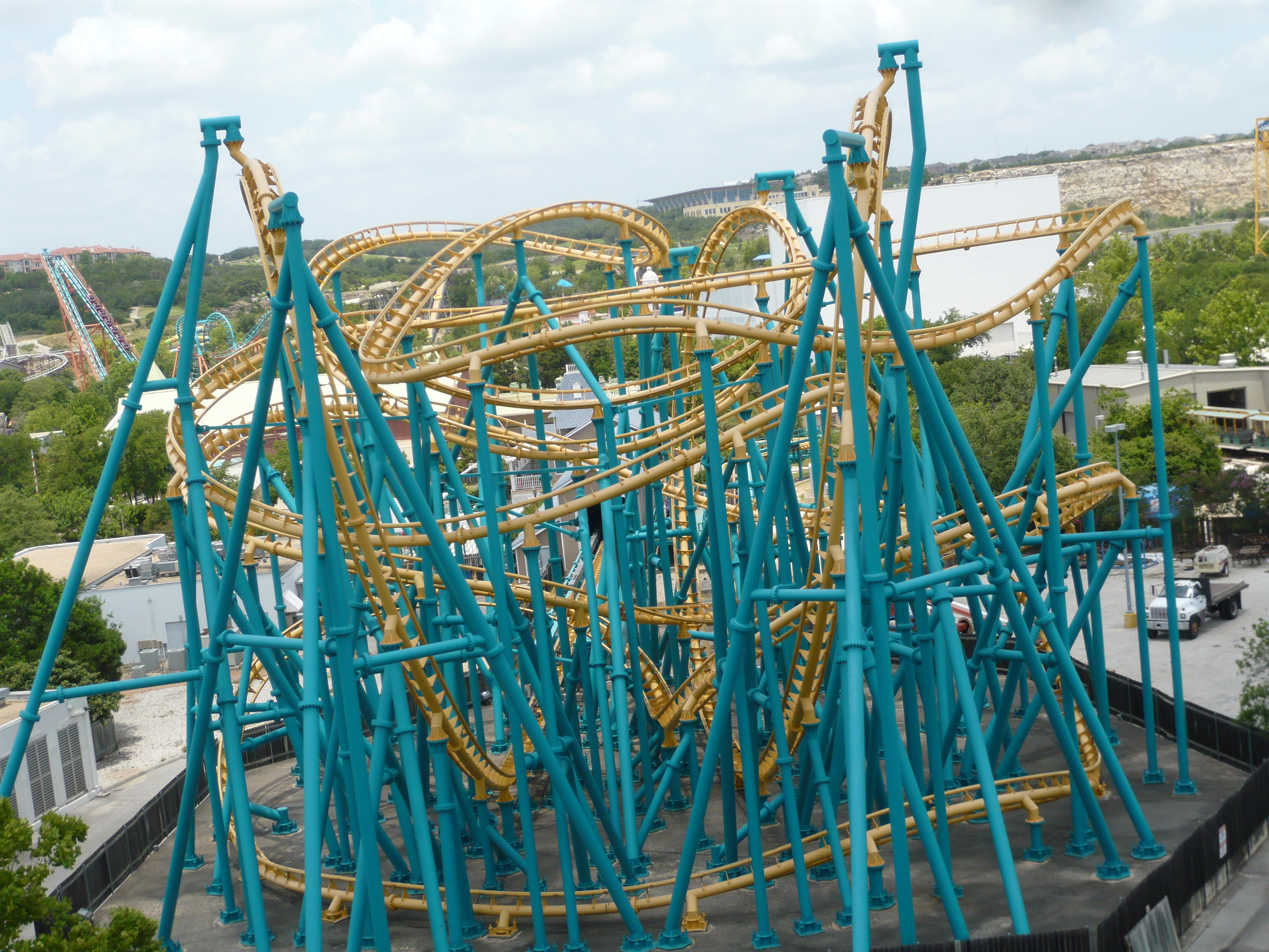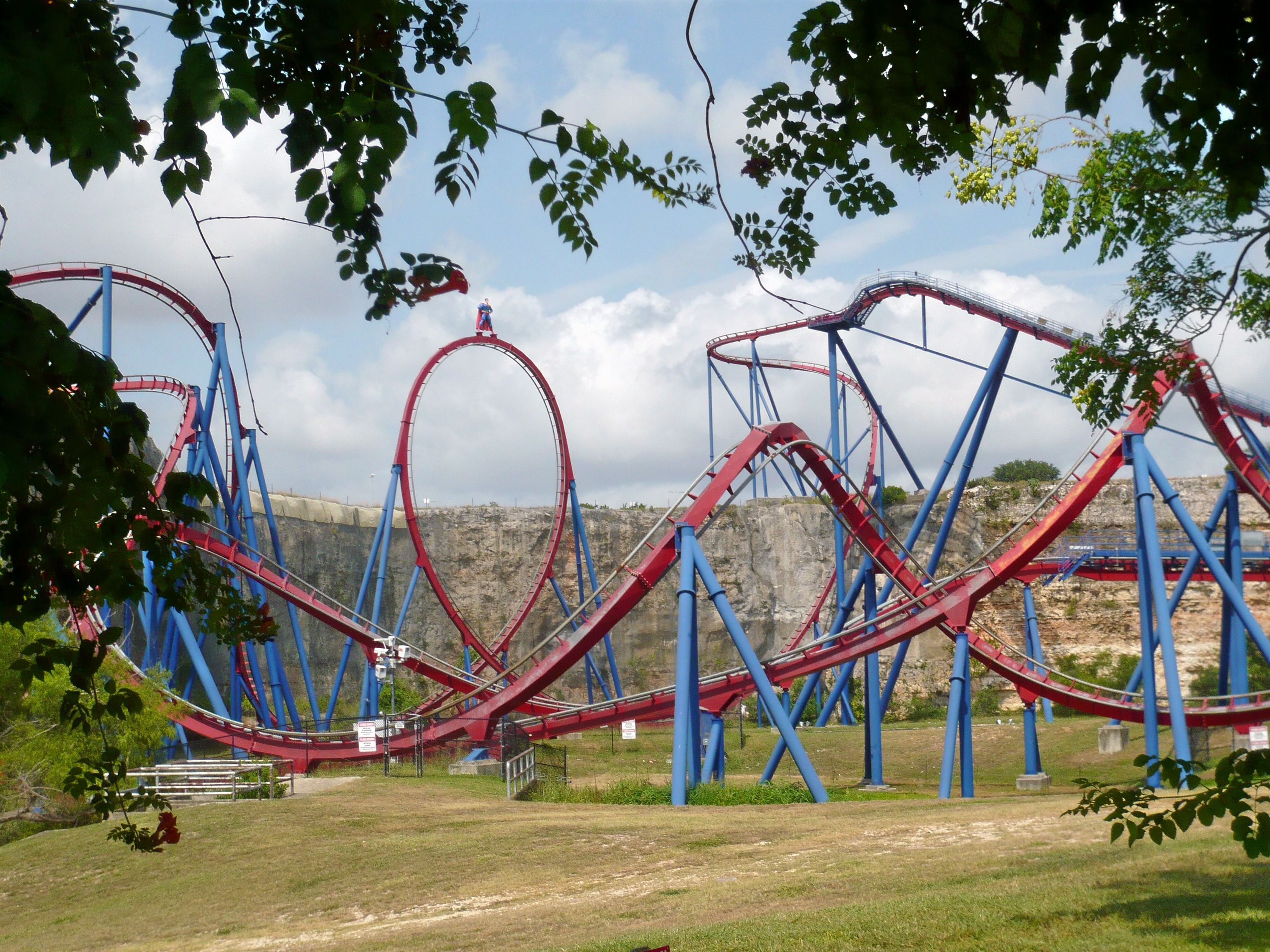 Nach ungefähr fünfeinhalb Stunden verliessen wir Six Flags Fiesta Texas dann wieder, um noch ein wenig auf Souvenirjagd in der angrenzenden La Cantera Mall zu gehen und um unser nächstes Hotel nahe Sea World zu suchen. Das Urteil über diesen Park fällt sehr durchmischt aus. Einerseits bietet er mit der wahrlich eindrucksvollen Lage an der Klippe, einem ausgesprochen netten Assortiment an leckeren Bahnen und auch einigen für Six Flags recht hervorstechend schönen Thematisierungsansätzen beste Voraussetzungen für einen tollen Tag. Andererseits hat man bei unserem Besuch dann auch wieder die typischen "Sux Flags"-Aspekte zu ertragen gehabt: Abzocke beim Parkieren, unverschämte Preise für Verpflegung, stellenweise unfassbar doofe und sehr kundenunfreundliche Operations oder auch den Umstand, dass bei Betriebsbeginn noch nicht alle Bahnen gelaufen sind und man dann die ursprünglich geplante Erkundungsroute wieder übern Haufen werfen kann, so dass man am Schluss dann doch in mühsamen, sich nur langsam fortbewegenden Schlangen verrottet. Mag sein, dass wir durch den Rest der Reise einfach zu sehr mit Glück verwöhnt waren diesbezüglich, aber gerade dieser letzte Aspekt hat uns hier abschnittweise ziemlich den Tag verdorben. Handumkehrt hat man dann aber auch wieder genügend Gegenbeispiele, wie z.B. den durchgehenden Zweizugbetrieb auf dem Schmuckstück Superman Krypton Coaster angetroffen. Doof ausgedrückt: da, wo es abfertigungstechnisch in dieser Weise ablief, hatten wir enormen Spass, und da wo nicht, eben überhaupt keinen. Zusammenfassend bleibt also ein irgendwo knapp über dem Mittelfeld anzusiedelnder Gesamteindruck - Pluspunkte gibts im Nachhinein dafür, was der Park bald aus dem ikonischen Rattler machen wird.