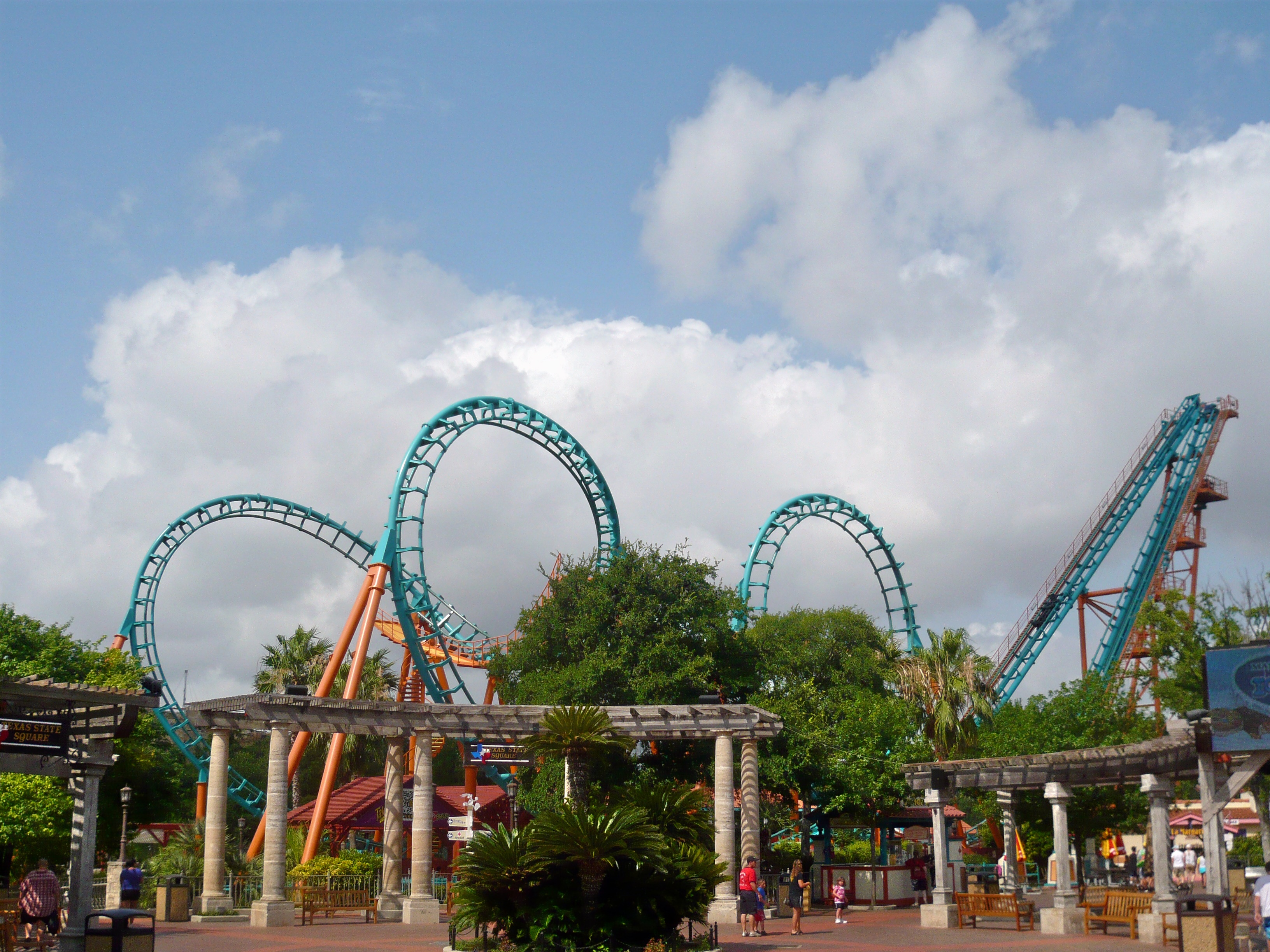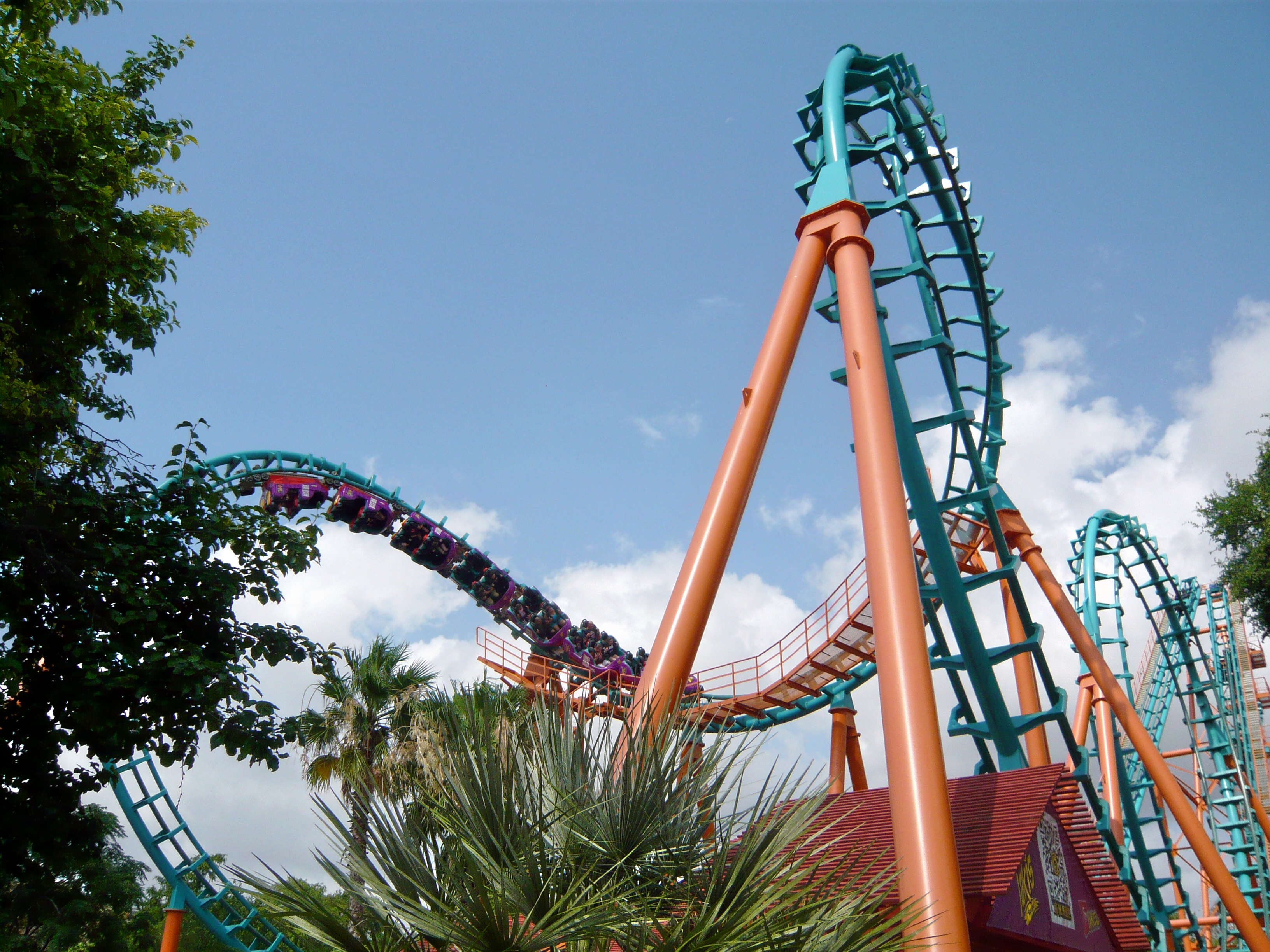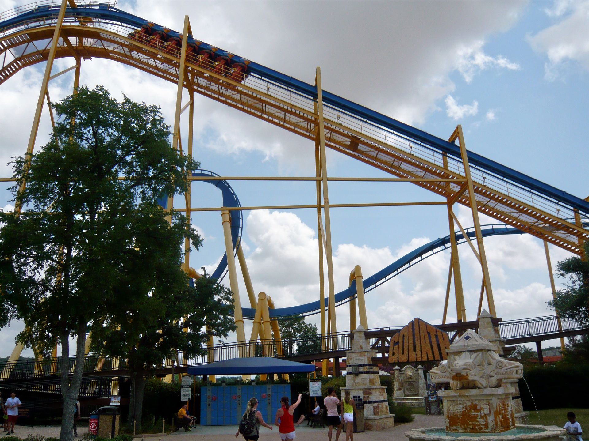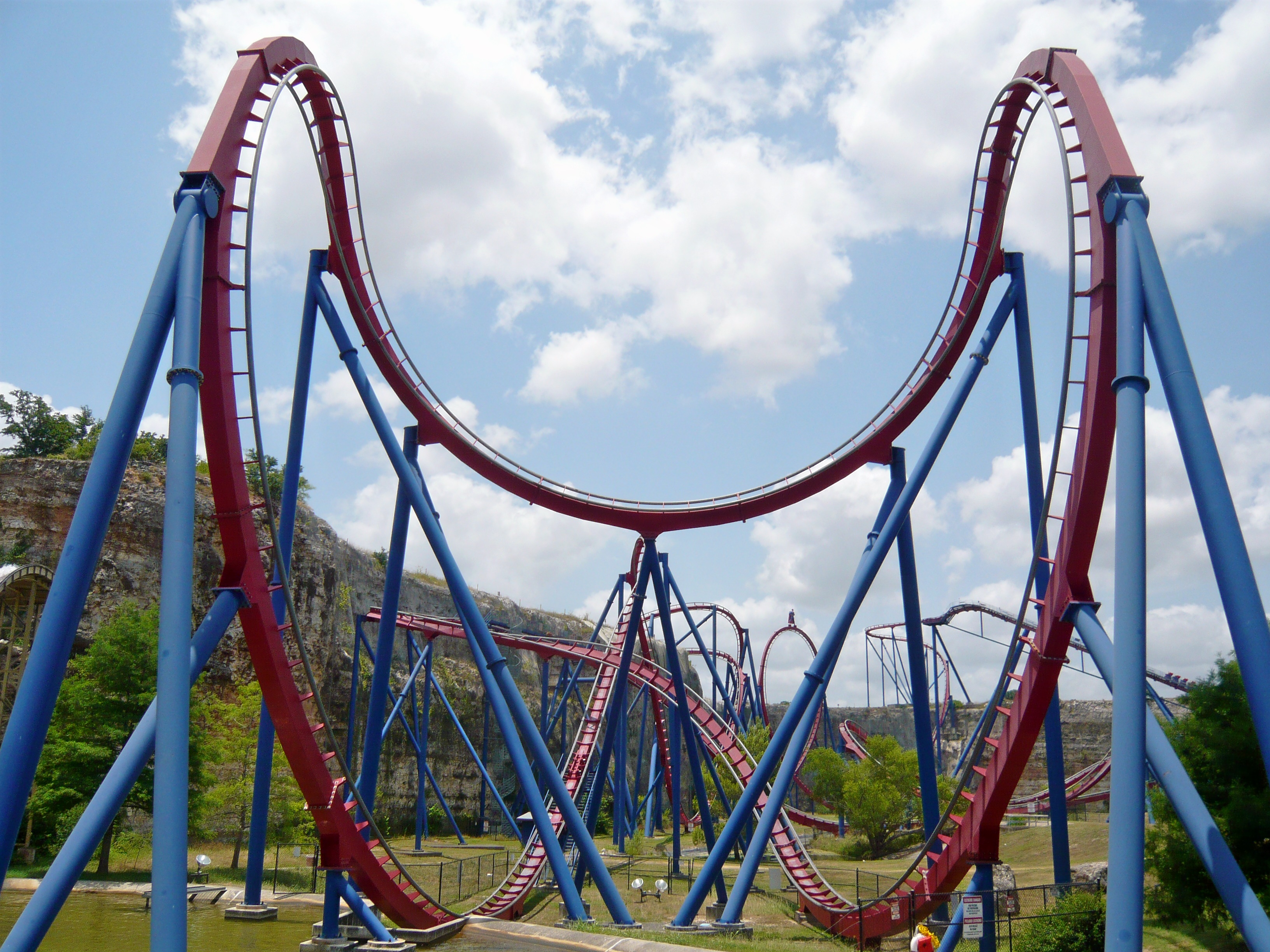 Nach ungefähr fünfeinhalb Stunden verliessen wir Six Flags Fiesta Texas dann wieder, um noch ein wenig auf Souvenirjagd in der angrenzenden La Cantera Mall zu gehen und um unser nächstes Hotel nahe Sea World zu suchen. Das Urteil über diesen Park fällt sehr durchmischt aus. Einerseits bietet er mit der wahrlich eindrucksvollen Lage an der Klippe, einem ausgesprochen netten Assortiment an leckeren Bahnen und auch einigen für Six Flags recht hervorstechend schönen Thematisierungsansätzen beste Voraussetzungen für einen tollen Tag. Andererseits hat man bei unserem Besuch dann auch wieder die typischen "Sux Flags"-Aspekte zu ertragen gehabt: Abzocke beim Parkieren, unverschämte Preise für Verpflegung, stellenweise unfassbar doofe und sehr kundenunfreundliche Operations oder auch den Umstand, dass bei Betriebsbeginn noch nicht alle Bahnen gelaufen sind und man dann die ursprünglich geplante Erkundungsroute wieder übern Haufen werfen kann, so dass man am Schluss dann doch in mühsamen, sich nur langsam fortbewegenden Schlangen verrottet. Mag sein, dass wir durch den Rest der Reise einfach zu sehr mit Glück verwöhnt waren diesbezüglich, aber gerade dieser letzte Aspekt hat uns hier abschnittweise ziemlich den Tag verdorben. Handumkehrt hat man dann aber auch wieder genügend Gegenbeispiele, wie z.B. den durchgehenden Zweizugbetrieb auf dem Schmuckstück Superman Krypton Coaster angetroffen. Doof ausgedrückt: da, wo es abfertigungstechnisch in dieser Weise ablief, hatten wir enormen Spass, und da wo nicht, eben überhaupt keinen. Zusammenfassend bleibt also ein irgendwo knapp über dem Mittelfeld anzusiedelnder Gesamteindruck - Pluspunkte gibts im Nachhinein dafür, was der Park bald aus dem ikonischen Rattler machen wird.