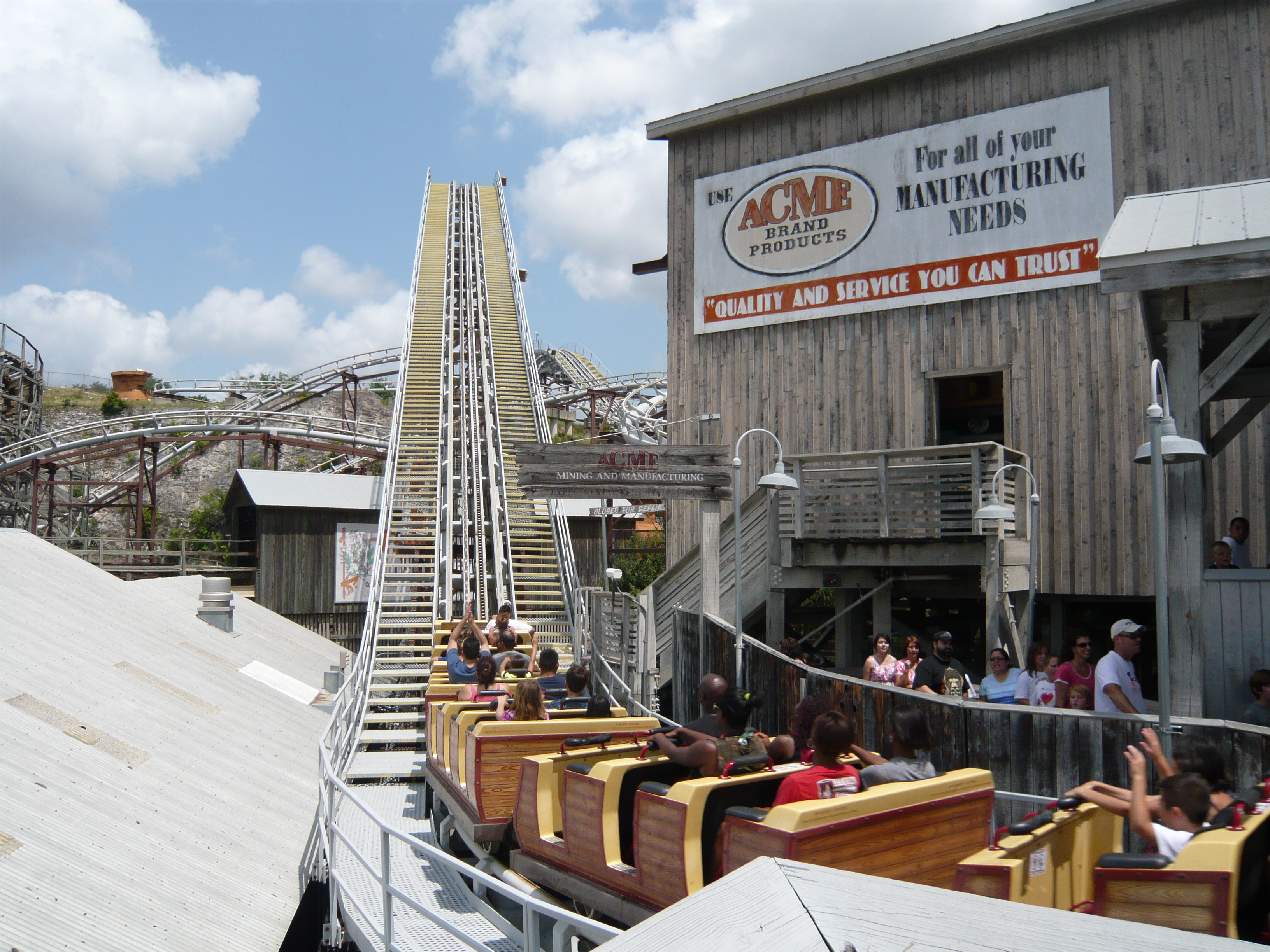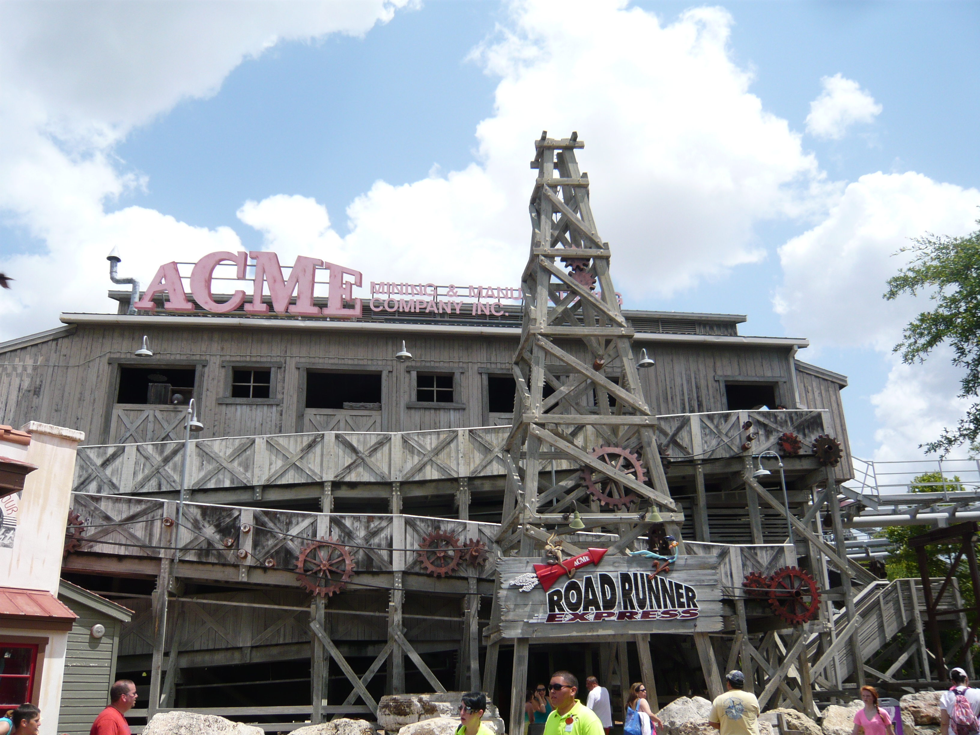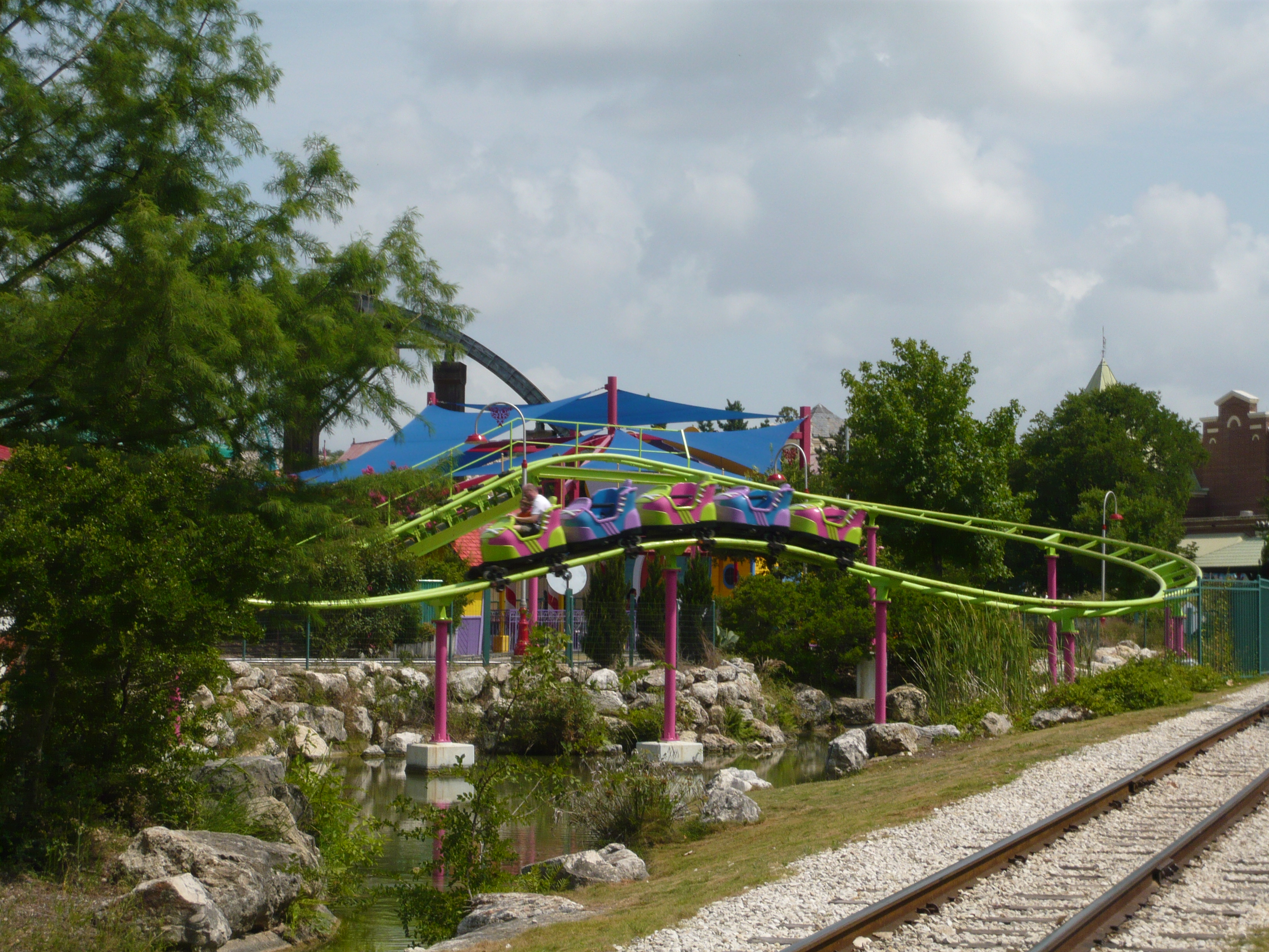 Rattler hatte immer noch geschlossen, aber im Gegensatz zu Mr. Freeze in Six Flags Over Texas informierte man die Fahrwilligen hier immer mal wieder über den aktuellen Maintenance-Zustand. So fanden wir heraus, dass man wohl damit rechne, den Rattler innerhalb der nächsten eineinhalb Stunden zum Laufen zu kriegen. Also zog es uns zum nebenan liegenden Minetrain Road Runner Express - und leider nicht nur uns.