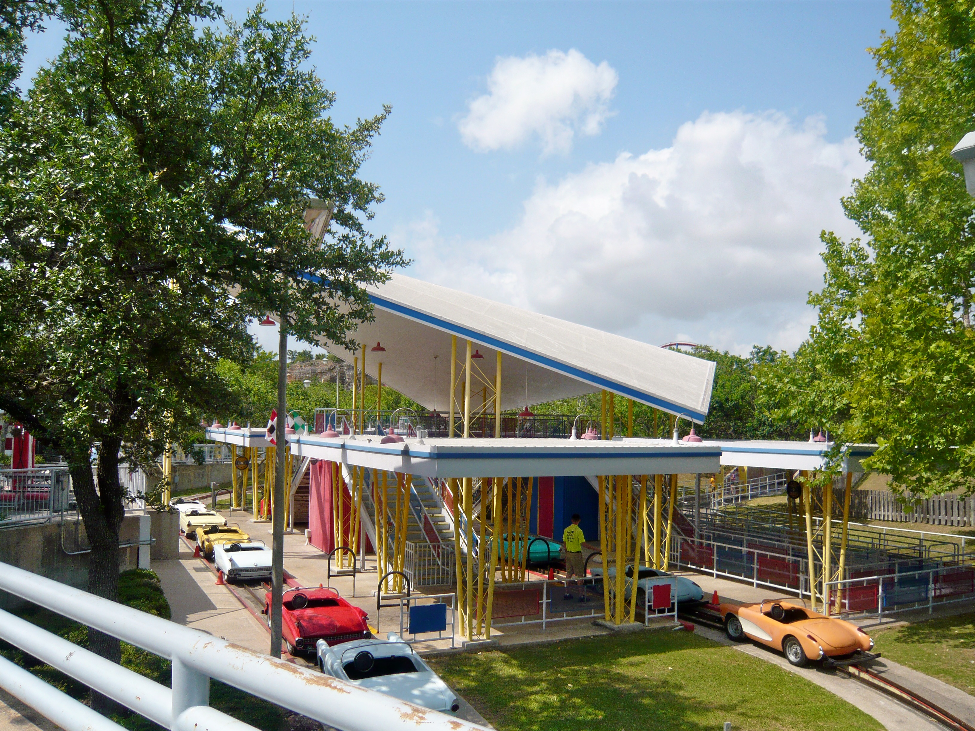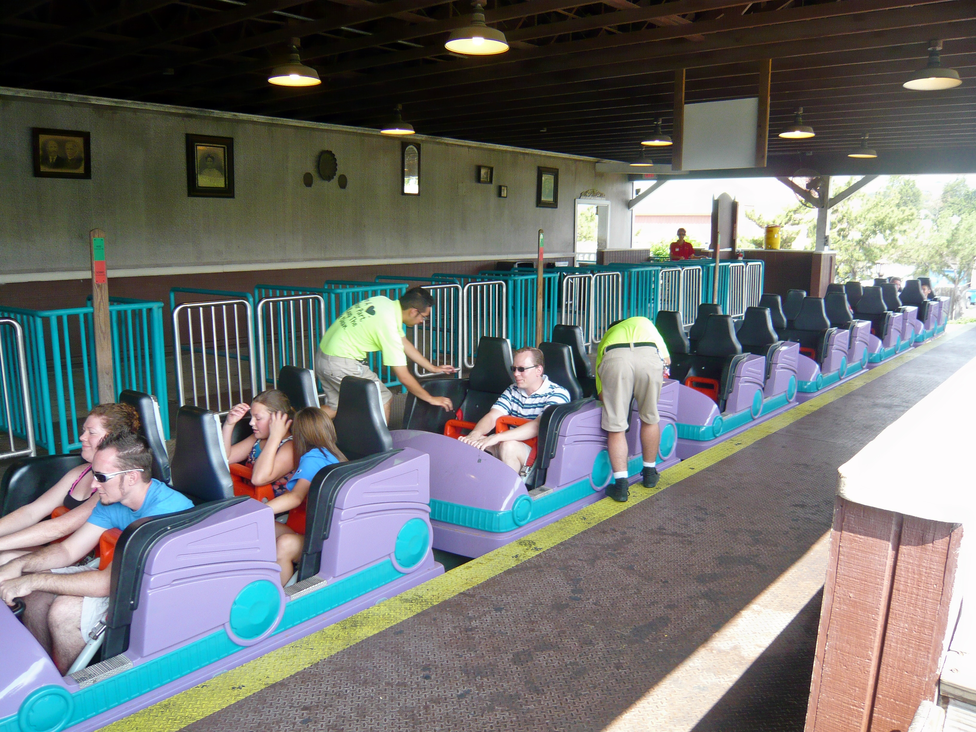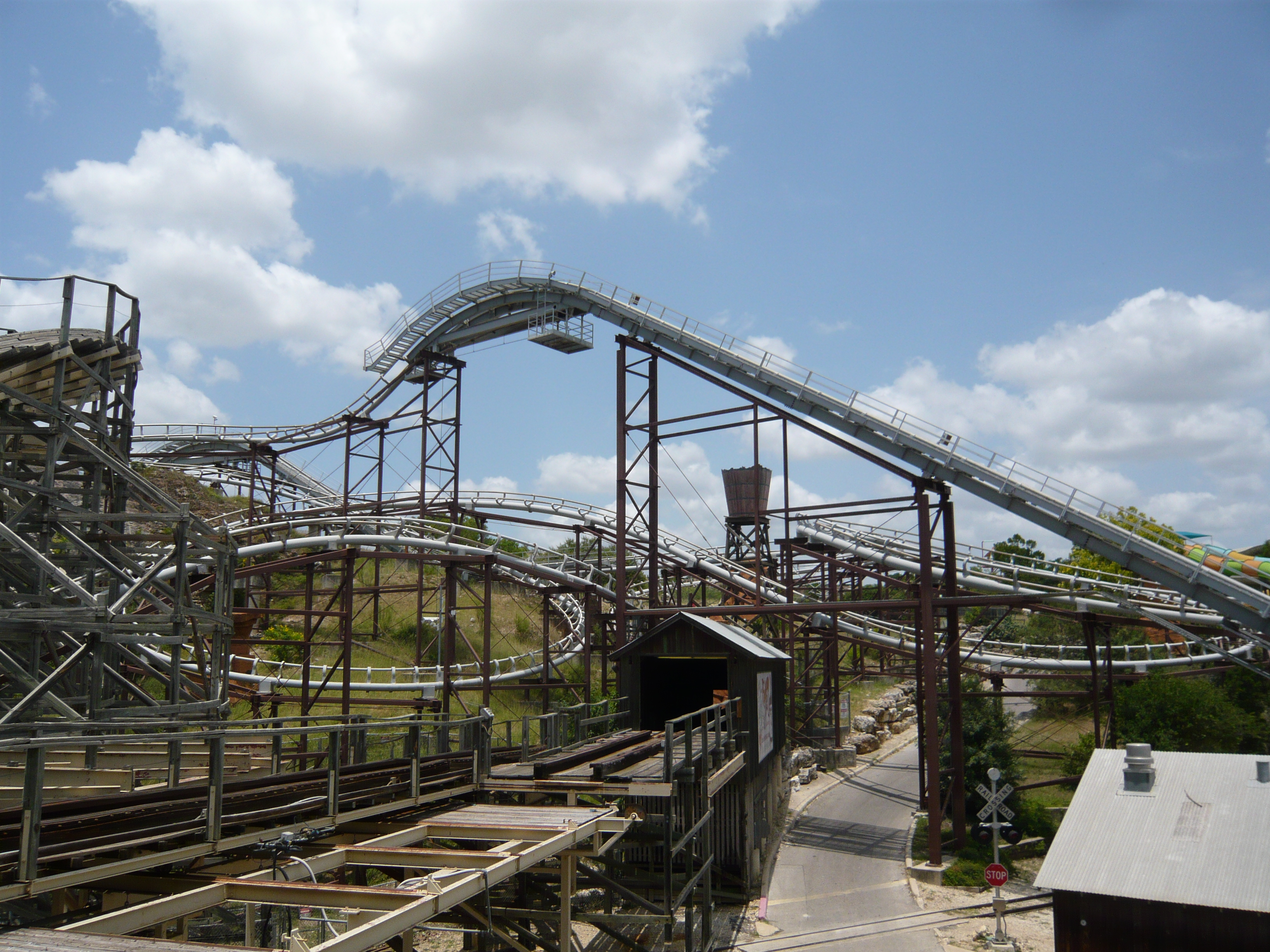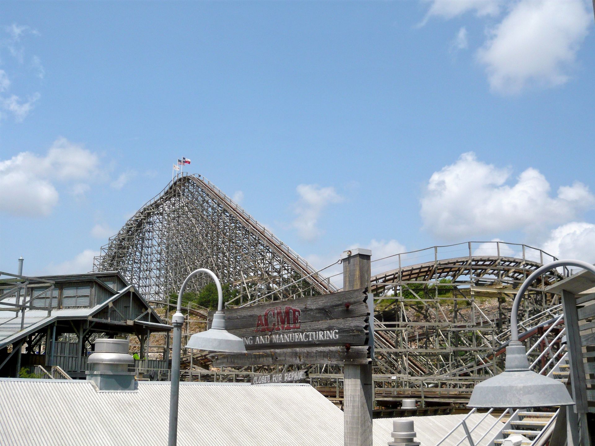 Rattler hatte immer noch geschlossen, aber im Gegensatz zu Mr. Freeze in Six Flags Over Texas informierte man die Fahrwilligen hier immer mal wieder über den aktuellen Maintenance-Zustand. So fanden wir heraus, dass man wohl damit rechne, den Rattler innerhalb der nächsten eineinhalb Stunden zum Laufen zu kriegen. Also zog es uns zum nebenan liegenden Minetrain Road Runner Express - und leider nicht nur uns.