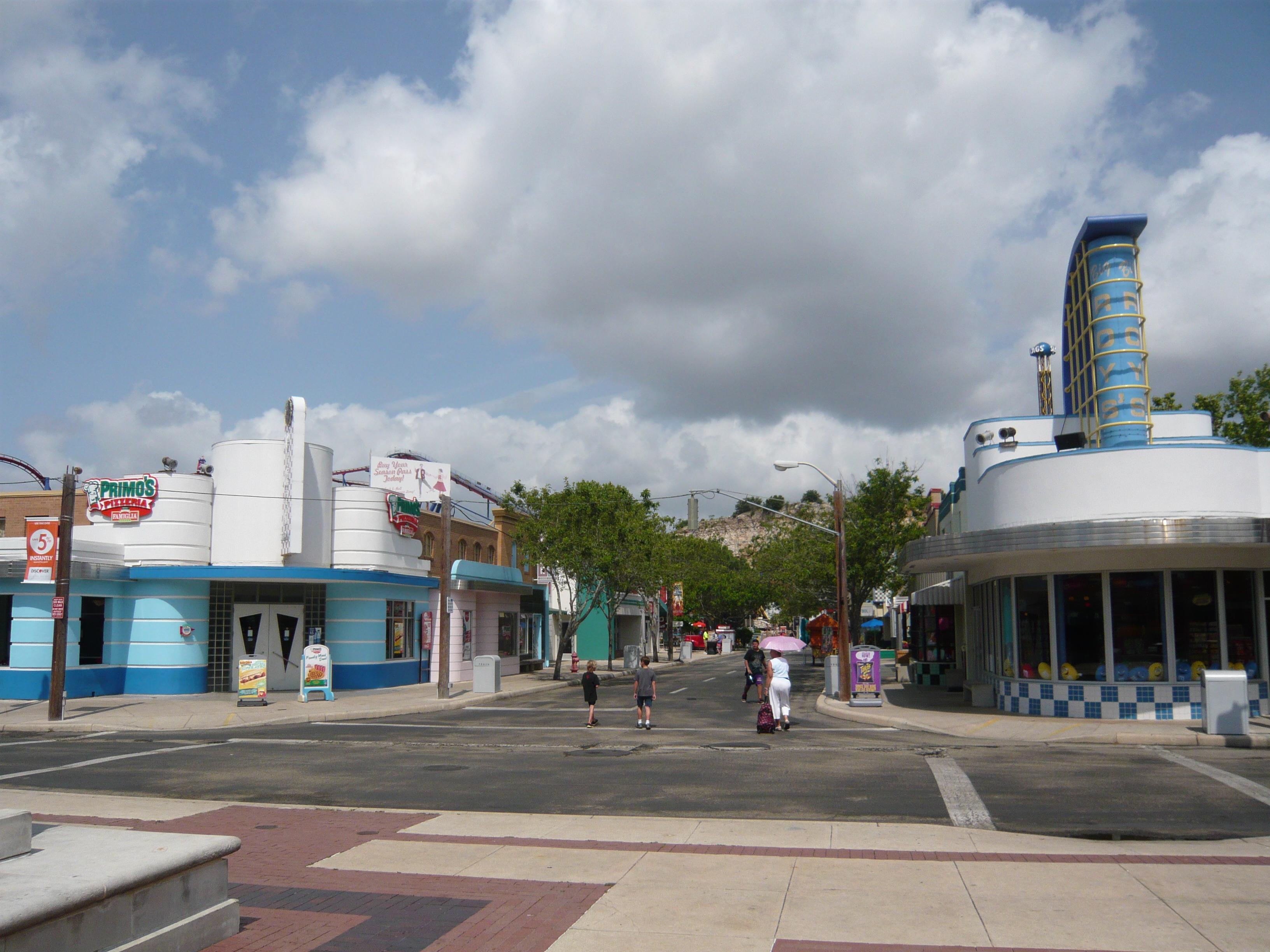Der lose nach Amerika der 50er-/60er-Jahre thematisierte Bereich Rockville mit richtigen Strassen als Gehwege (was ich immer cool finde) sowie verschiedenen Shops, Restaurants und Spielbuden.