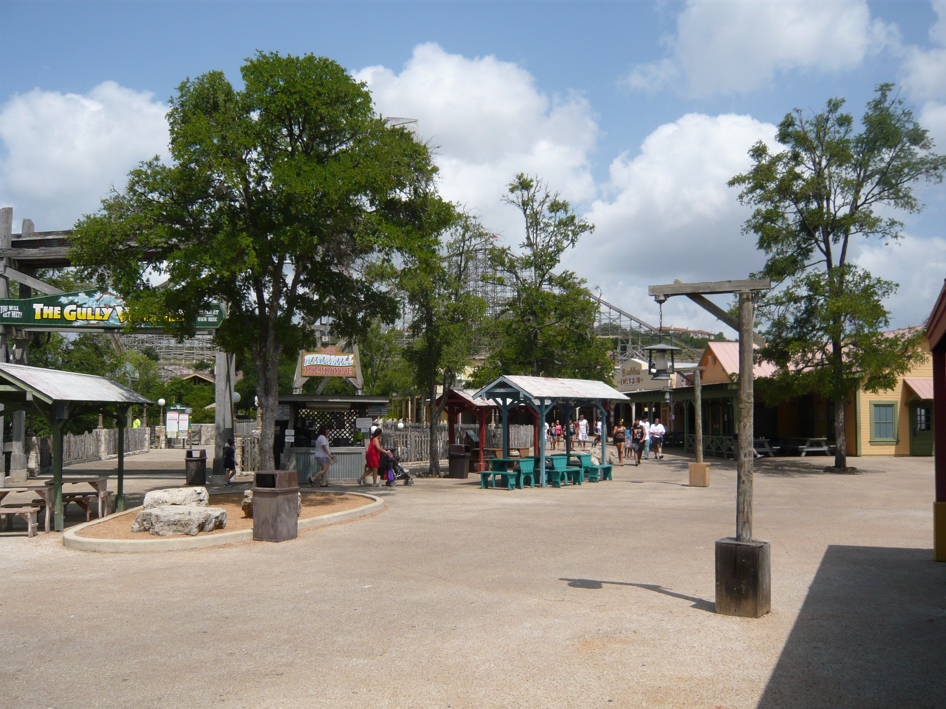 Nach den ersten paar Fahrten auf Superman schlenderten wir durch den Western-Bereich Crackaxle Canyon, wieder zurück zu Rattler.