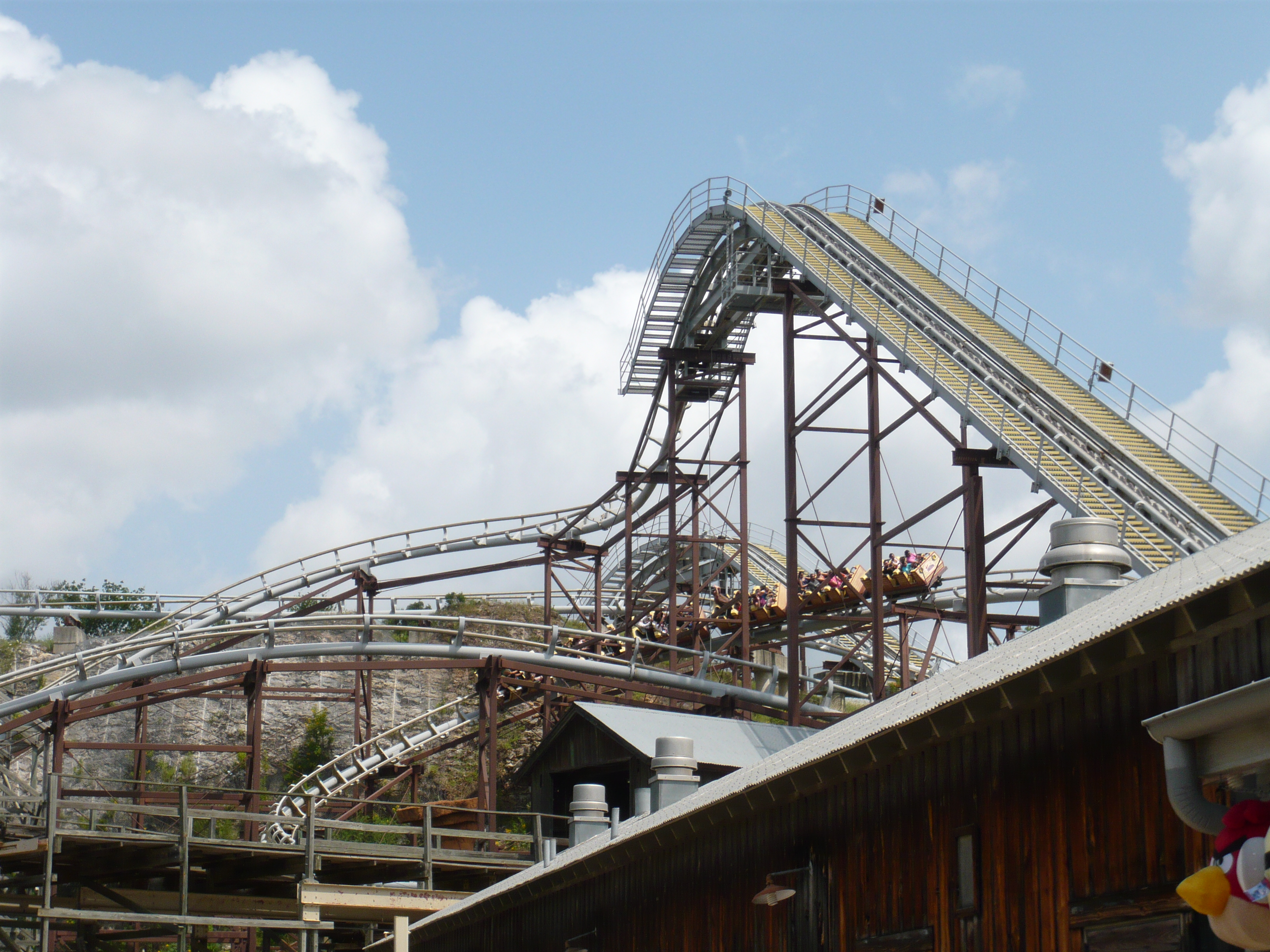 Da der Rattler noch geschlossen hatte, ging es dann erst einmal zum voraussichtlichen Coaster-Highlight, dem nun bereits sichtbaren und ausgesprochen imposanten