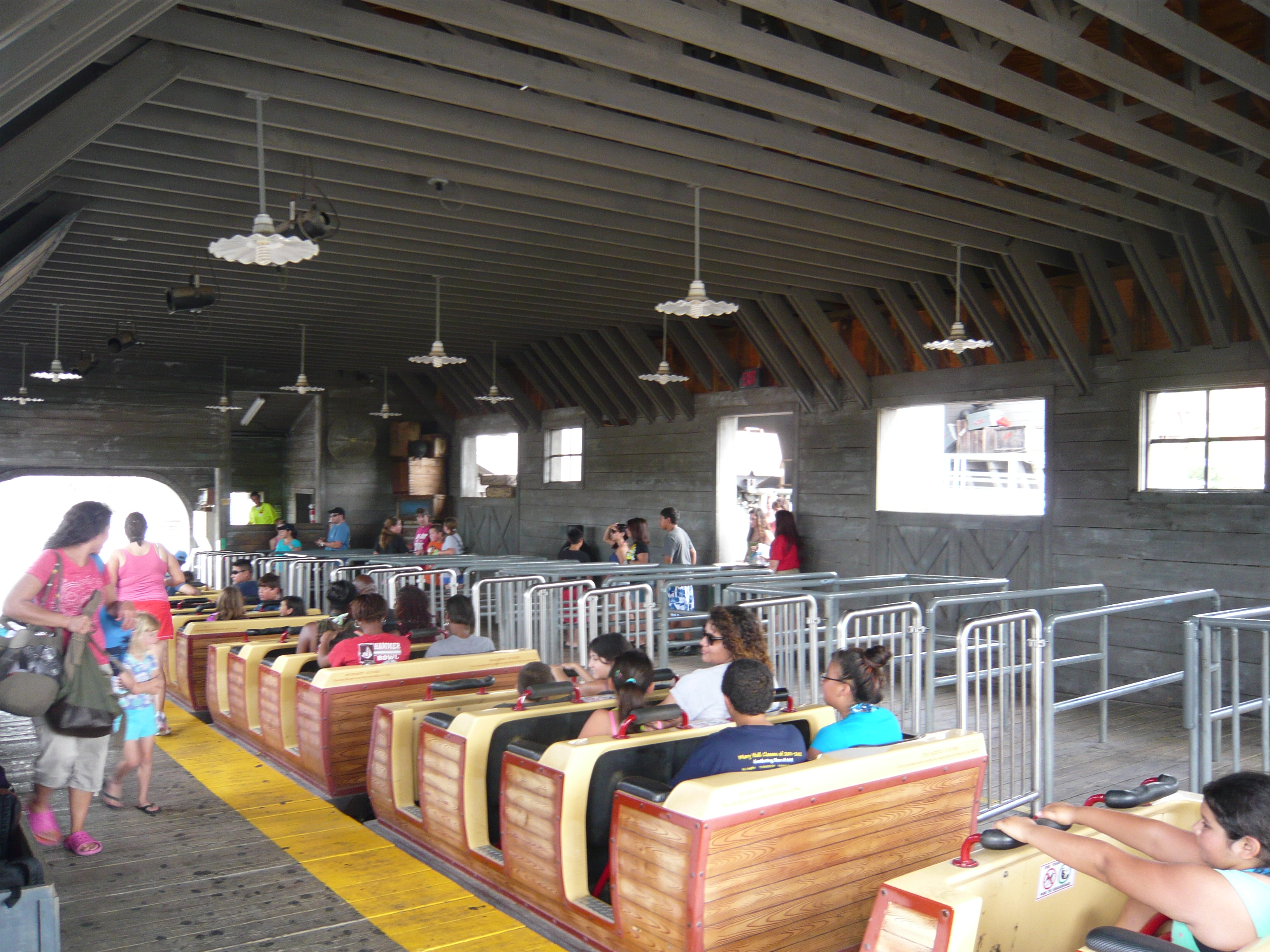 Den ganzen Tag über war hier Einzugbetrieb angesagt - aufgrund der Nähe zum Parkeingang herrschte daher eine konstant recht hohe Wartezeit vor, weil viele Parkbesucher gleich als erstes damit fahren wollten. Jetzt am Nachmittag war die Warteschlange jedoch auf ein annehmbares Mass zurück geschrumpft.