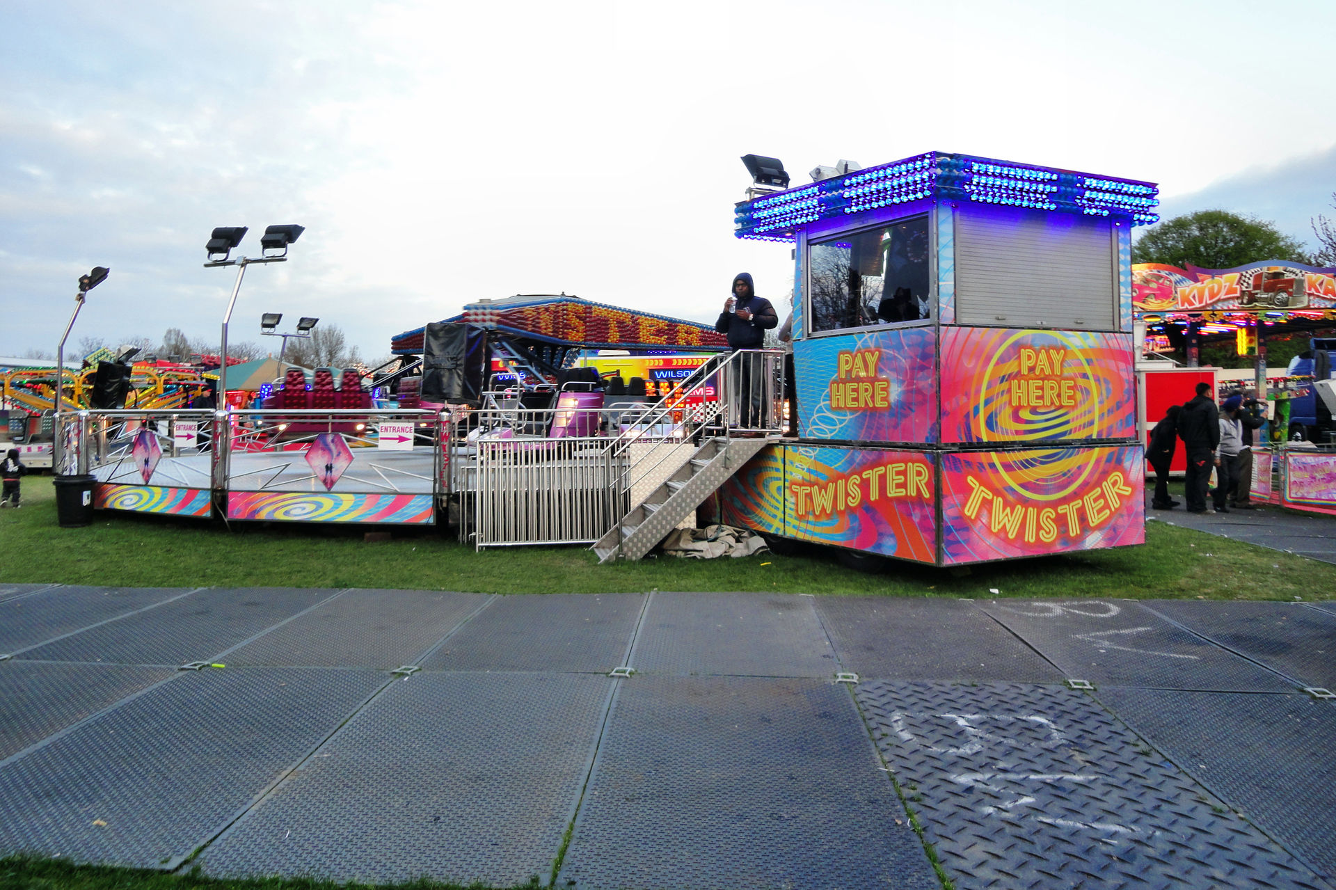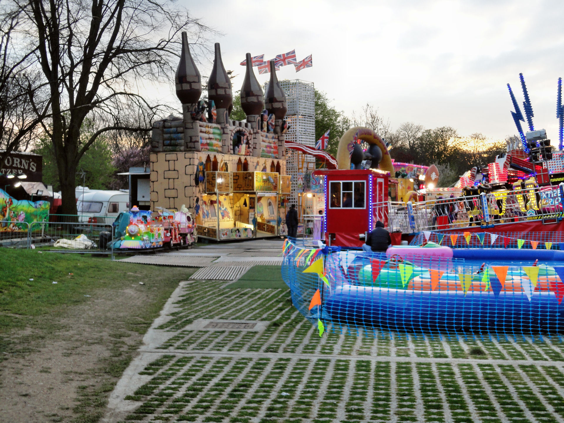 Abends wollten wir dann noch zwei Kirmessen besuchen. Doch die erste in Ealing Common wurde wohl kurzfristig abgesagt. Der Platz war – so erfuhren wir von einem Passanten vor Ort – wohl zu weich. Also ging es dann weiter nach Southall. Hier sollte Wilson’s Easter Fair stattfinden.
