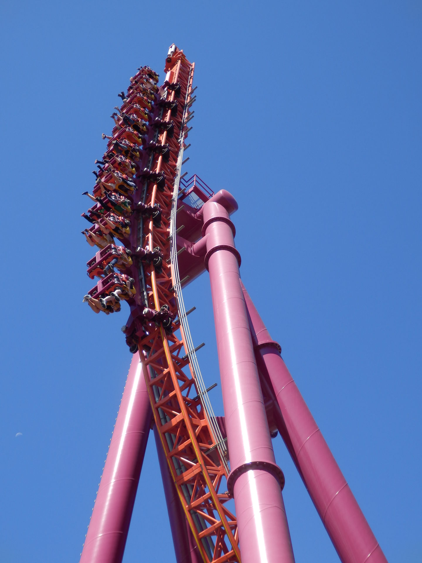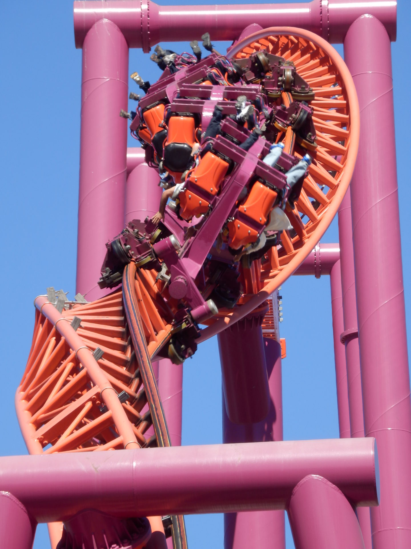 V2: Vertical Velocity. Der Impulse Coaster macht vor allem dank des getwisteten Abschnitts optisch eine Menge her, bleibt für mich aber allenfalls eine bessere Pendel-Attraktion. Gegenüber steht