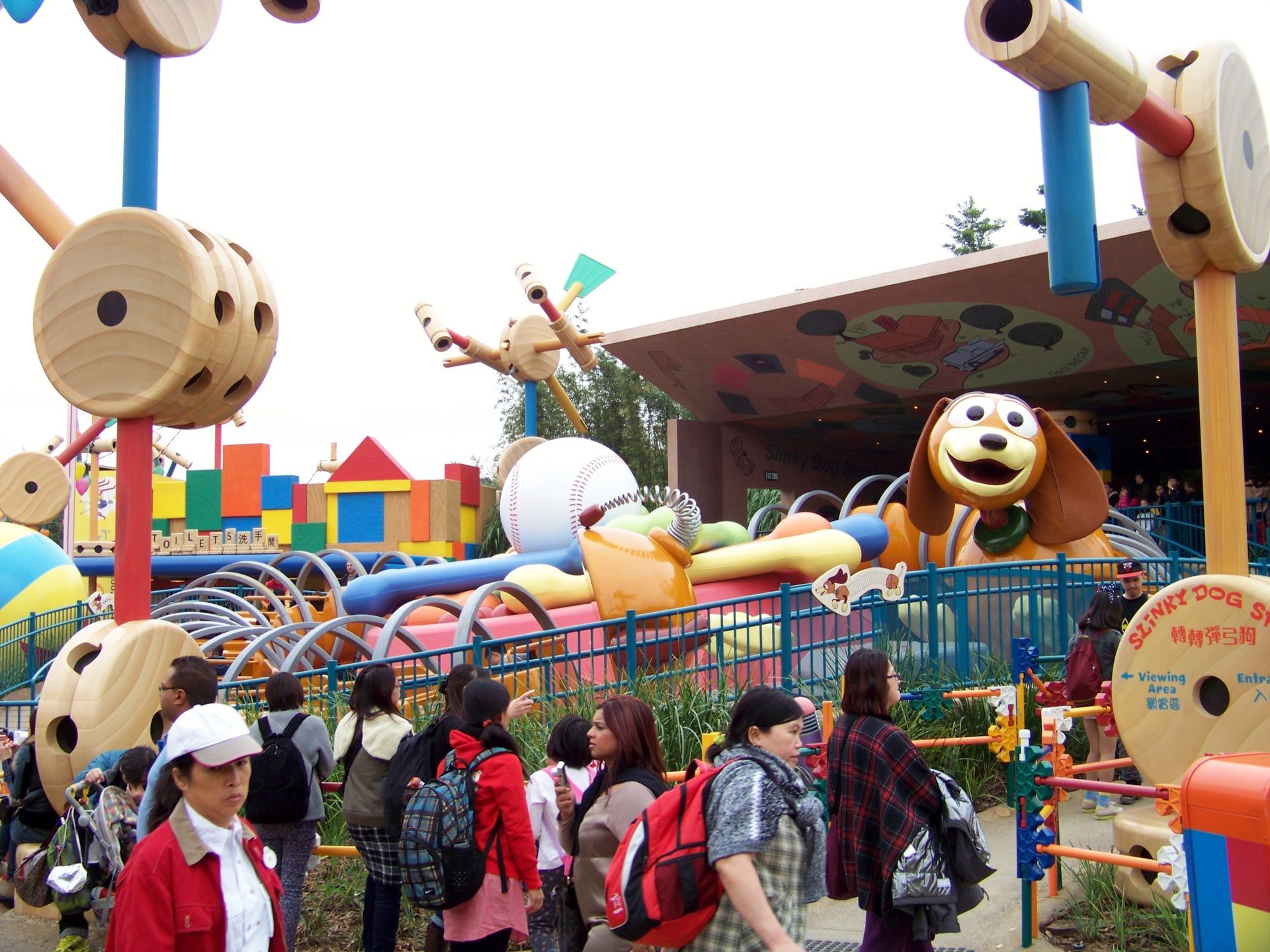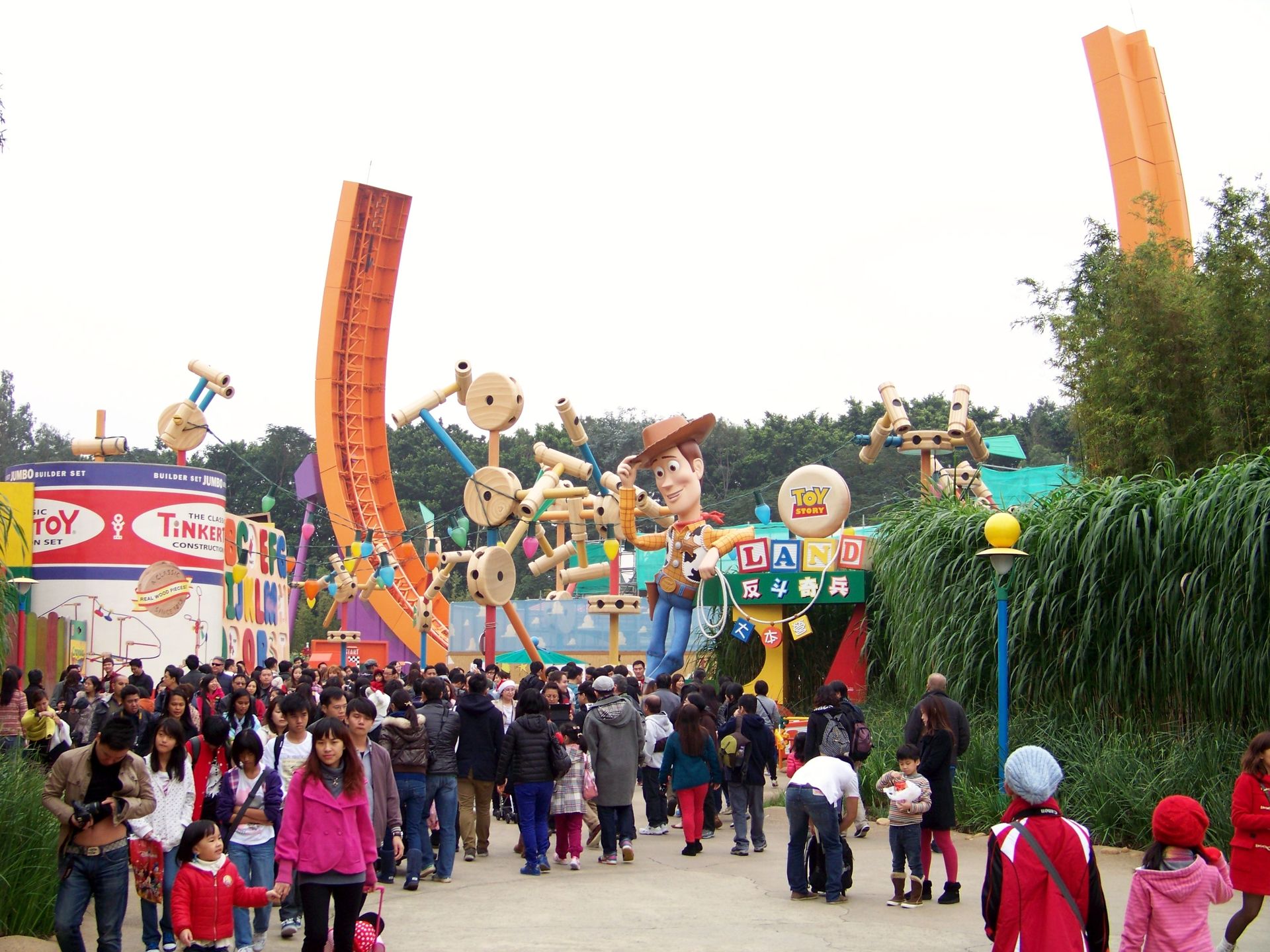 Ein Hauptkritikpunkt, der dem Park entgegengebracht wird, ist die niedrige Attraktionendichte, die wir bei unserem Besuch gar nicht als so störend empfanden. Sie wird allerdings mittlerweile dadurch abgemildert, dass zwei der drei neuen Themenbereiche zur Erweiterung des Parks bereits fertig gestellt und eröffnet sind. Die nur vereinzelt anzutreffenden Fahrattraktionen machen, finde ich, aber auch einiges von dem Flair des Parks aus. So wird das Adventureland zu einem riesigen Ruheeck mitten im Park. Von der Fläche ist es der größte Themenbereich, bei dem aber vollständig auf eine große Fahrattraktion verzichtet wurde. Vollkommen aus dem Rahmen fällt allerdings das noch junge Toy Story Land, das mit seinem unruhigen, chaotischen Plastikflair wie ein Fremdkörper wirkt.