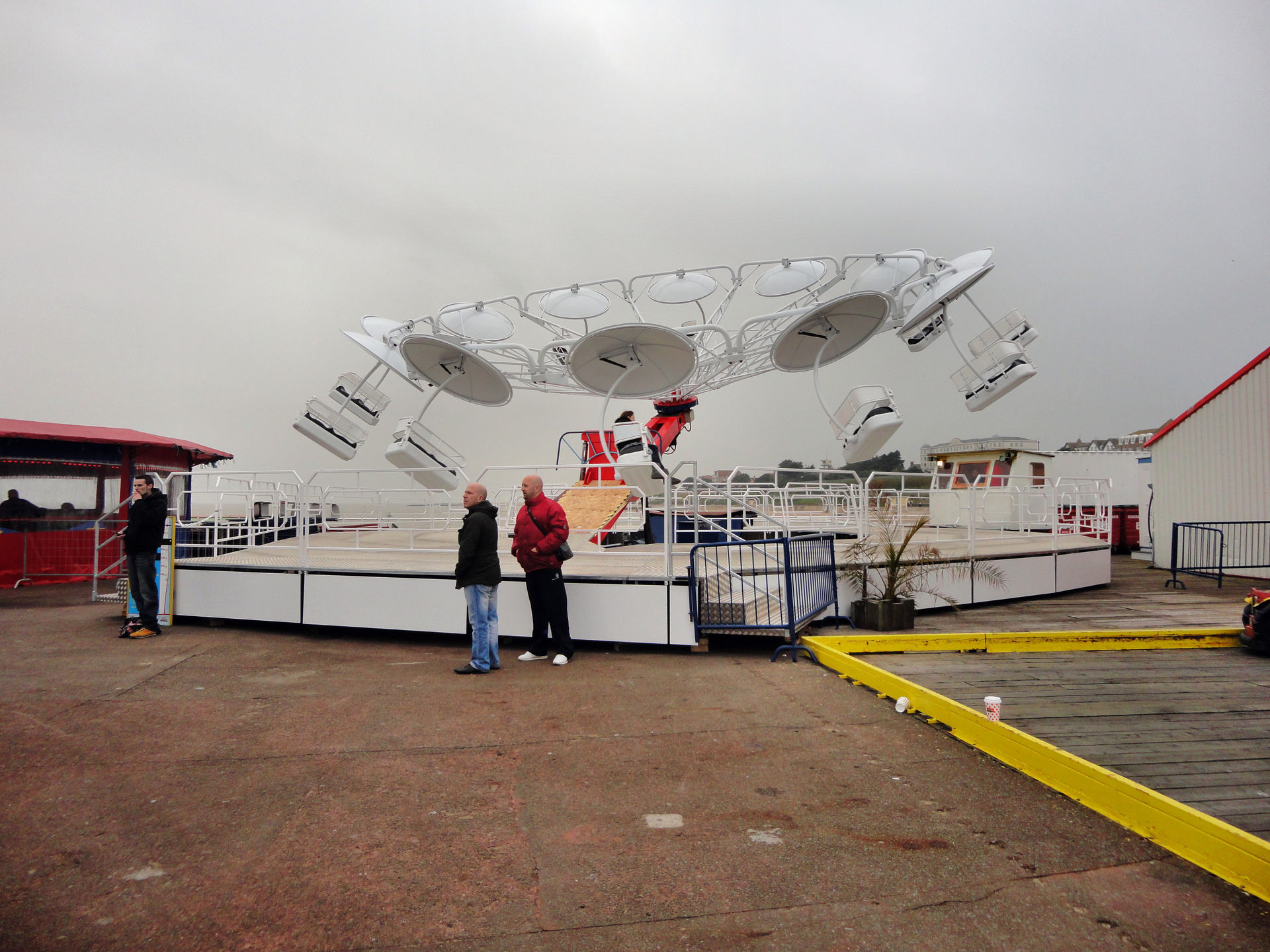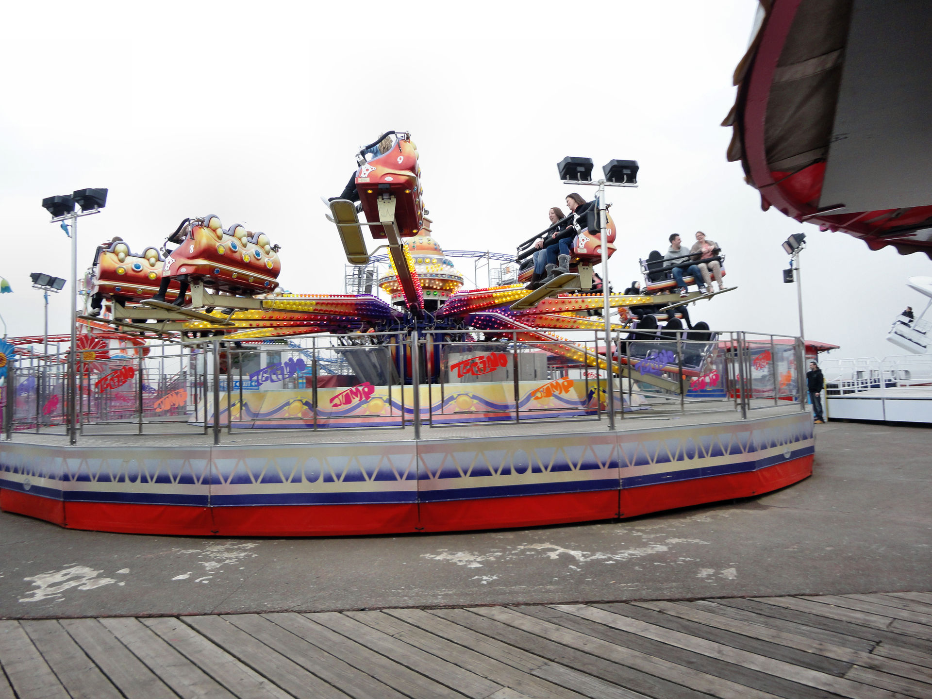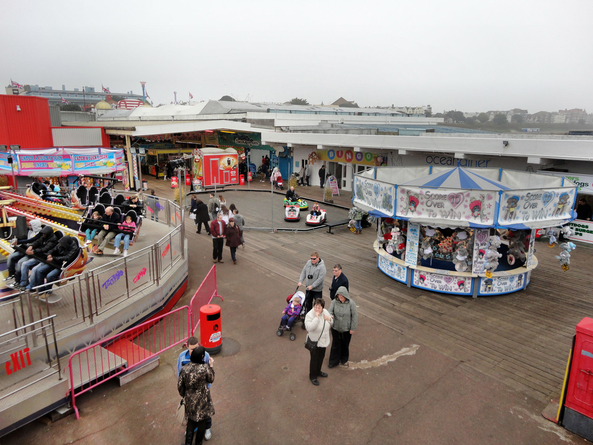 Klassischerweise sind die Fahrattraktionen auf so einem Pier am hinteren Ende aufgebaut. Um dort hinzukommen wird man an Spielbuden, Spielautomaten und Spielgeräten – sprich alles was Geld kostet – vorbeigelotst. Wir wählten am Hinweg die rechte Seite.