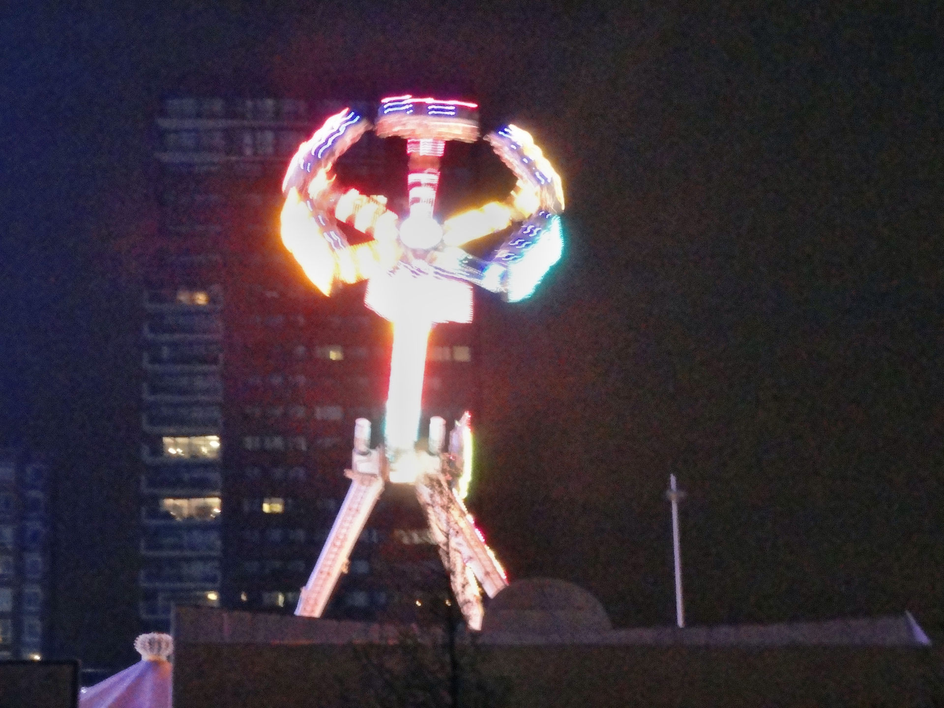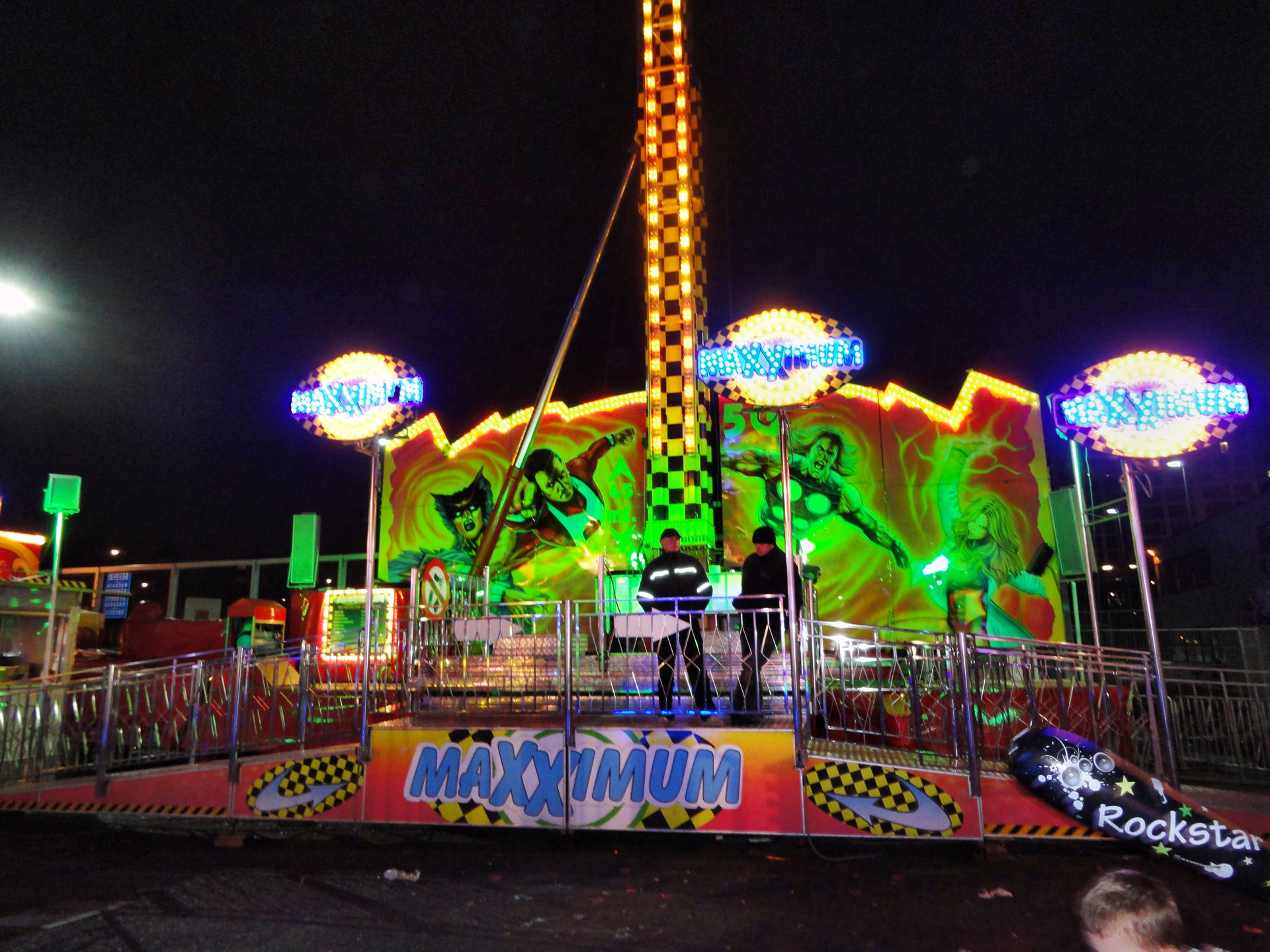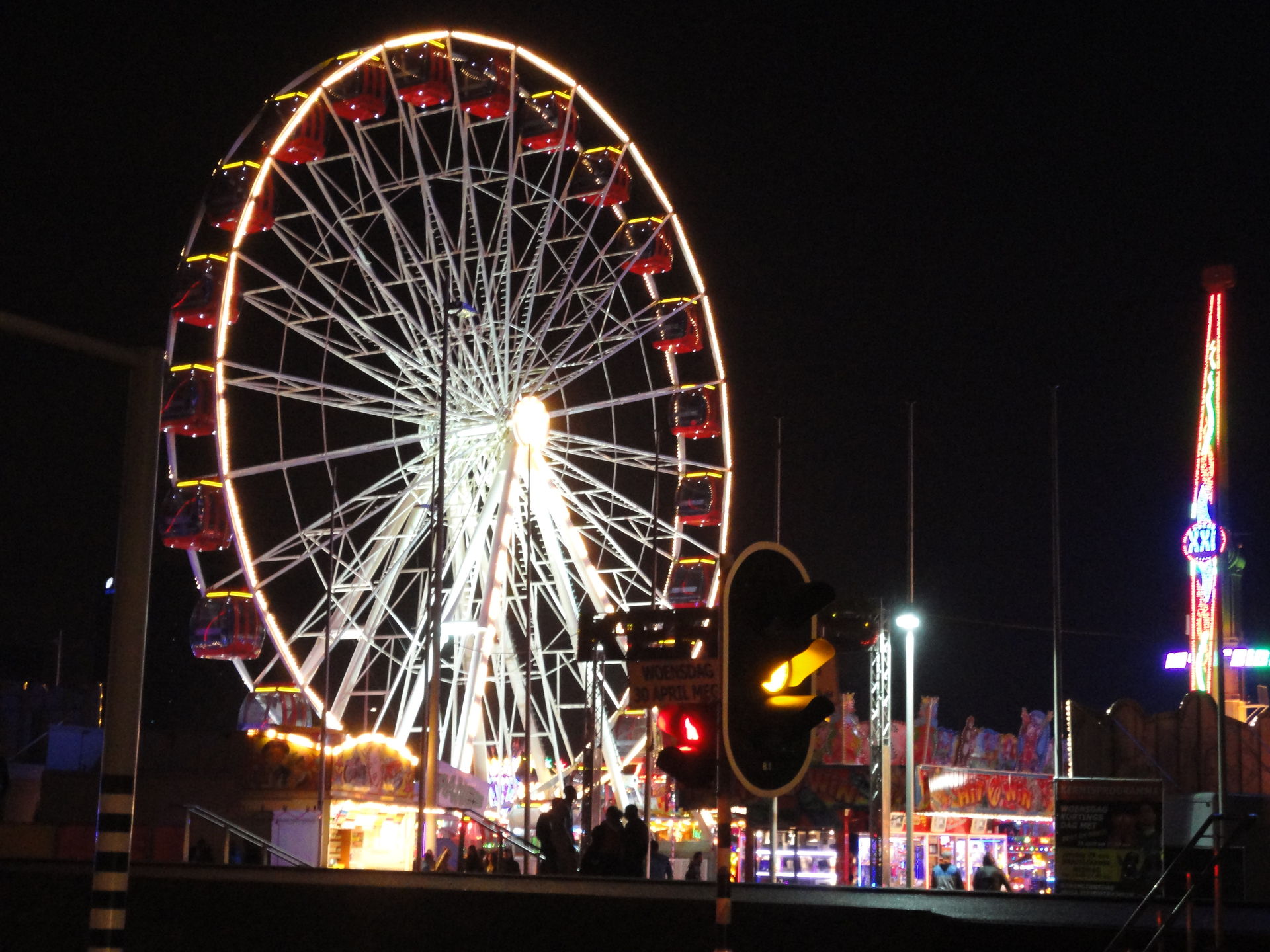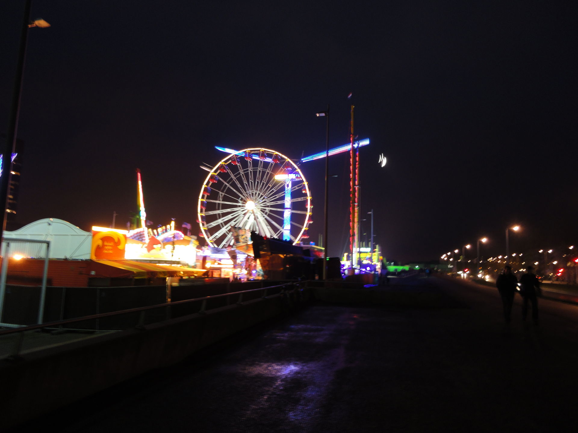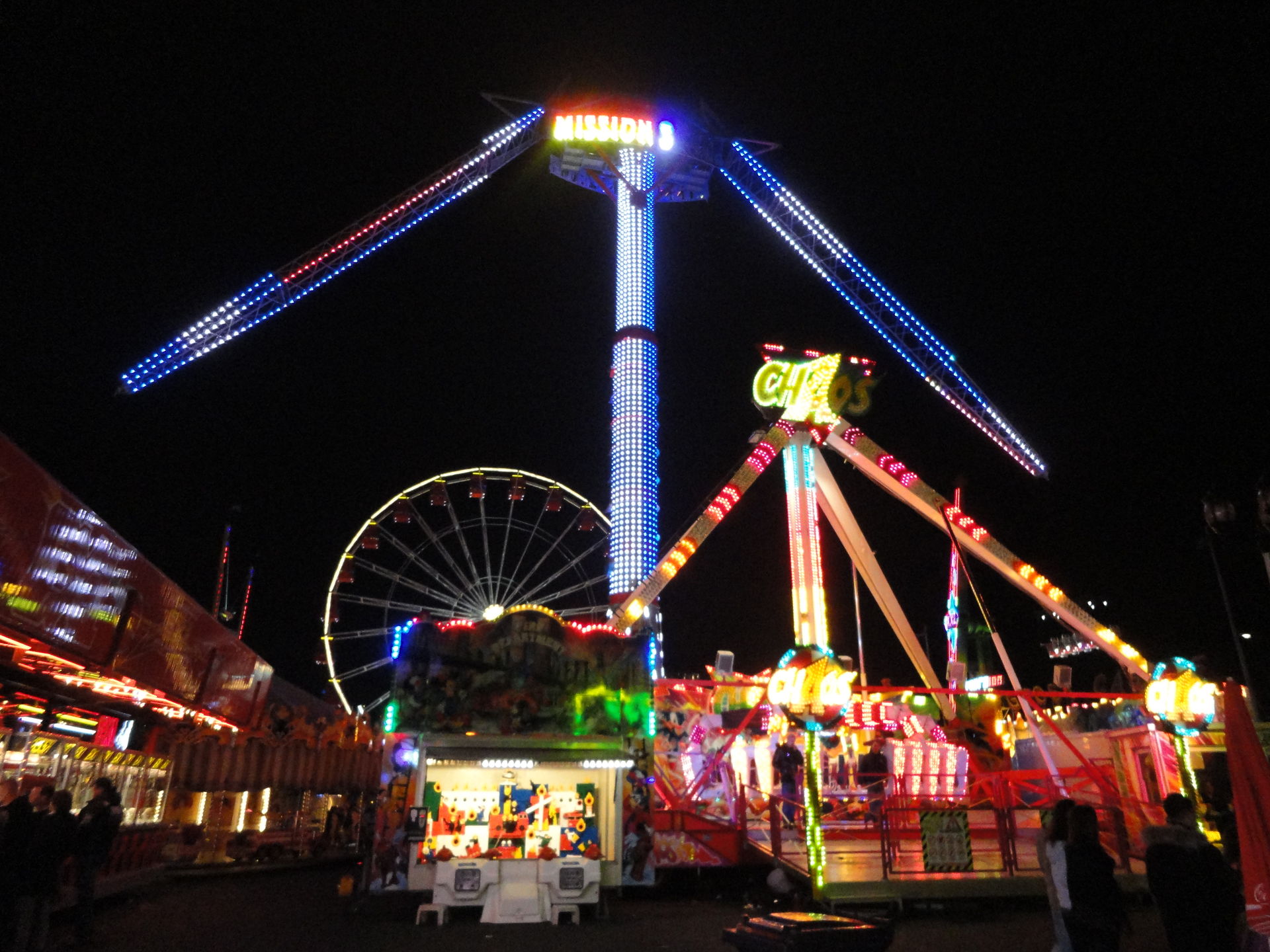 Die Kirmes war dann auch eine Nummer größer als die anderen an diesem Tag besuchten. Gerade die „höheren“ Attraktionen boten im abendlichen Lichtspiel einige Punkte, die weit in die Stadt rein sichtbar waren. Leider begann es aber auch an diesem Abend wieder recht schnell an zu regnen. In Verbindung mit der fortgeschrittenen Stunde, fingen die Schausteller an ihre Attraktionen zu schließen. Wir haben deshalb nur eine schnelle Runde drehen können.