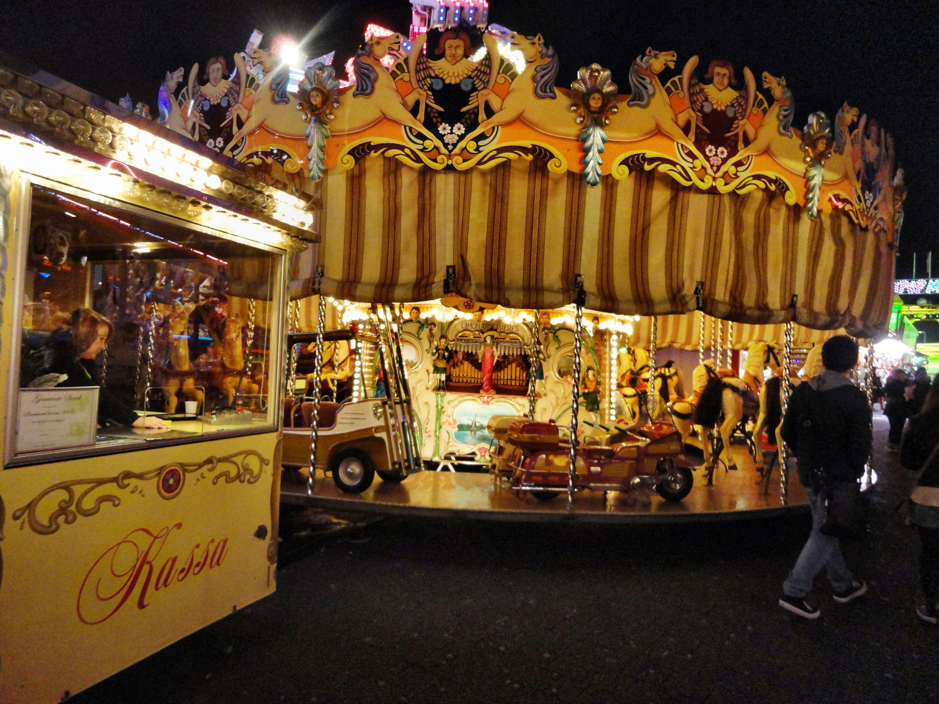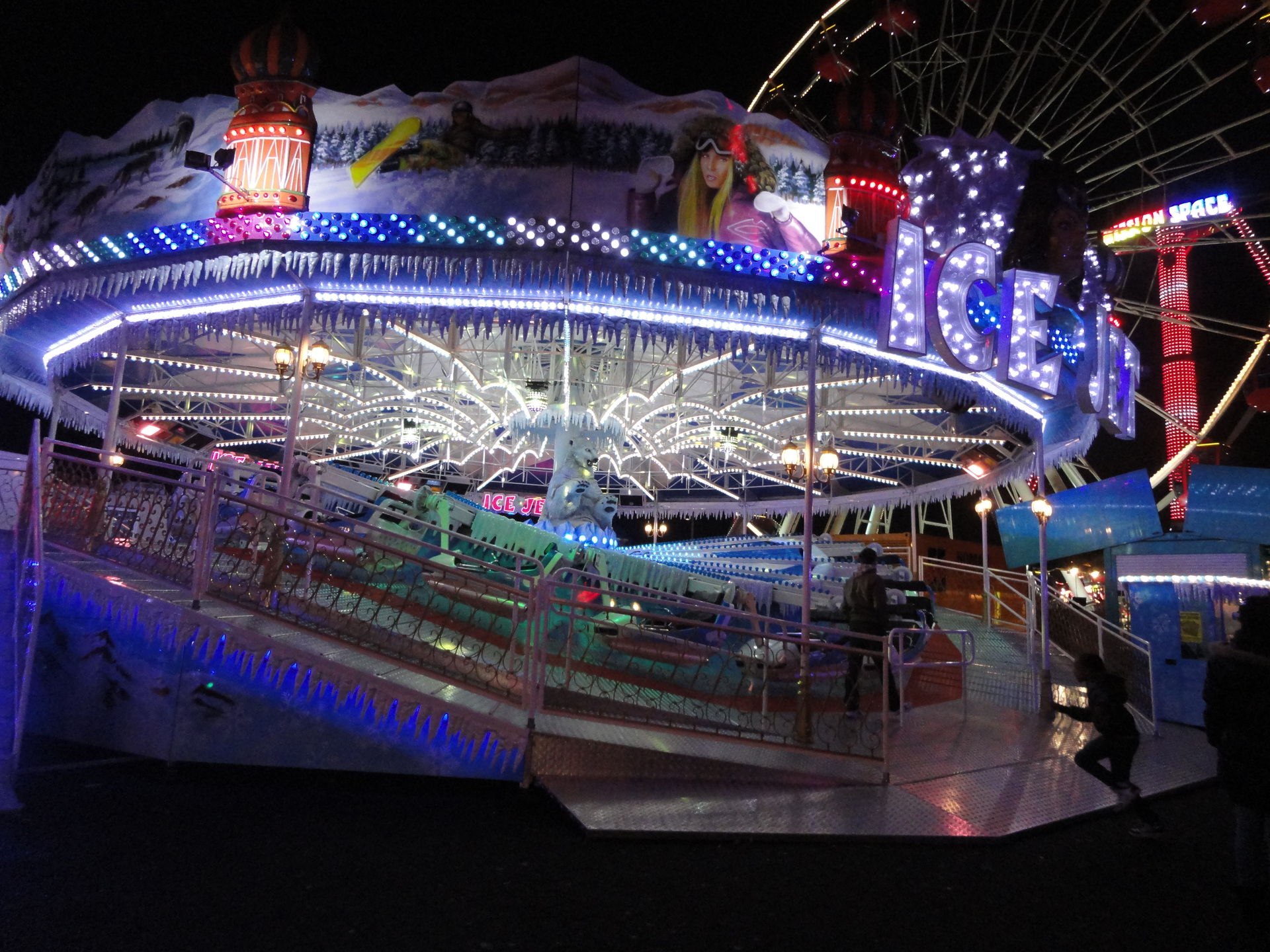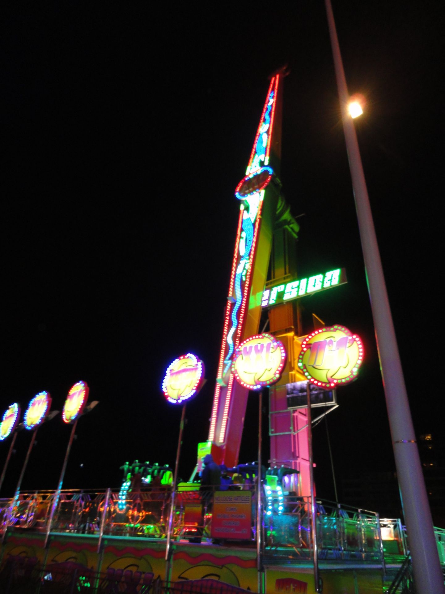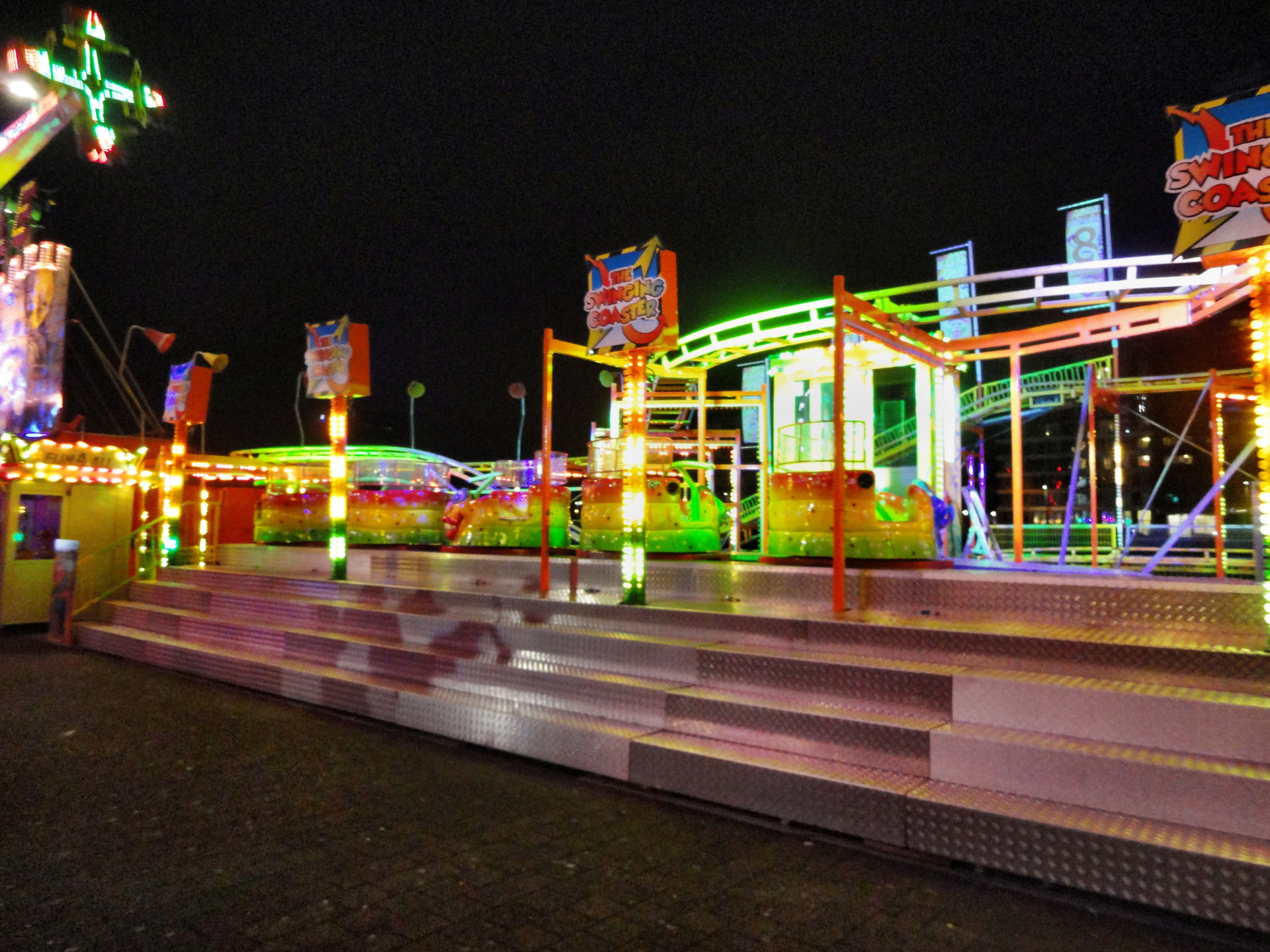 Die Kirmes war dann auch eine Nummer größer als die anderen an diesem Tag besuchten. Gerade die „höheren“ Attraktionen boten im abendlichen Lichtspiel einige Punkte, die weit in die Stadt rein sichtbar waren. Leider begann es aber auch an diesem Abend wieder recht schnell an zu regnen. In Verbindung mit der fortgeschrittenen Stunde, fingen die Schausteller an ihre Attraktionen zu schließen. Wir haben deshalb nur eine schnelle Runde drehen können.