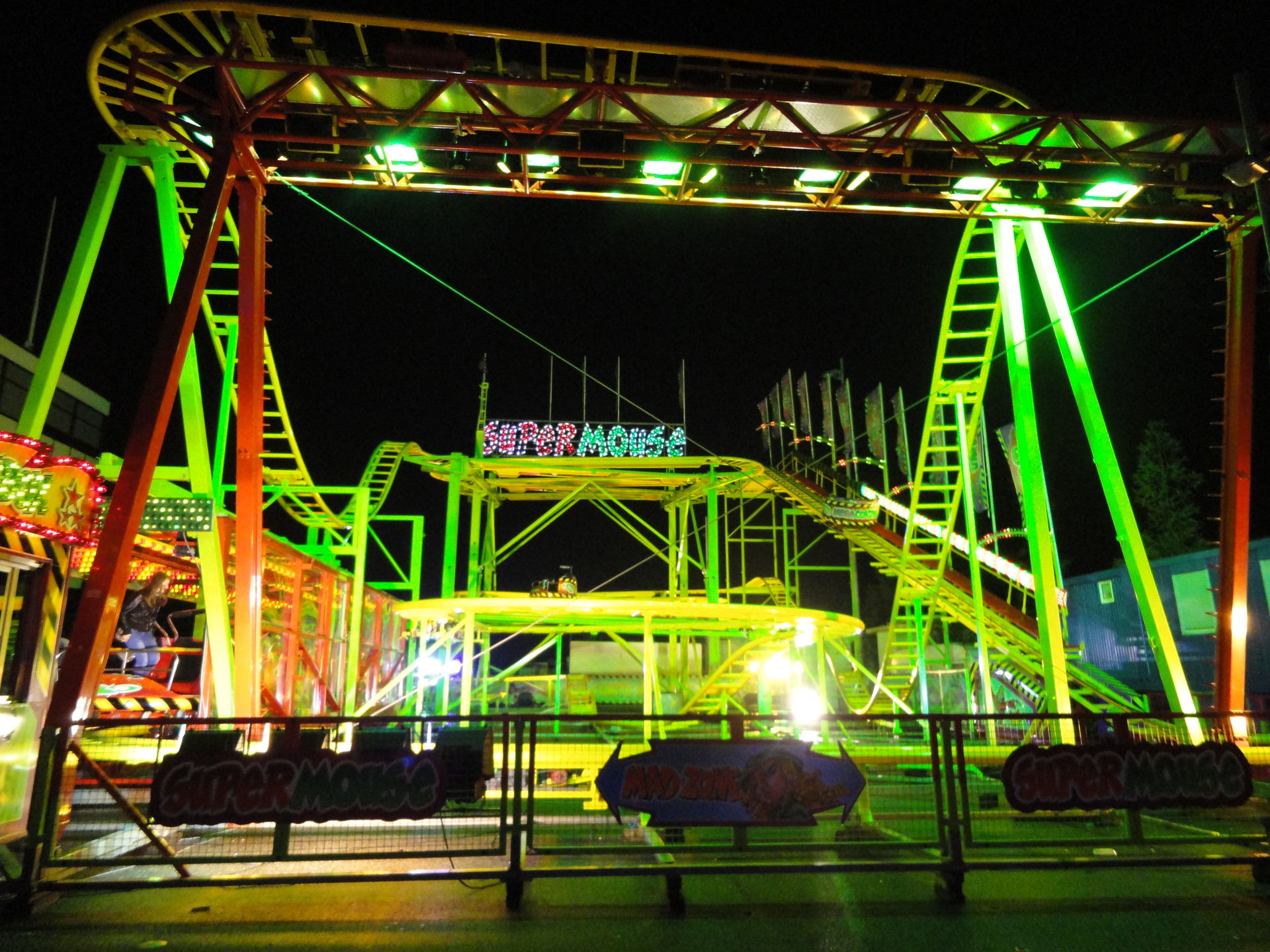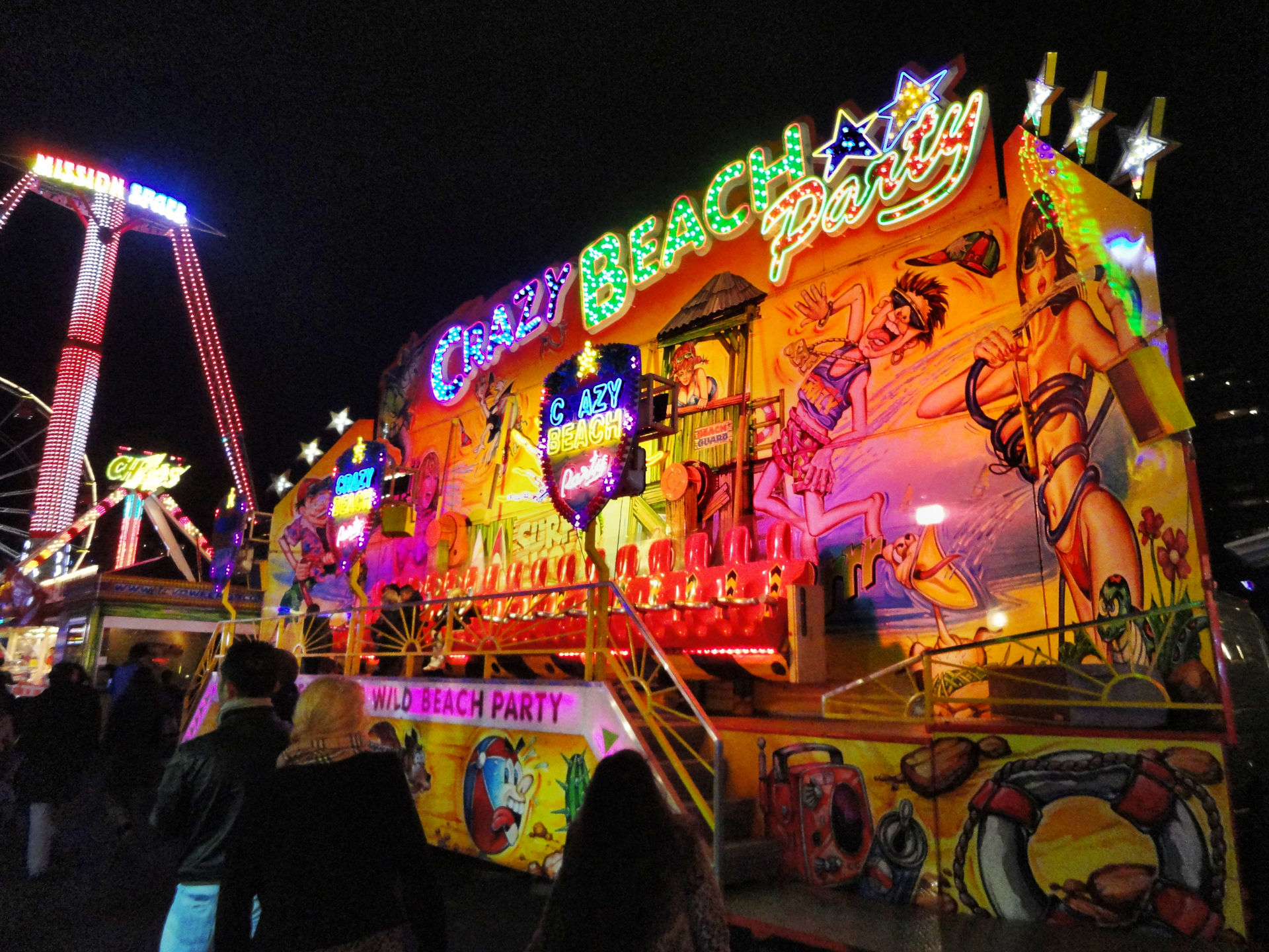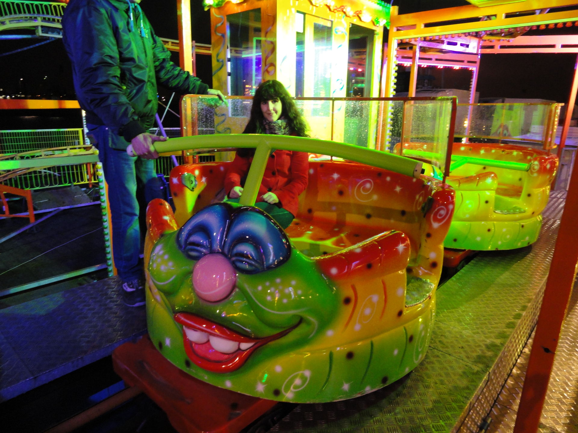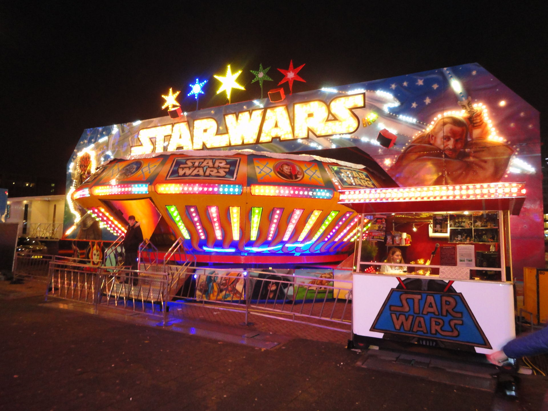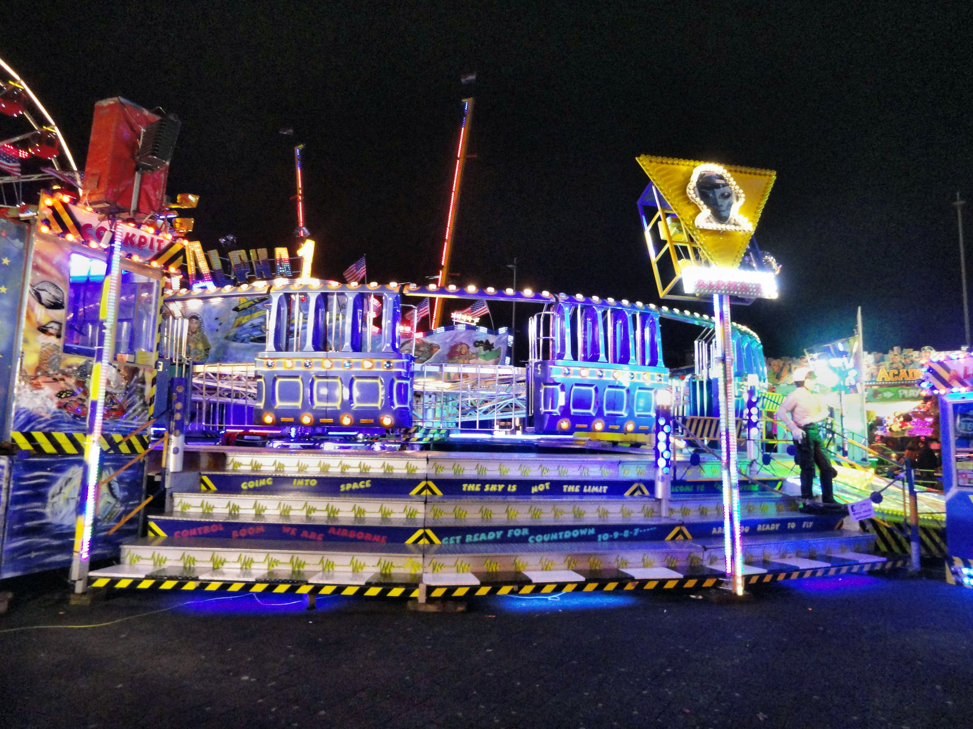 Die Kirmes war dann auch eine Nummer größer als die anderen an diesem Tag besuchten. Gerade die „höheren“ Attraktionen boten im abendlichen Lichtspiel einige Punkte, die weit in die Stadt rein sichtbar waren. Leider begann es aber auch an diesem Abend wieder recht schnell an zu regnen. In Verbindung mit der fortgeschrittenen Stunde, fingen die Schausteller an ihre Attraktionen zu schließen. Wir haben deshalb nur eine schnelle Runde drehen können.