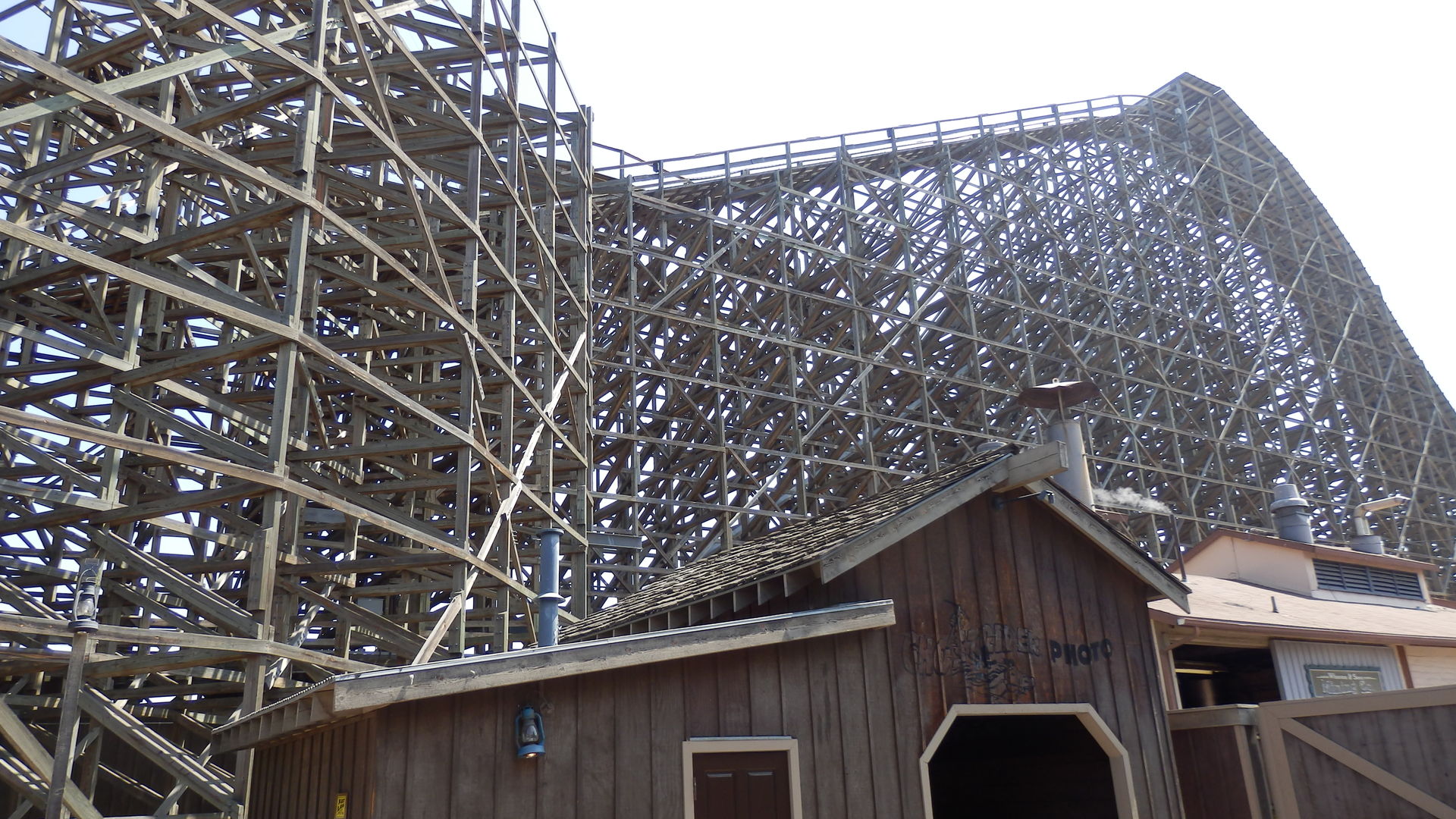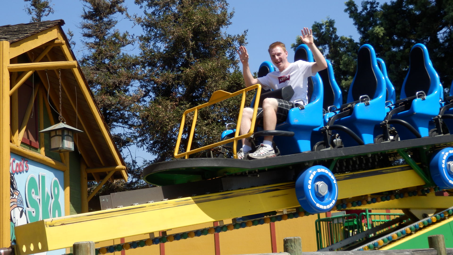 GCI Holz dahinter. Stattdessen verbirgt sich hinter Timberline Twister einer dieser typisch amerikanischen Kiddiecoaster bei denen es genauso schwer ist reinzukommen wie wieder daraus rauszukommen. Erst bestehen die Kiddiecoaster Operator auf die ihnen innewohnende Autorität alle Personen deren Körpergröße die der grünen Linie übersteigt von einer Fahrt auszuschließen oder sie verstehen nicht welche Bedeutsamkeit sich hinter dem Terminus "Dschörmen Kohster Ensusiäst fromm Dschörmenni" verbirgt und dann - hat man es erstmal ob der Widrigkeiten in den kleinen Wagen geschafft - kann man sich daraus nicht mehr befreien weil sich Beine, Gurt, Bügel und Wagenwand ineinander, übereinander und untereinander verkeilt haben. Puh...