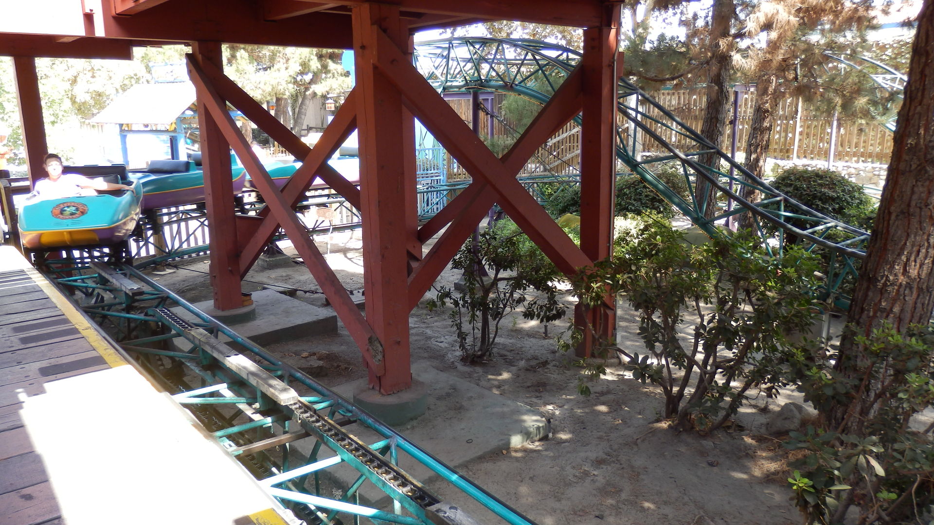 Der Motocoaster ohne Moto und mit Pferden von 2008 befindet sich weiter hinten im eher älteren bzw. historischeren Teil des Parks. Irgendwo dort muss sich wohl auch die ominöse Beerenfarm befinden/befunden haben. Solange diese aber nicht dem von Zamperla hingeklatschten Pony Express zum Opfer gefallen ist bin ich beruhigt, denn diese sogenannte Achterbahn ist in jeglicher Hinsicht nicht gerade viel. Nicht hoch, nicht lang, nicht schnell, nicht gut.