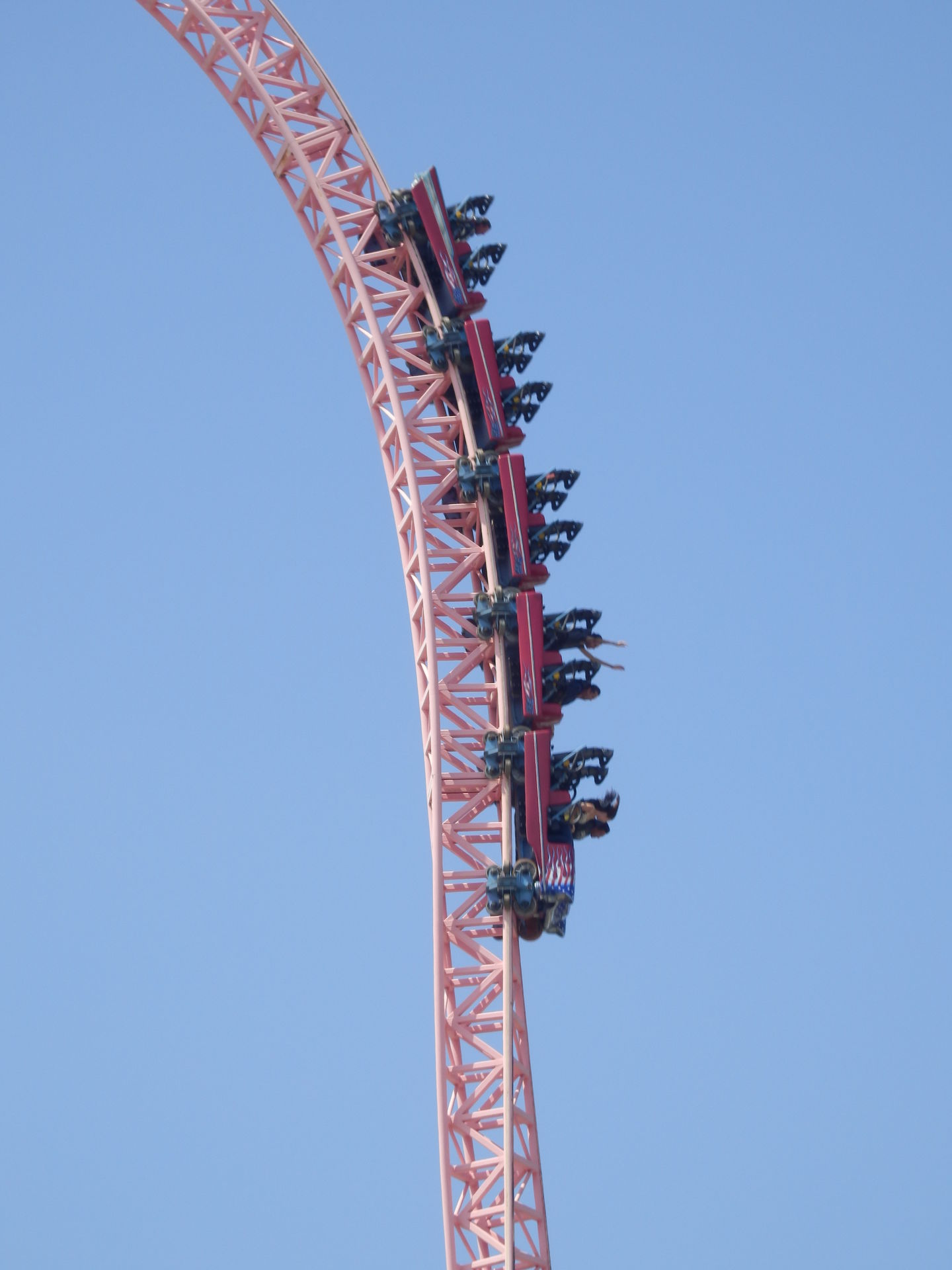 Windseeker, die Mondial-Alternative zum Starflyer von Funtime, die in den letzten Jahren in den meisten der Cedar Fair Parks Einzug gehalten hat. Nun stellt sich natürlich die Frage: Welche Variante ist besser? Die kurze Antwort: Keine. Die lange: Beide sind super, bei beiden scheißt man sich in die Hose. Beim Starflyer wird aber ob der Ketten und der etwas lose wirkenden Struktur die Windel vielleicht ein bisschen voller. Für den amerikanischen Markt ist die kettenfreie Version daher auch folgerichtig die passendere. Der flatteste aller Flatrides ist