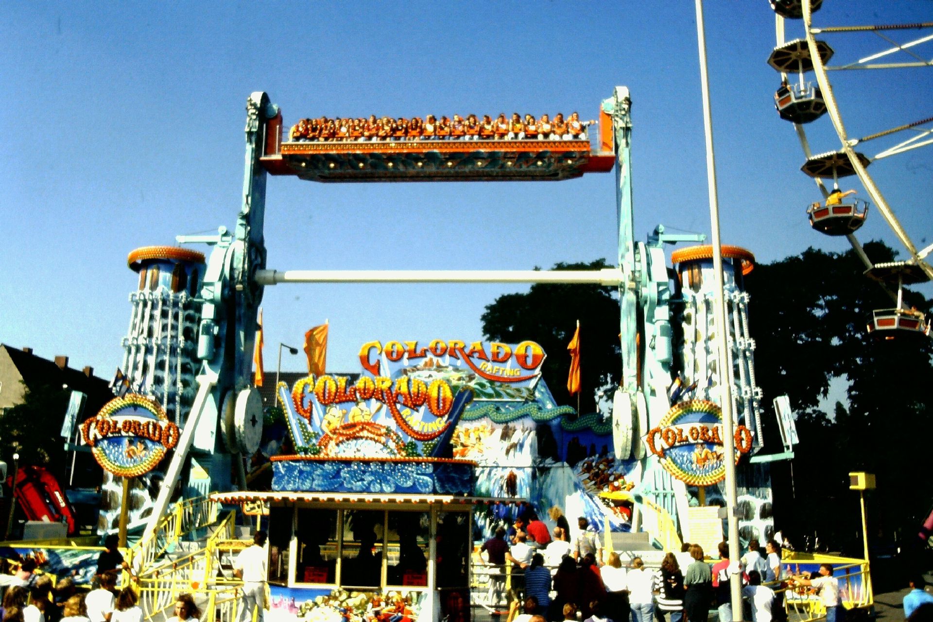 Die Rede ist vom Colorado Rafting, der allerersten Anlage diesen Typ's auf deutschen Festplätzen. Meine Premiere für das Huss-Fahrgeschäft war, wenn ich das rcihtig in Erinnerung habe, 1990 auf dem Münster-Send.