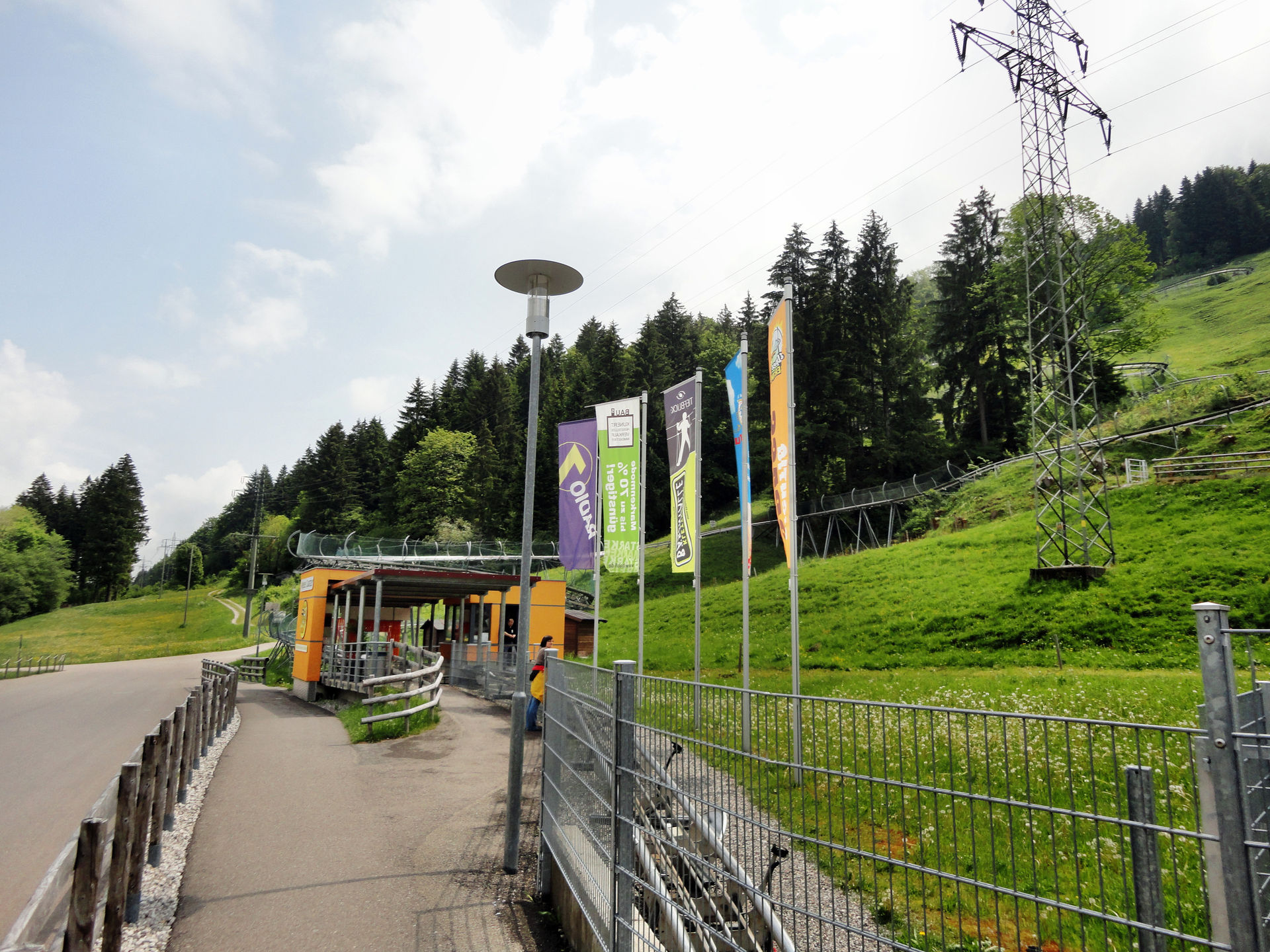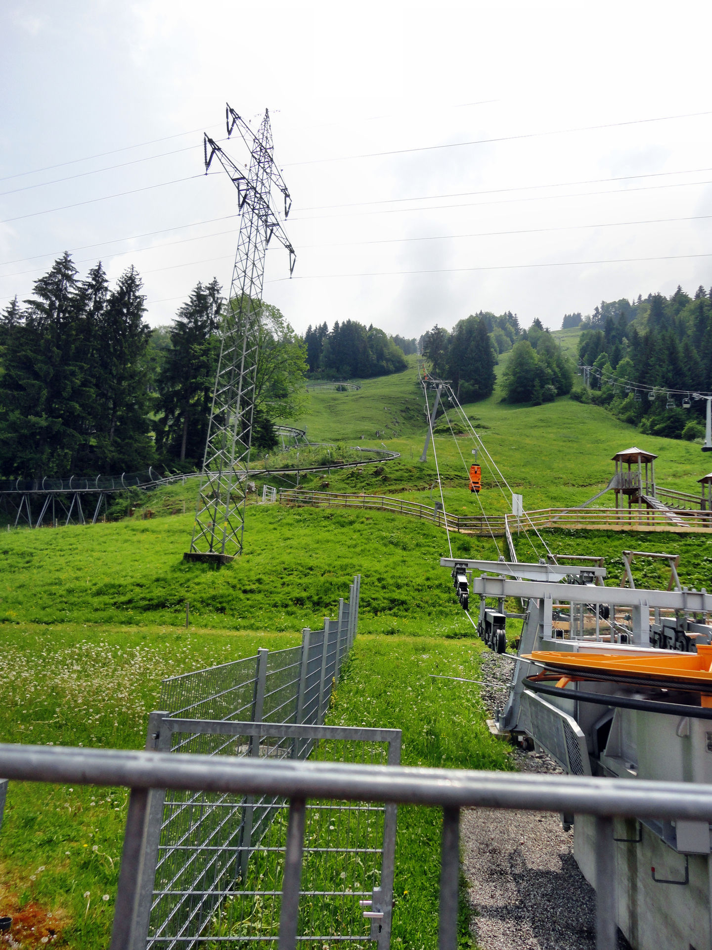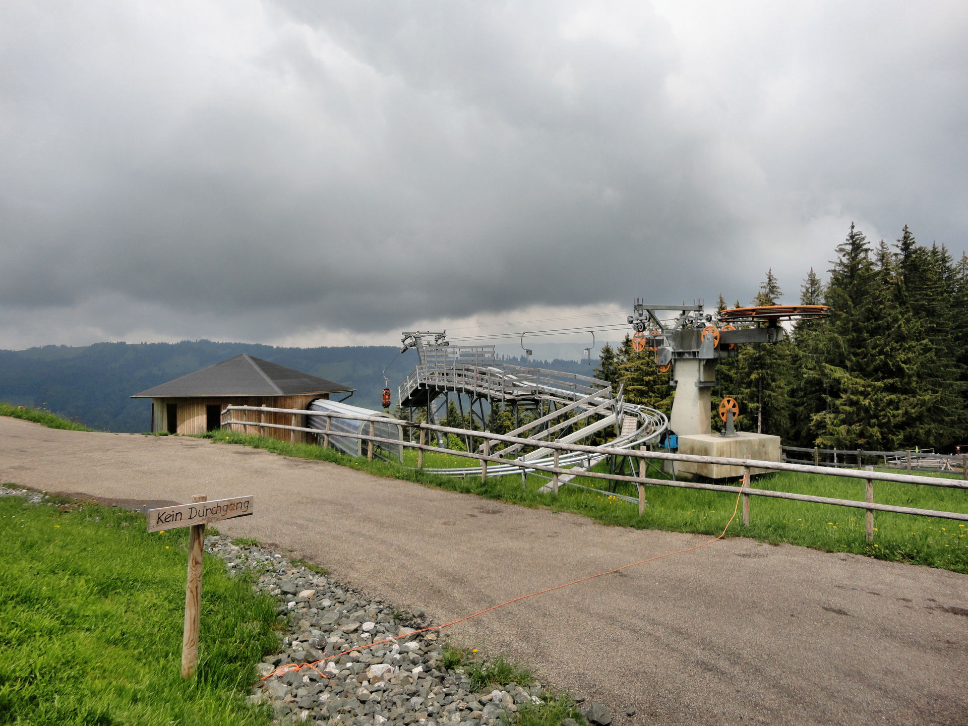 Nachdem wir erst mit Zug und dann mit dem Bus also am Alpsee Coaster ankamen, fuhren wir auch relativ schnell mit dem Sessellift auf den Berg rauf. Dabei konnte man schon gut den Streckenverlauf erahnen. Was wir auf der Auffahrt noch vermuteten, bestätigte sich dann auch kurz darauf: der Alpsee Coaster ist eine sehr nette wilde Bahn. Sollte öfters Bahnen wie diese geben und weniger dieser relativ eintönigen Standardbahnen.