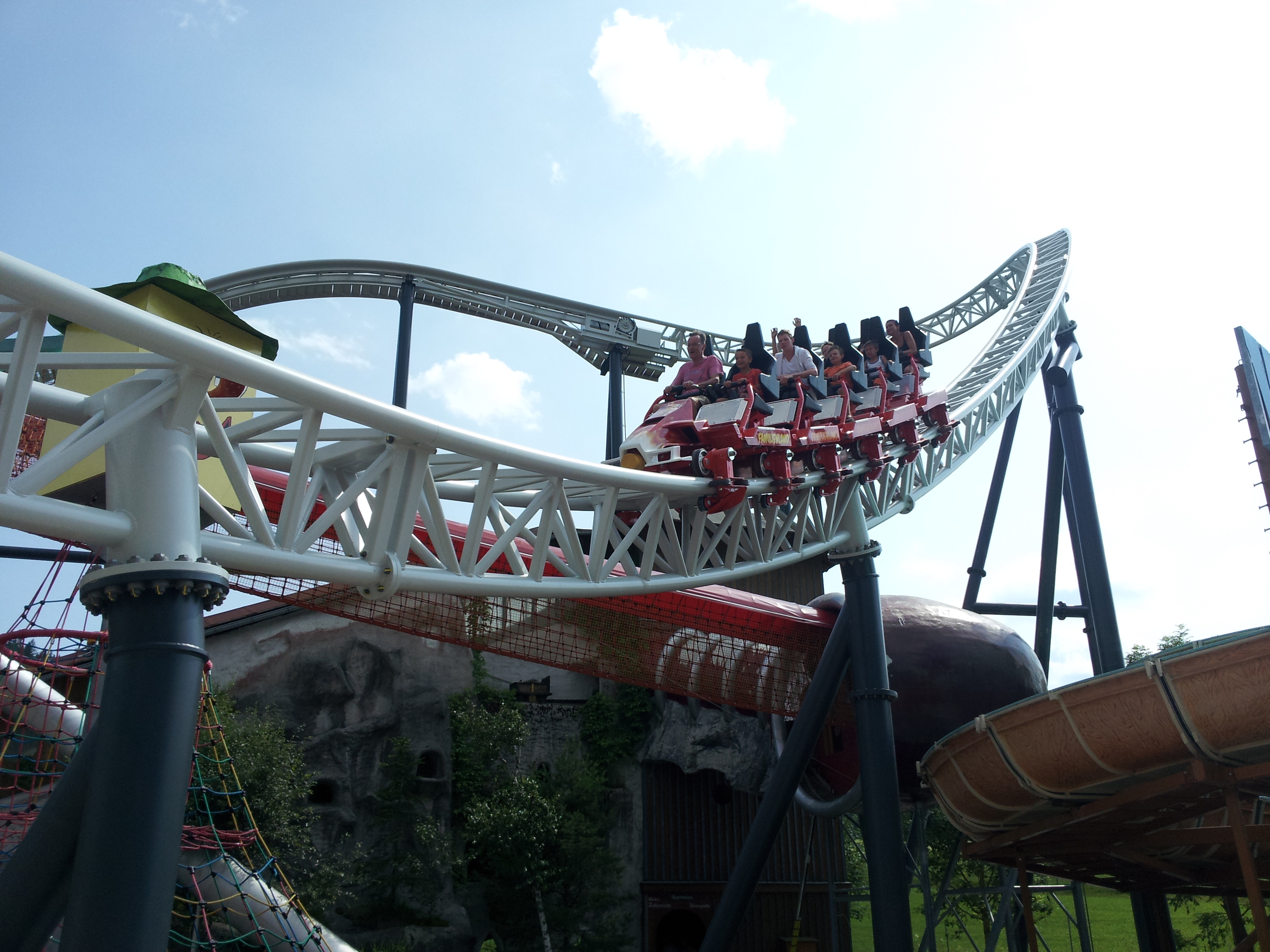 Gute Bahn, tolle Ergänzung für den Park, Fahrt macht Spaß, gute Geschwindigkeit, tolle Umschwünge, schöne Integration in den Park. Fahrgefühl leider Zierer-ESC-mässig.