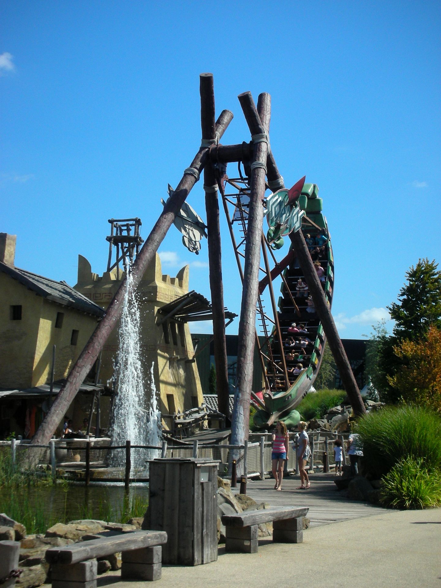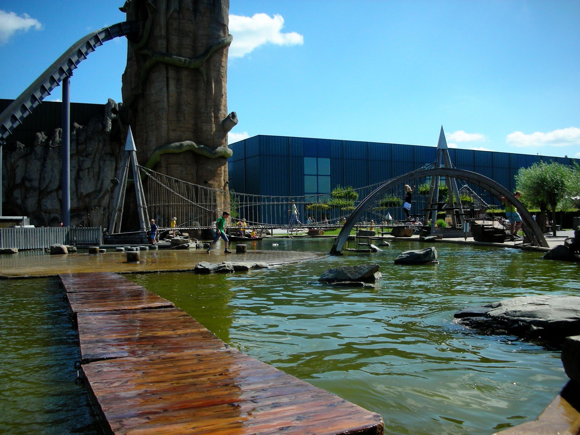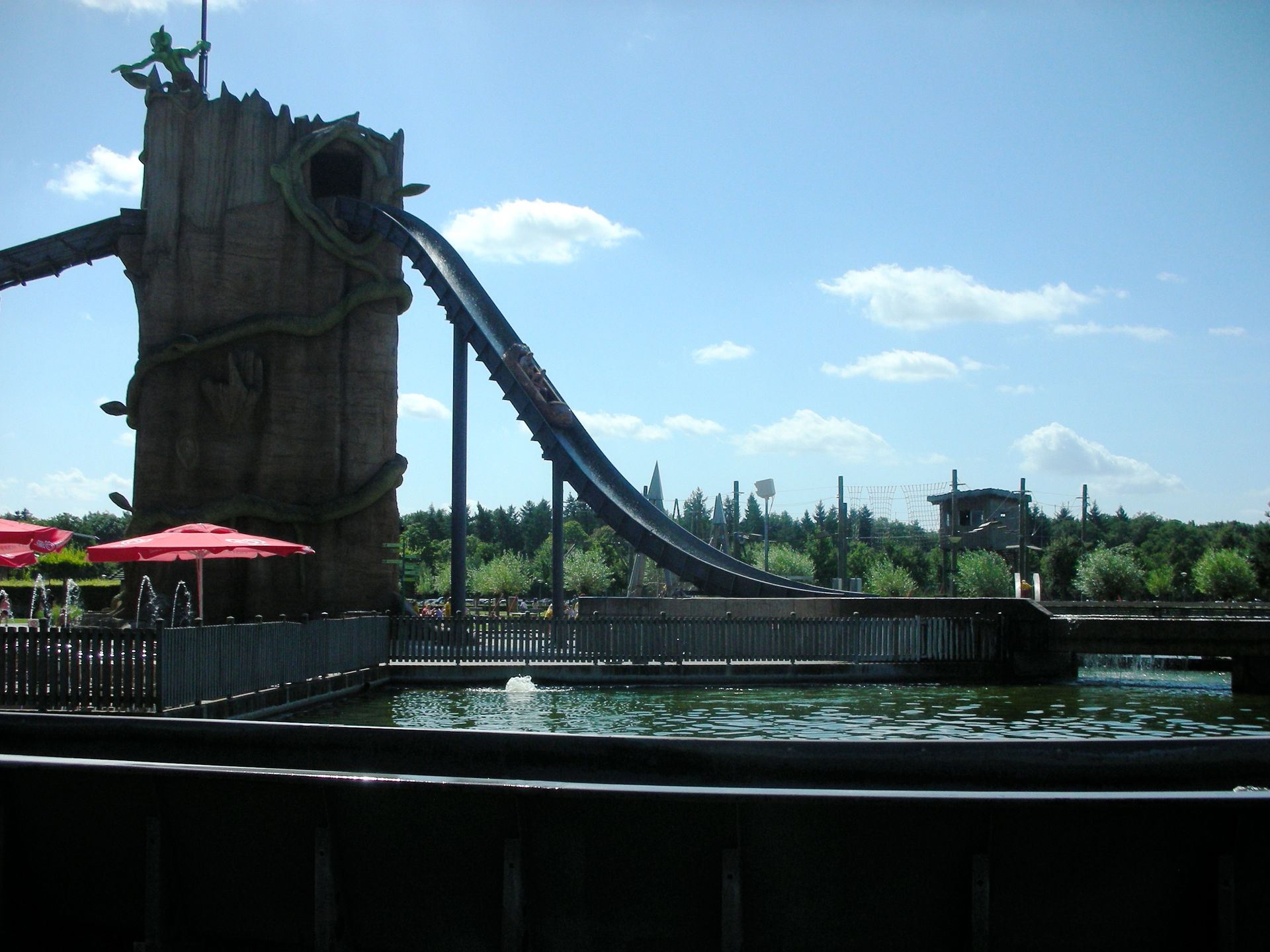 Weg von der Schlacht um Troja führten uns unsere Schritte zielsicher zur letzten außenvorstehenden Bahn im Toverland, der Wildwasserbahn Backstroke. Beginnend in der zweiten Halle dümpeln die Boote gemächlich den Wasserkanal entlang, ehe sie nach oben gezogen werden und die erste Abfahrt rückwärts absolvieren. Die kleine Besonderheit von Backstroke offenbart sich dann auf dem Weg zur großen Schussfahrt, während dem man in der Schräge des Lifts um 180° gedreht wird. Folglich darf man den Rest der Wildwasserbahn wieder vorwärts erleben, obgleich man daran kurz zweifelt, sobald sich im Inneren eines riesigen Baumstammes, der den Außenbereich des Toverlands schmückt, eine Drehplattform zu erkennen gibt. Aus diesem Baum stürzt man hinab ins tosende Nass, von dem wir allerdings nicht nennenswert viel zu spüren bekamen. Durch einige Kurven rudert man zurück in die Halle und damit auch unmittelbar zum Ausstieg. Sicherlich ist Backstroke nur eine unter vielen Wildwasserbahnen und hebt sich durch keine Eigenschaft nennenswert von der grauen Masse ab. Da sie aber durchgehend nett gestaltet ist und einfach ein wenig vom Charme des umliegenden Toverlands profitiert, ist sie durchaus eine Fahrt wert.