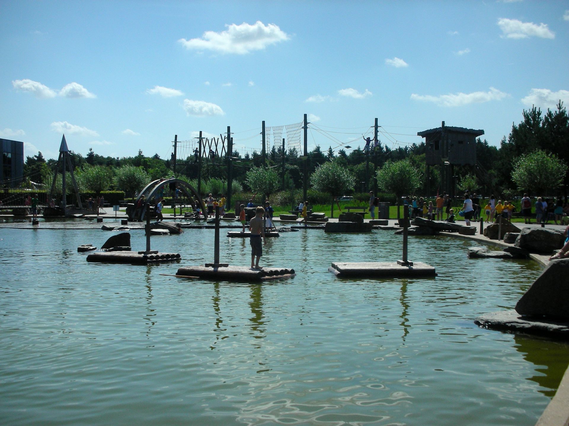 Im Außenbereich befindet sich ein Wasserspielplatz