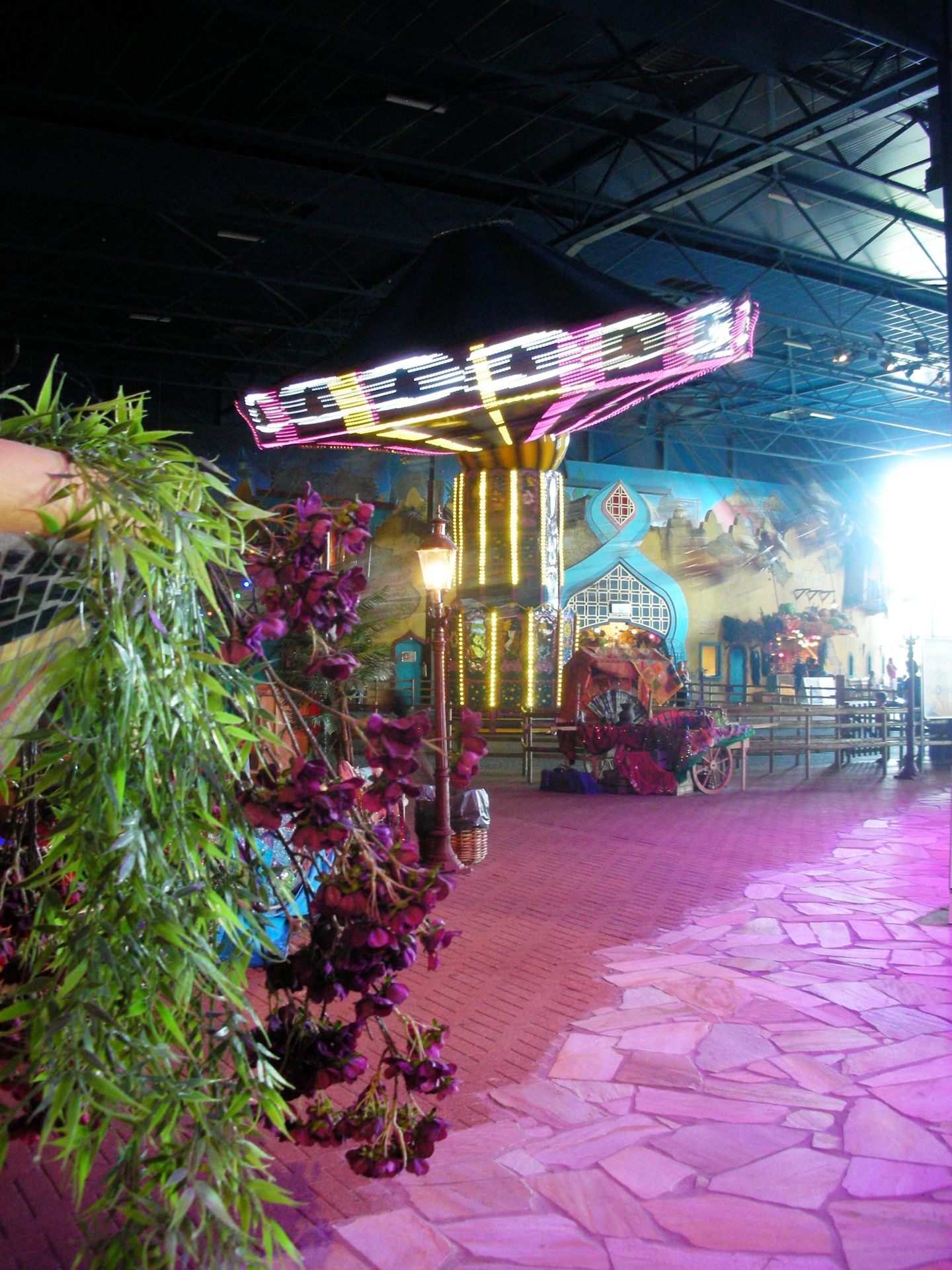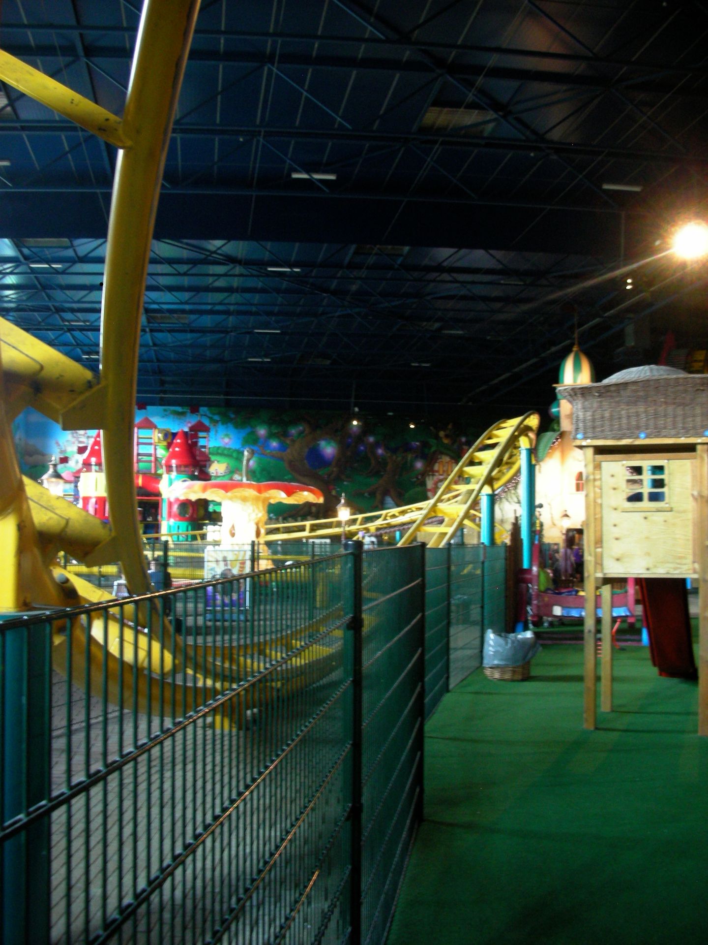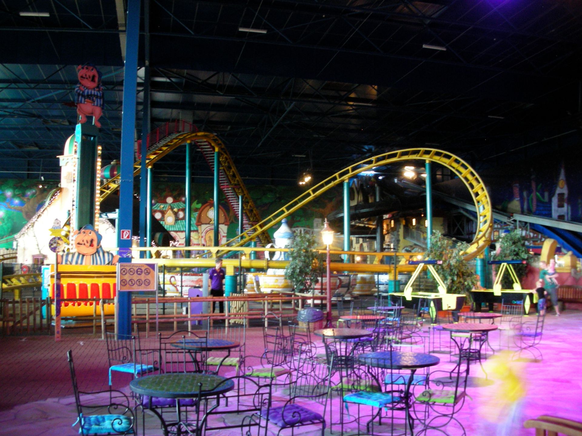 Boomerang zu, welcher das Bild der gesamten ersten Halle prägt. Die gelbe Kinderachterbahn von