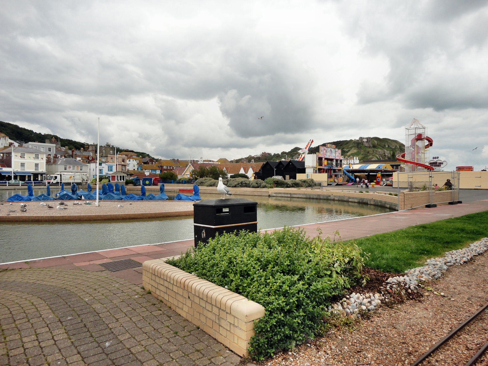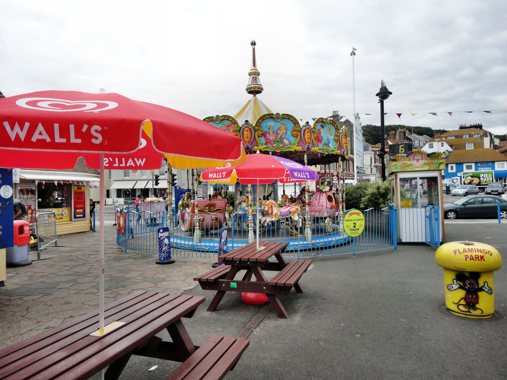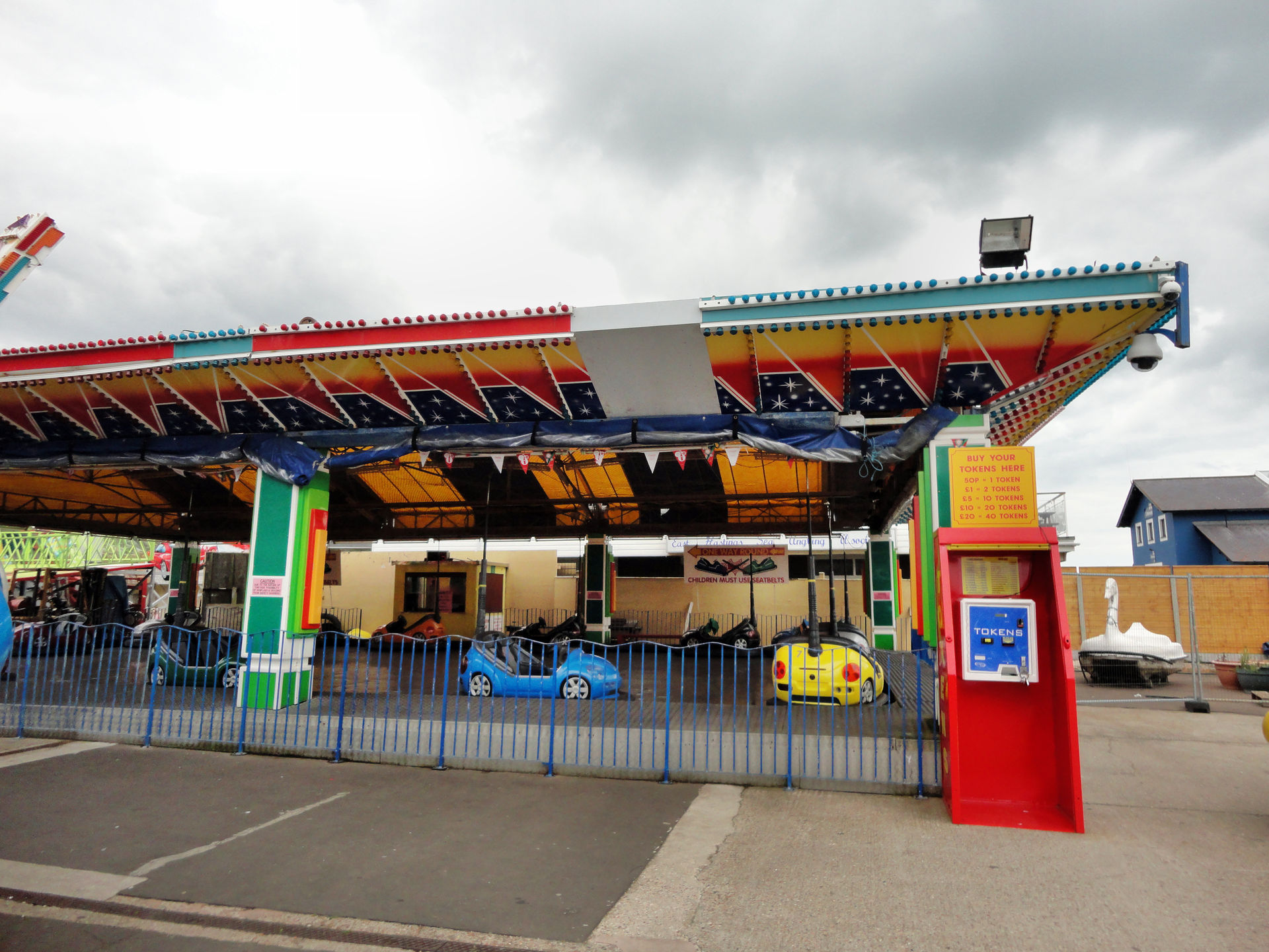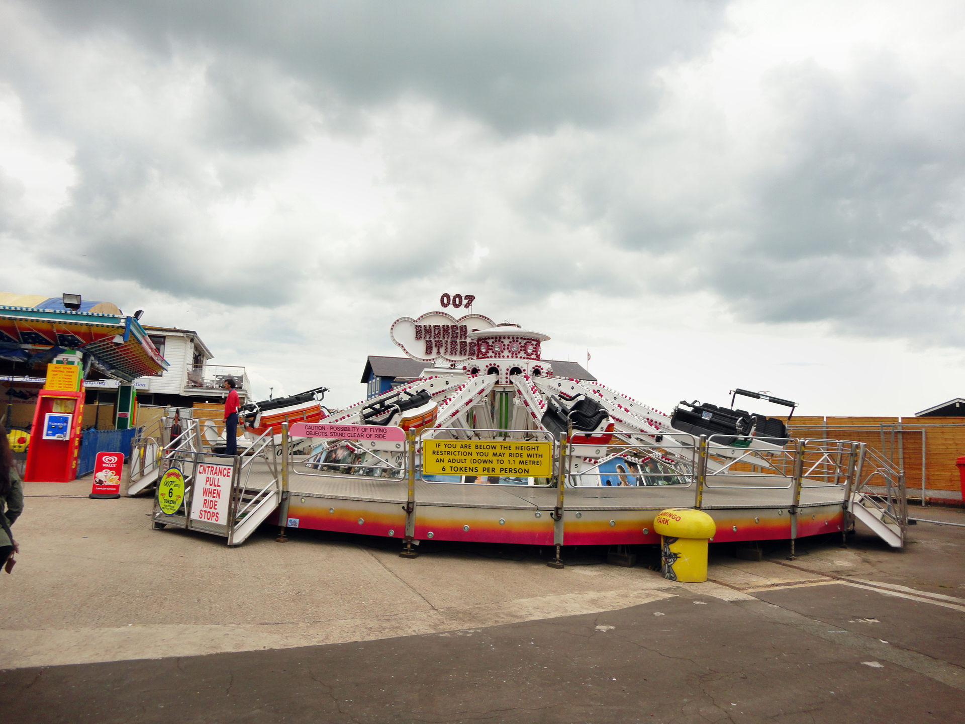 Genug der Einführung kommen wir langsam zum ersten Park. Zuerst stand der Flamingo Park in Hastings auf dem Programm. Der Park in Hastings ist ein direkt am Meer gelegener Luna Park. Freizugänglich und entspricht definitiv dem Klischee einer „Kleinen Dauerkirmes“. Laut Coaster Count sollte es hier einen Count geben, den wir vor Ort aber nicht entdeckten. Auf Nachfragen erfuhren wir, das er ende der „letzten Saison“ (=2011!) abgebaut würde. Die nächste Achterbahn stände in Brighton, dort sollen wir hinfahren. Das es nicht korrekt sei und in Eastbourne, was ungefähr die halbe Strecke ist, auch noch eine Bahn stände, hab ich mir dann verkniffen, dem Park Mitarbeiter zu erklären.