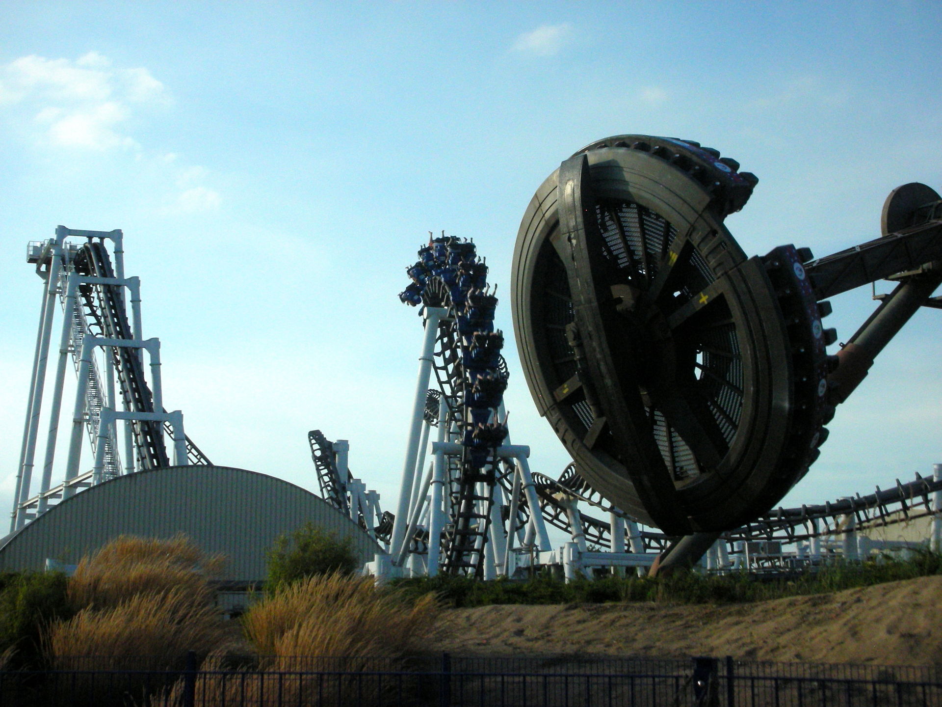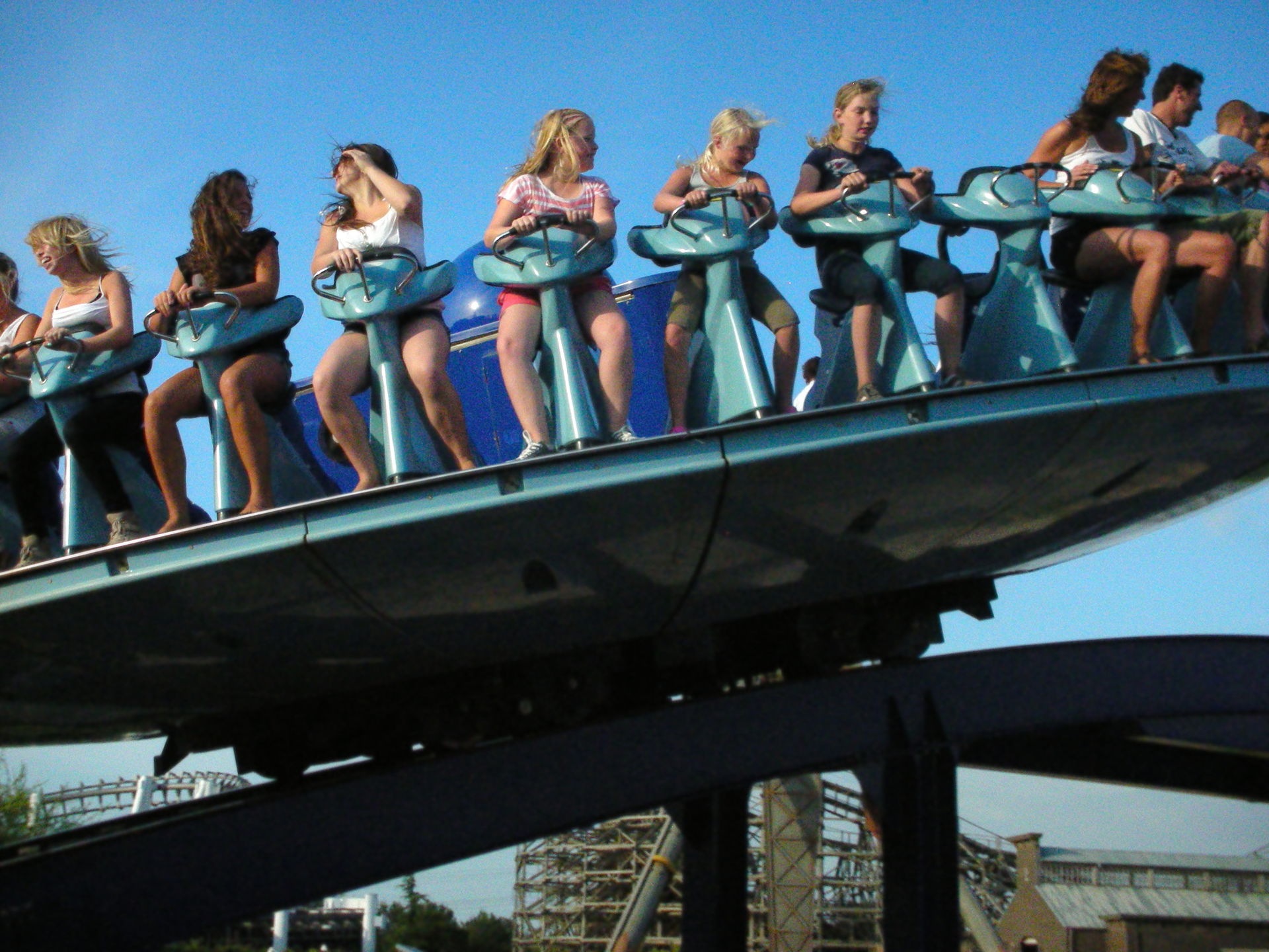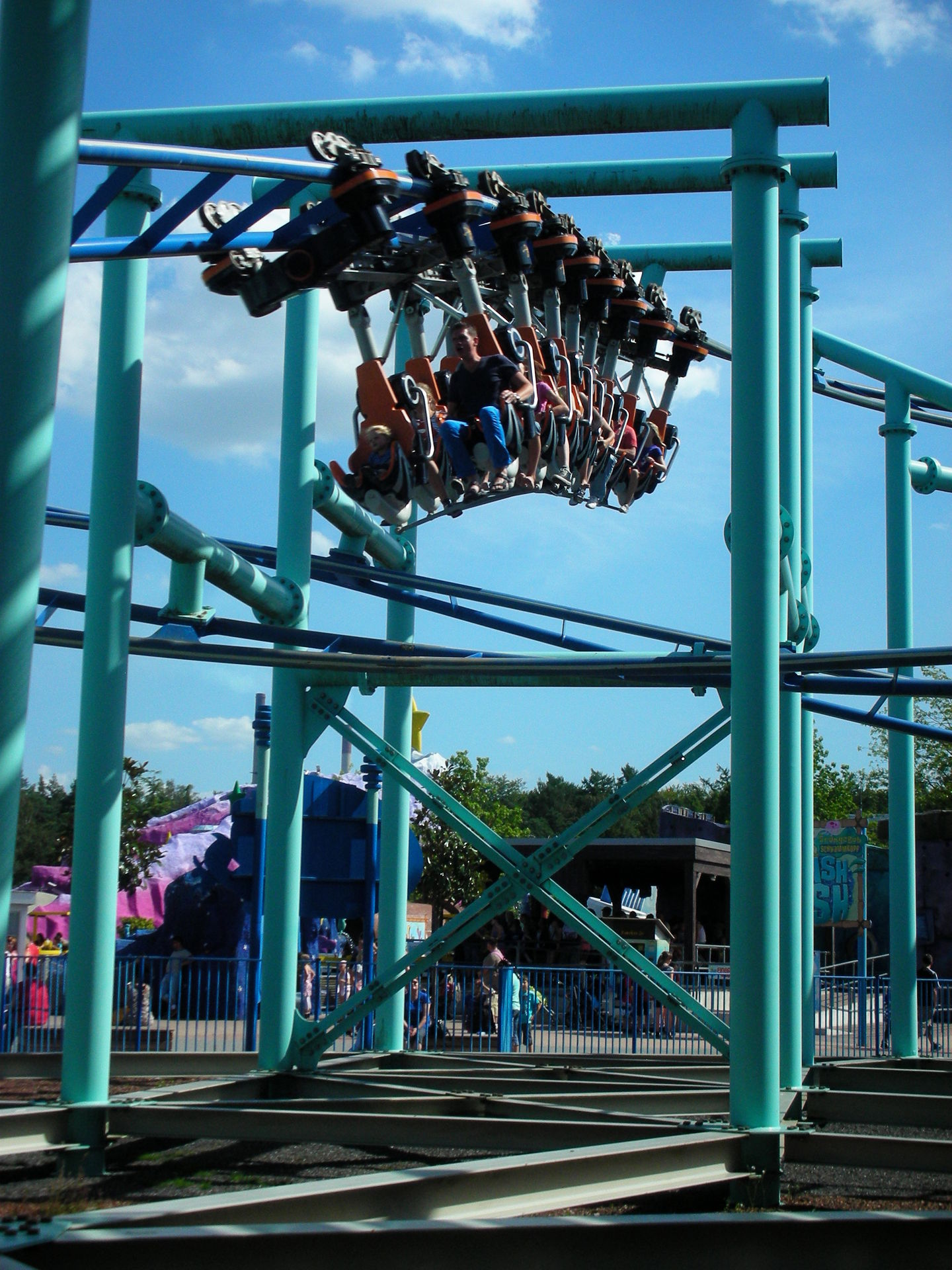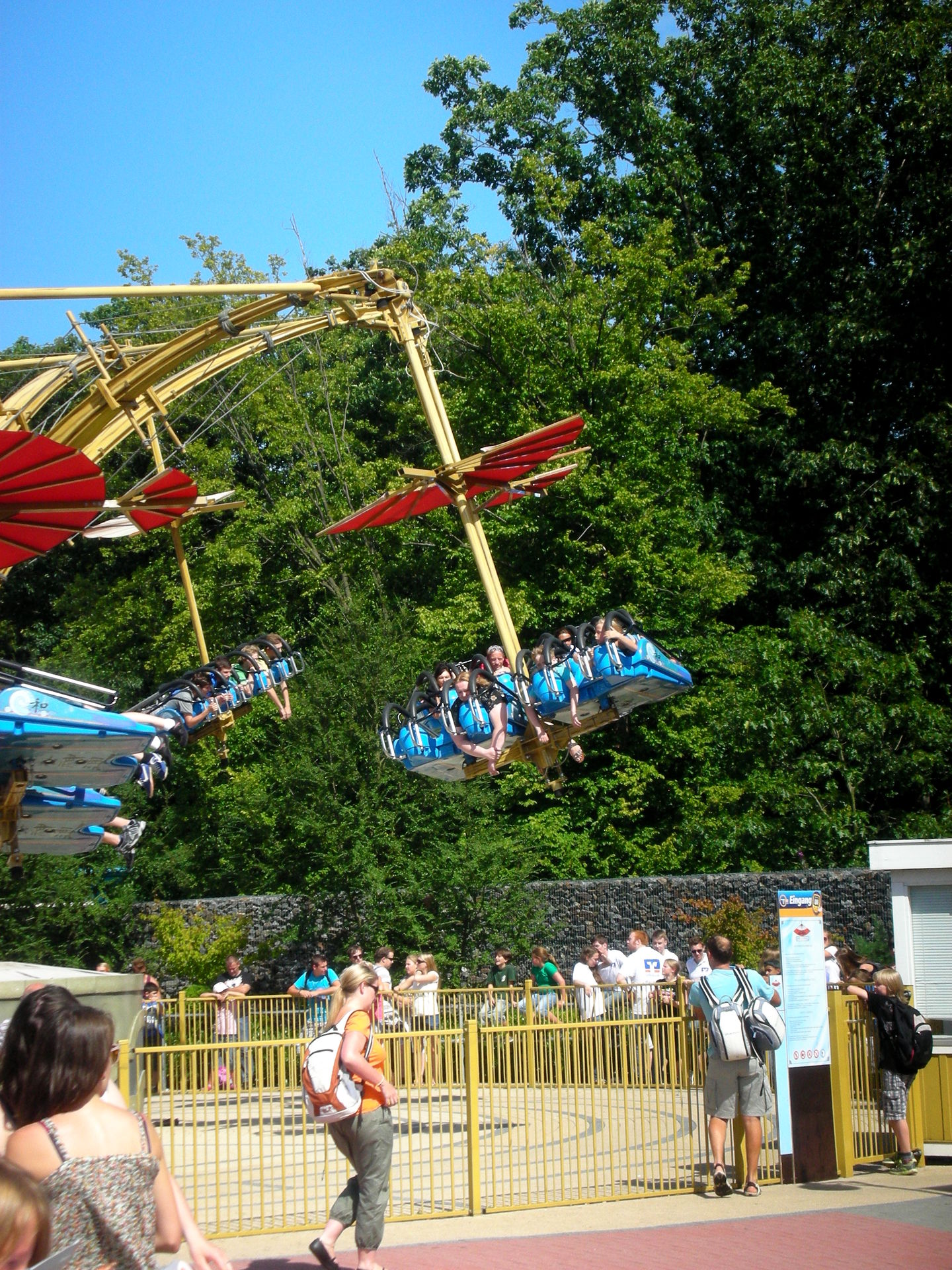 hart an der Grenze zum Sexismus und vom Kippen der Gondeln habe ich ehrlichgesagt nichts mitbekommen, obwohl ich mir davon doch so viel versprochen hatte. Dennoch war der Ausblick über den Park hinweg sehr lohnend, weil ich bis zu dieser Fahrt wirklich noch absolut kein Gespür dafür entwickeln konnte, wie sich die Attraktionen auf dem Parkgelände verteilen. Allerdings hätte dafür wohl auch ein kurzer Blick in die Parkkarte genügt...