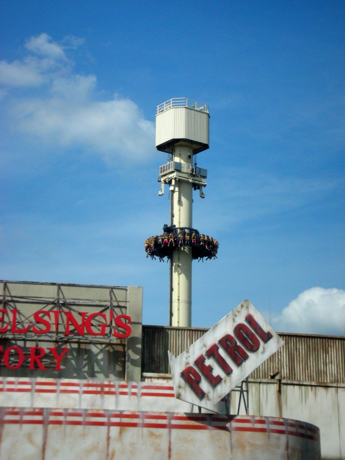 Intamin Tower keineswegs, wo wir doch schon Scream im Heide Park ausgelassen hatten. The High Fall ist ein wahrlich mickriges Türmchen, die Sitzgestaltung