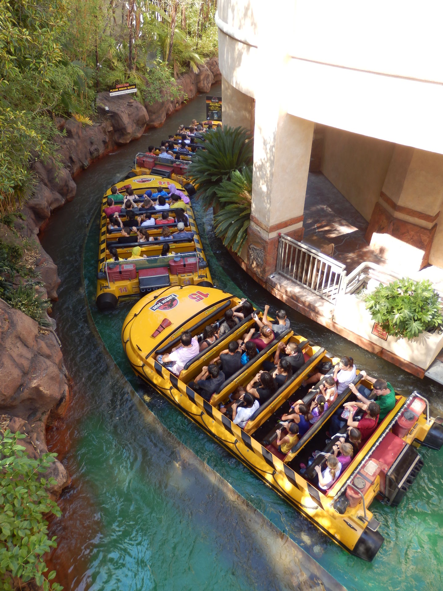 Bevor wir den Großraum Los Angeles verließen, galt es noch den Universal Studios Hollywood einen Besuch abzustatten. Da mir die Studios in Orlando bereits extrem gut gefallen haben, konnte sowieso nicht mehr viel schiefgehen. Auch wenn ich nicht so weit gehen würde, zu sagen, dass die Studios in LA schlechter sind als die in Orlando, so wirkt doch irgendwie alles auf engstem Raum zusammengequetscht. Der Walk of Lästigkeit hinunter zum Lower Lot bzw. nach oben zum Upper Lot teilt den Park in zwei Teile, wobei der untere mit Jurassic Park, Revenge of the Mummy und seit neuestem auch Transformers der klar aufregendere ist. Wenn wir schonmal hier unten sind, fangen wir doch auch gleich hier an, bevor wir uns wieder nach oben quälen müssen...