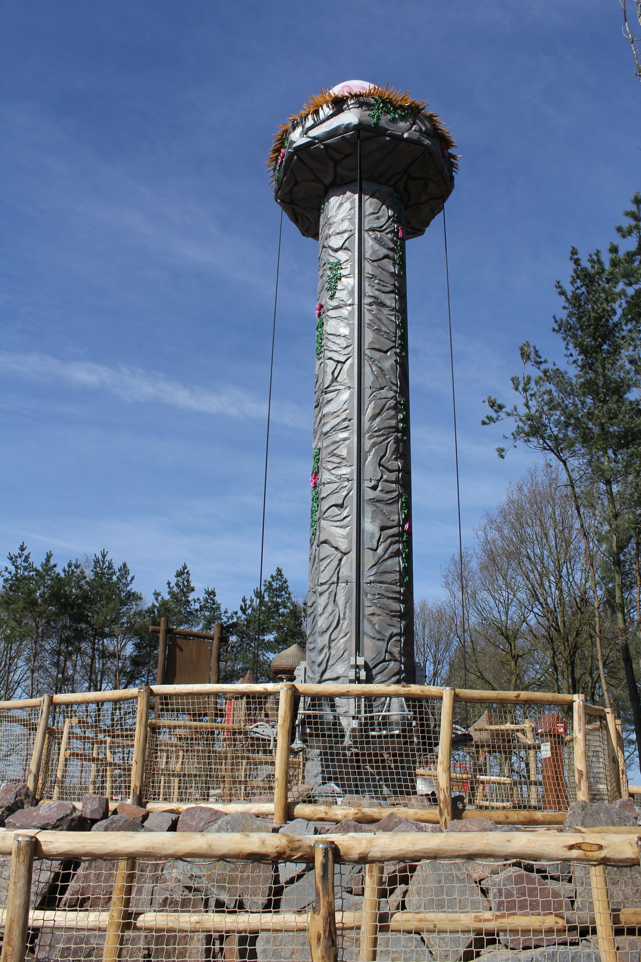 Wer den Vogel besuchern möchte, kann sich an den Seilen hinaufziehen