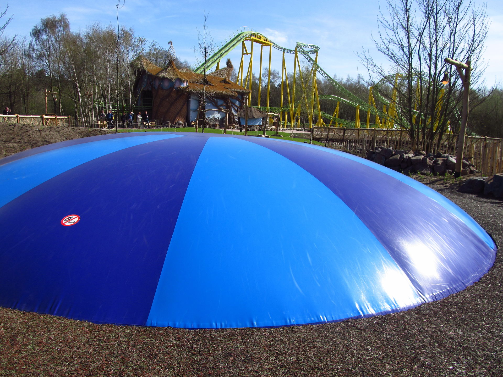 Das Airtrampoline lädt gegenüber zum Toben ein, egal ob Dwerfel oder Menschlein