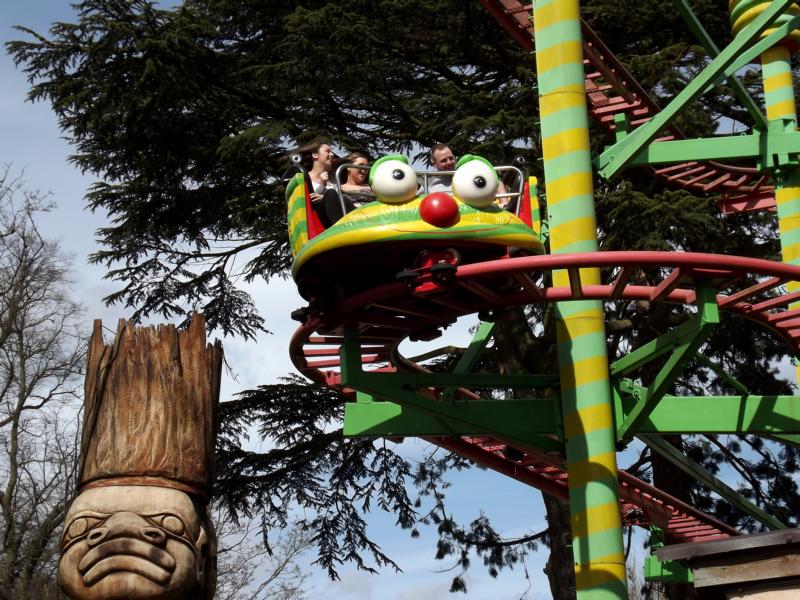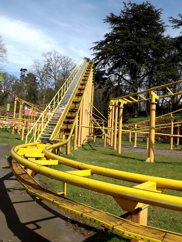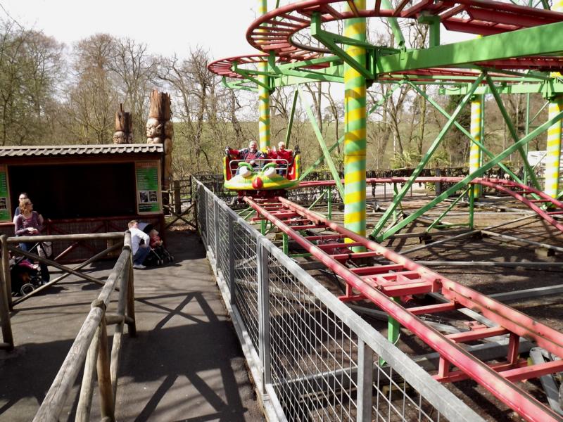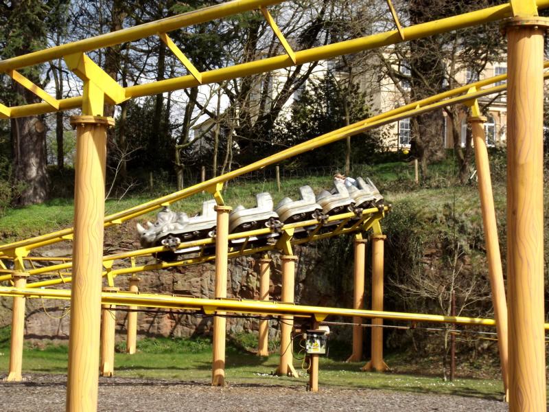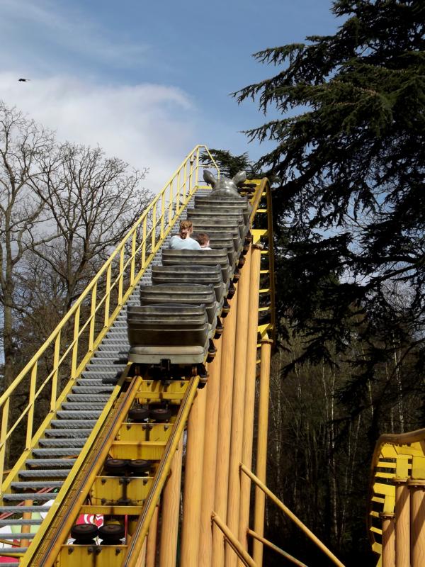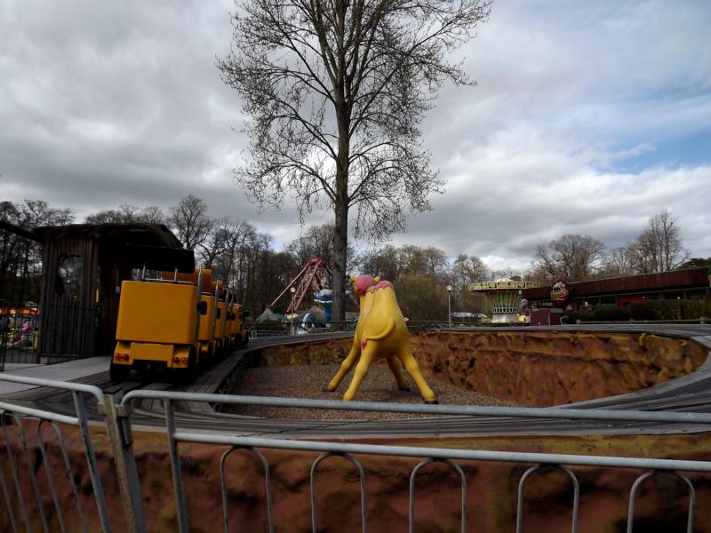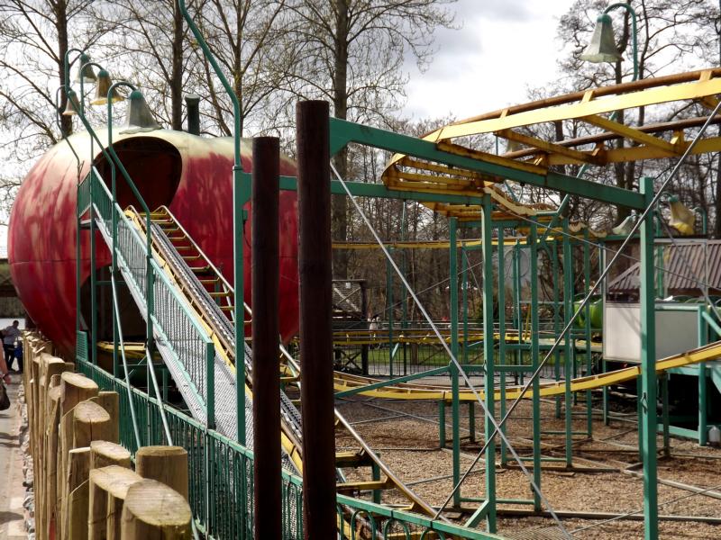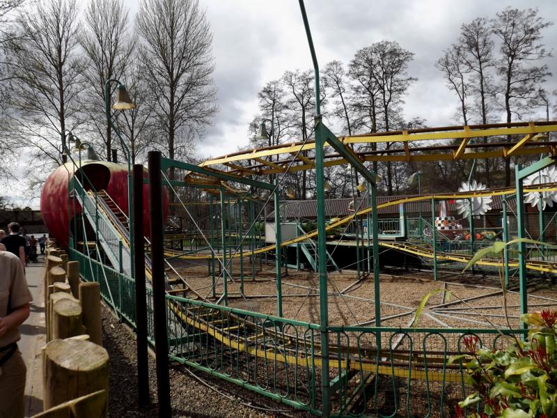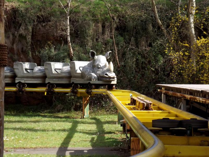 Vekoma Junior Coaster mit Nashorn Zug. Vormittags war die Bahn noch geschlossen und hat erst gegen 15 Uhr geöffnet. Aber immerhin hat sie geöffnet!