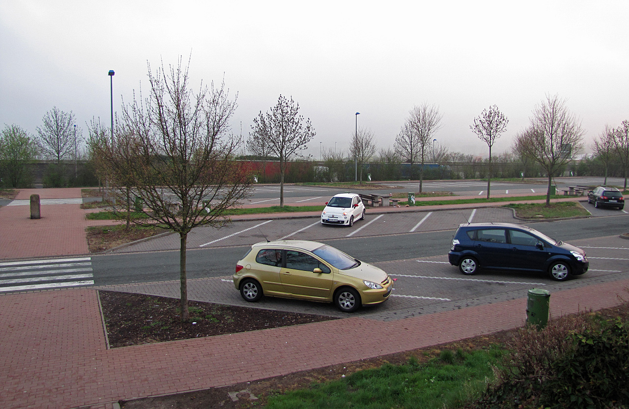 Kurze morgendliche Pause an der Autobahnraste.