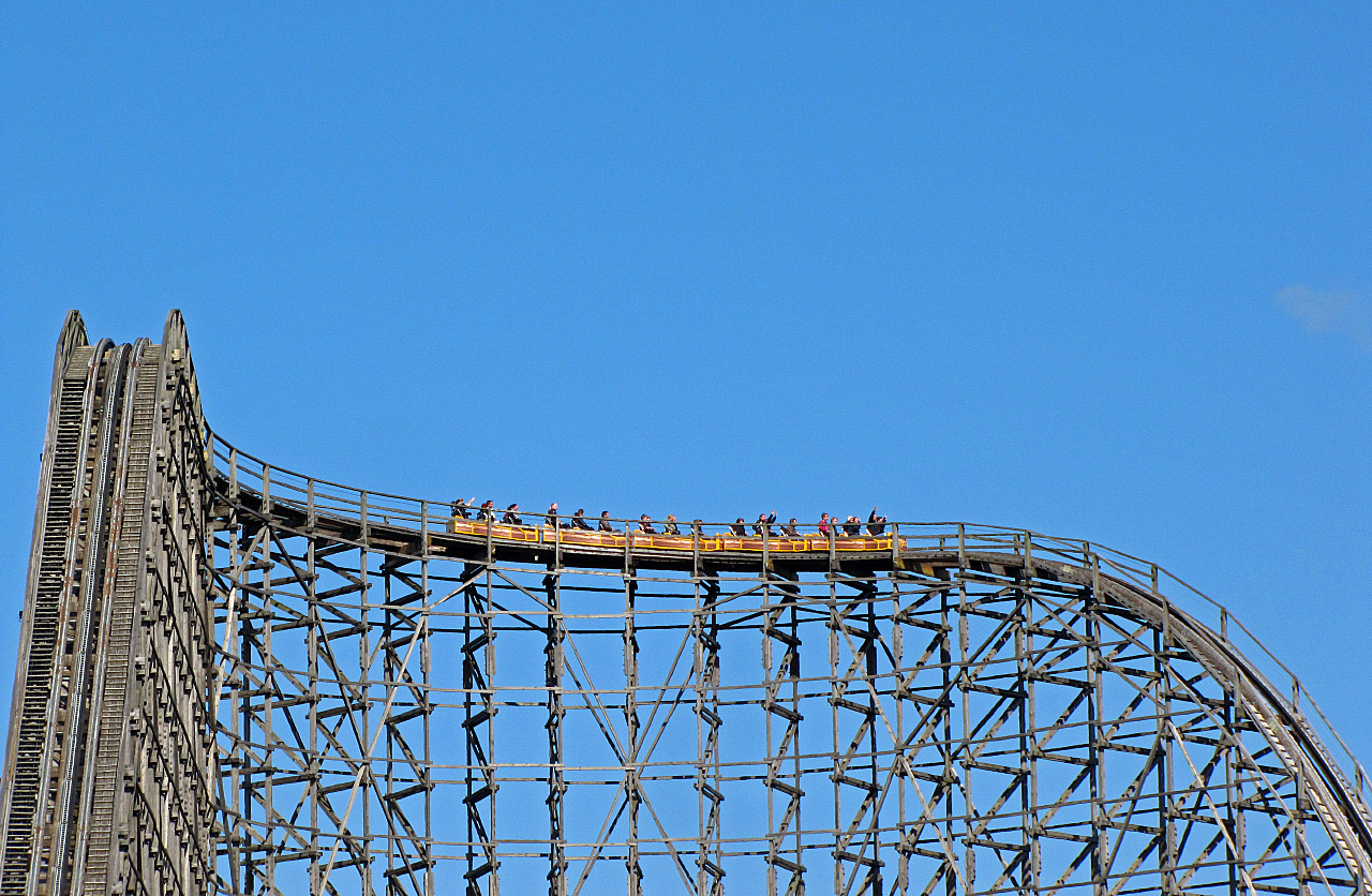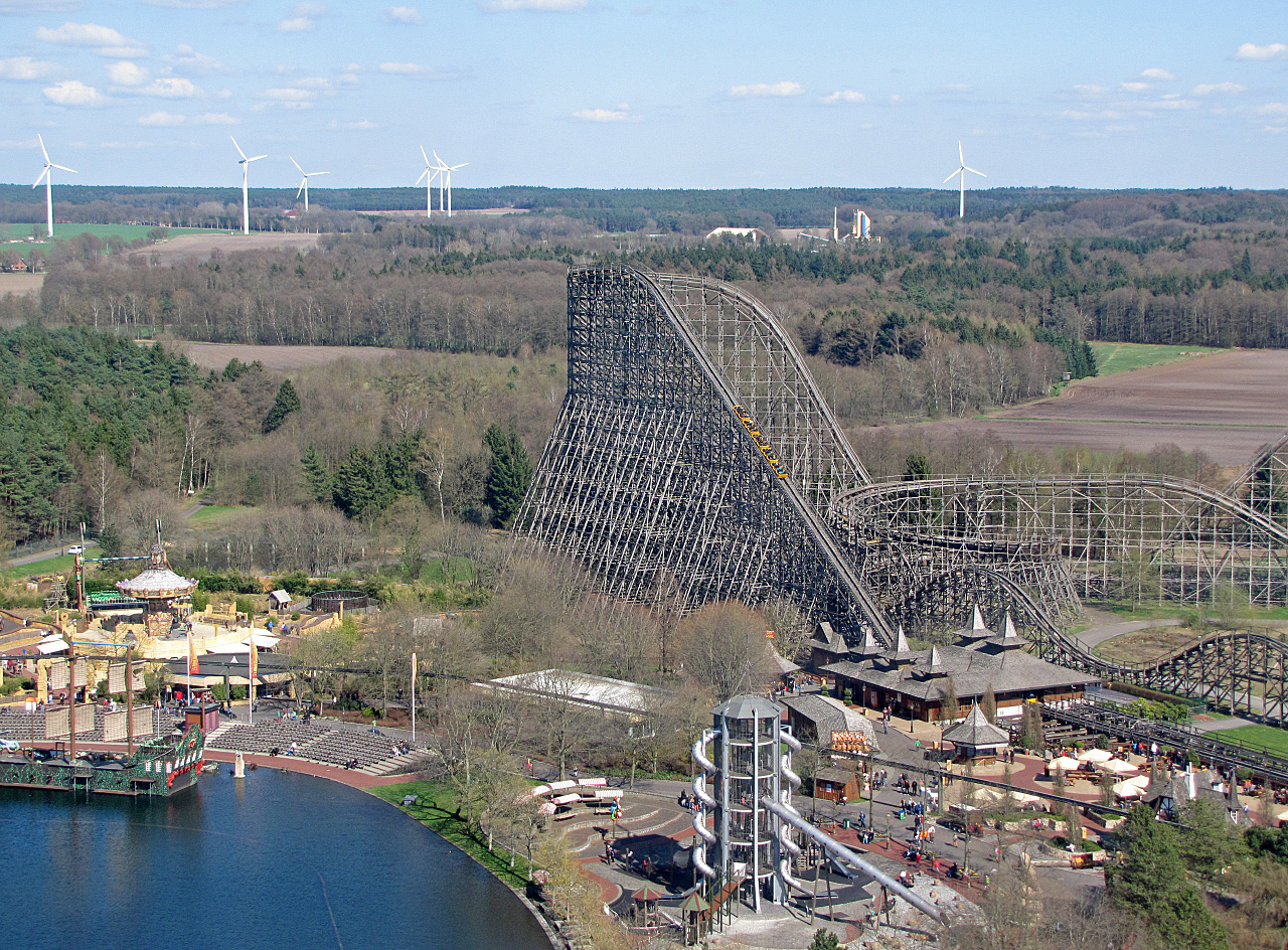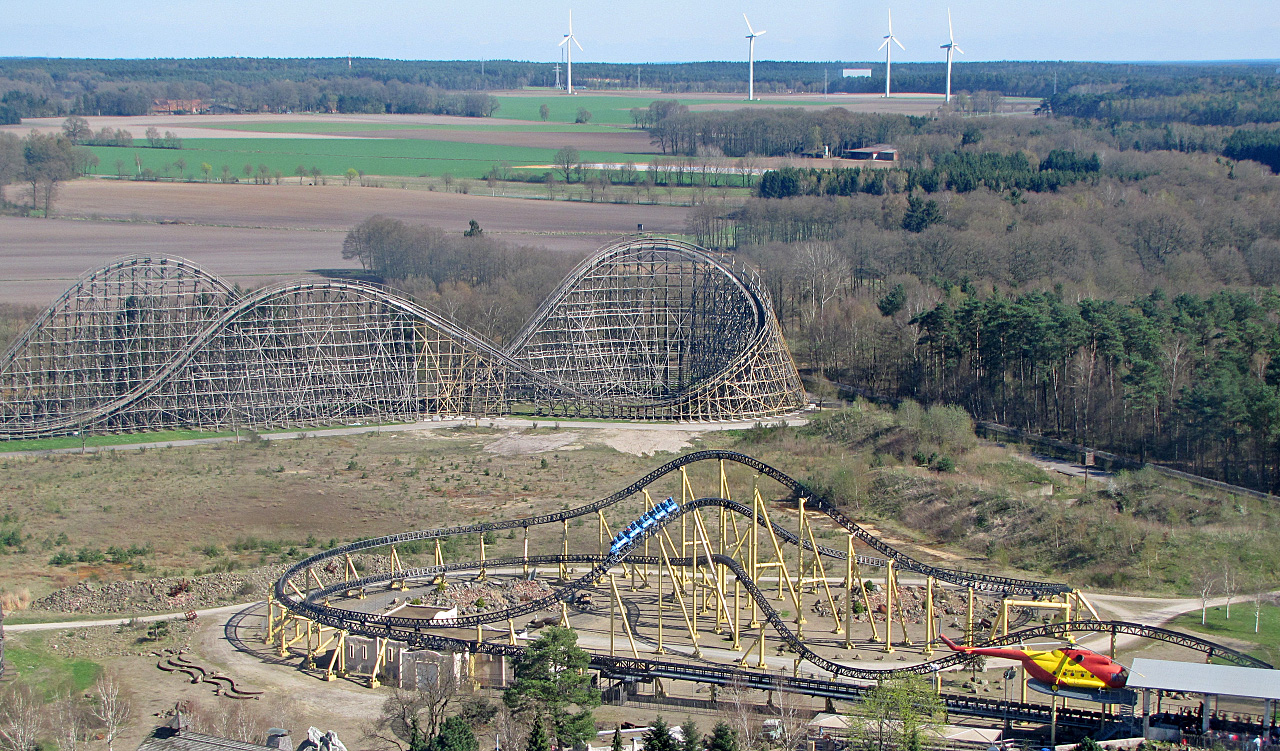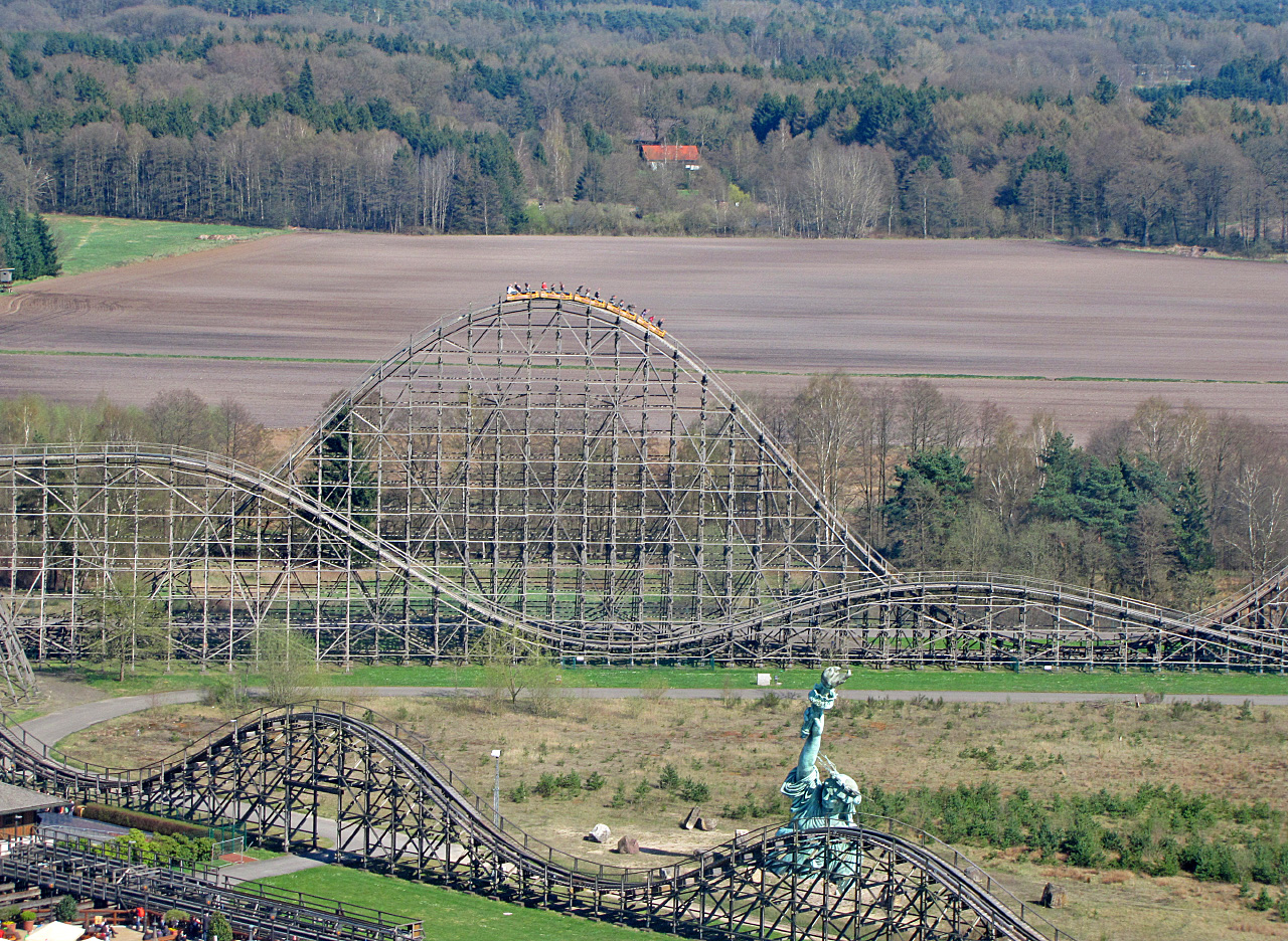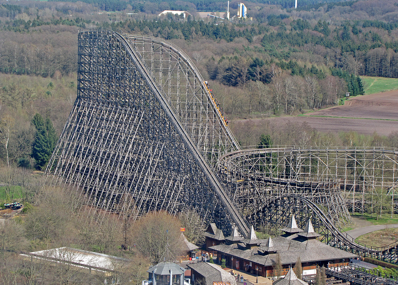 Aber warum wirbt man immer noch per Lautsprecherdurchsagen mit dem Slogan: "...die größte/höchste Holzachterbahn der Welt"? Ist fast genauso schlimm wie die ständige Kraken-Beschallung mit RTL-Sprecher (
