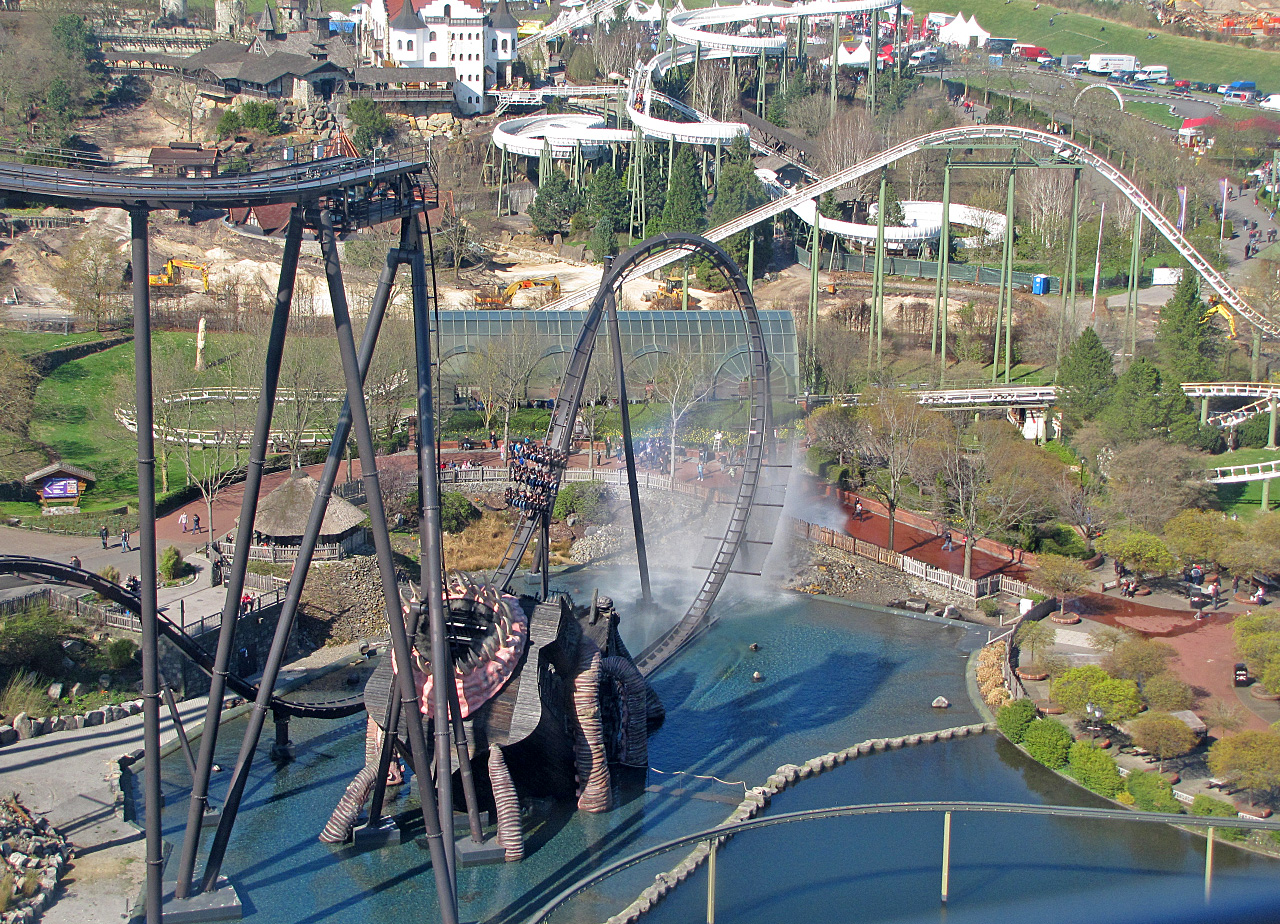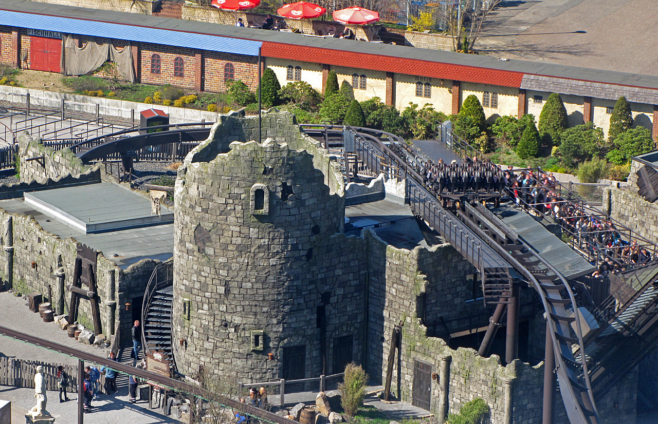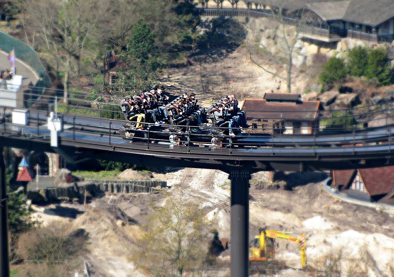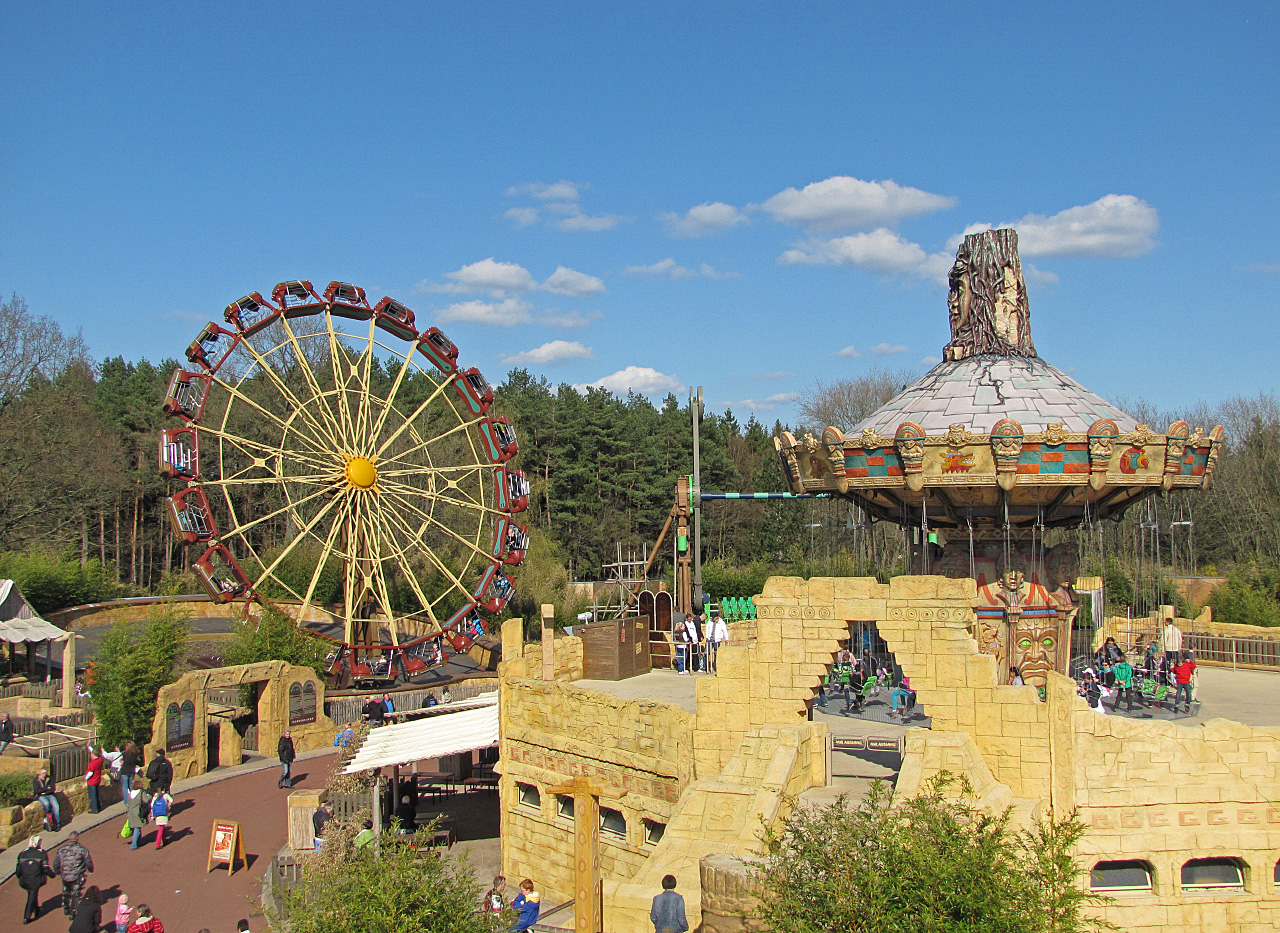 Laut diverser Quellen sollte der Park um 10.00 Uhr öffnen. Weil ich mir es schon dachte, wollte ich bereits gerne um 09.00 Uhr vor Ort sein. Und siehe da, am Park war schon eine Menge los. Das Heidedorf (oder was am Eingang davon übrig geblieben ist) mit den Shops und Snackbars war bereits geöffnet. Um kurz nach 10.00 Uhr waren dann eigentlich alle Coaster betriebsbereit. Gut. Denn ich hatte schon damit gerechnet, dass Merlin die Öffnungszeiten wieder nach hinten verschiebt, denn es war noch recht kühl.