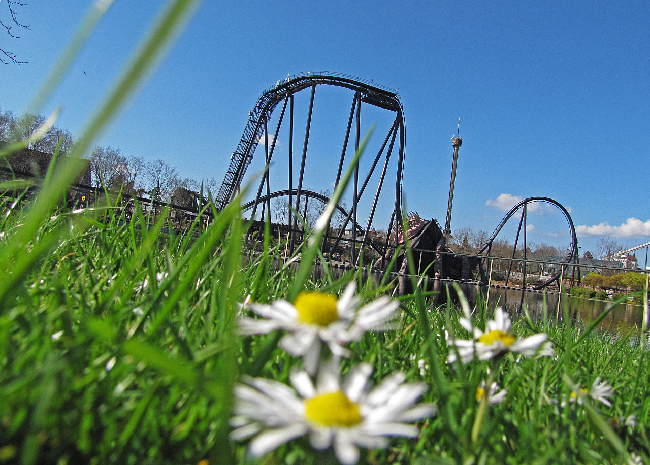 Vorweg der Hinweis, dass dies kein vollständiger Parkbericht ist, wo alle Fahrgeschäfte und Attraktionen ausführlichst beschrieben werden. Ich denke, das gab es hier schon genug und muss erstmal nicht wiederholt werden. Außerdem biete ich keine genauen Fotos über neue Entwicklungen im Park, etwa über den Abriss der Wildwasserbahn (neue Achterbahn 2014?). Ich habe eigentlich eher wahllos Fotos gemacht und sonst eher den schönen Tag genossen. Zumindest kommentieren werde ich die Bilchens.
