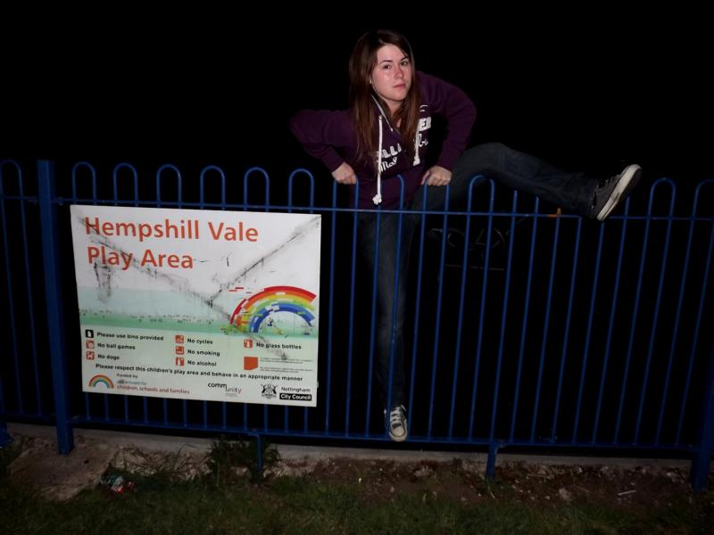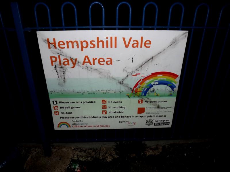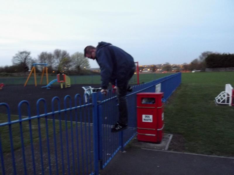Der nächste Spielplatz steht in einem Siedlungsgebiet und heißt “Hempshill Vale Play Area”. Es war ja fast zu erwarten, dass die Spielplätze nachts schließen, aber das es dann wirklich so war… naja. Kann man nichts machen, da muss man halt ein bisschen klettern!