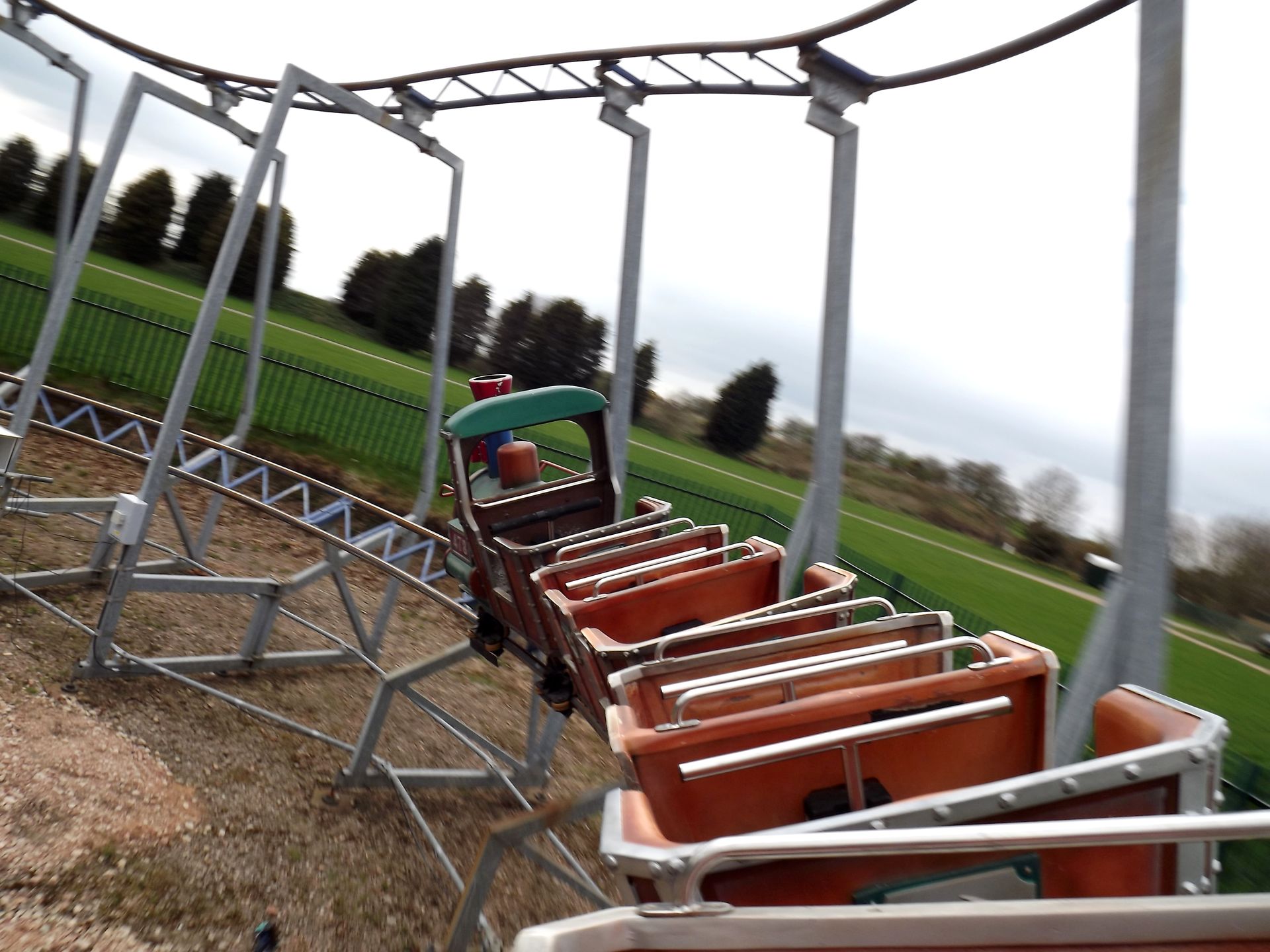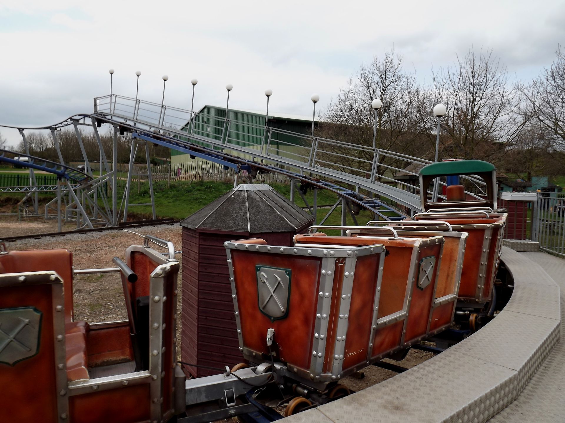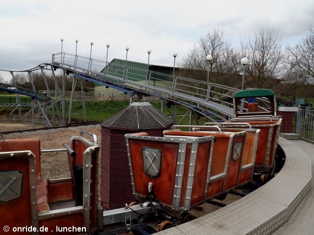 Der Operator der krüppeligen Bahn kam uns gerade entgegen und wollte Pause machen, musste die Bahn aber extra für uns wieder anschmeißen. Die Bahn heißt High Hazel Mini Mine Coaster und ist von L&T Systems.