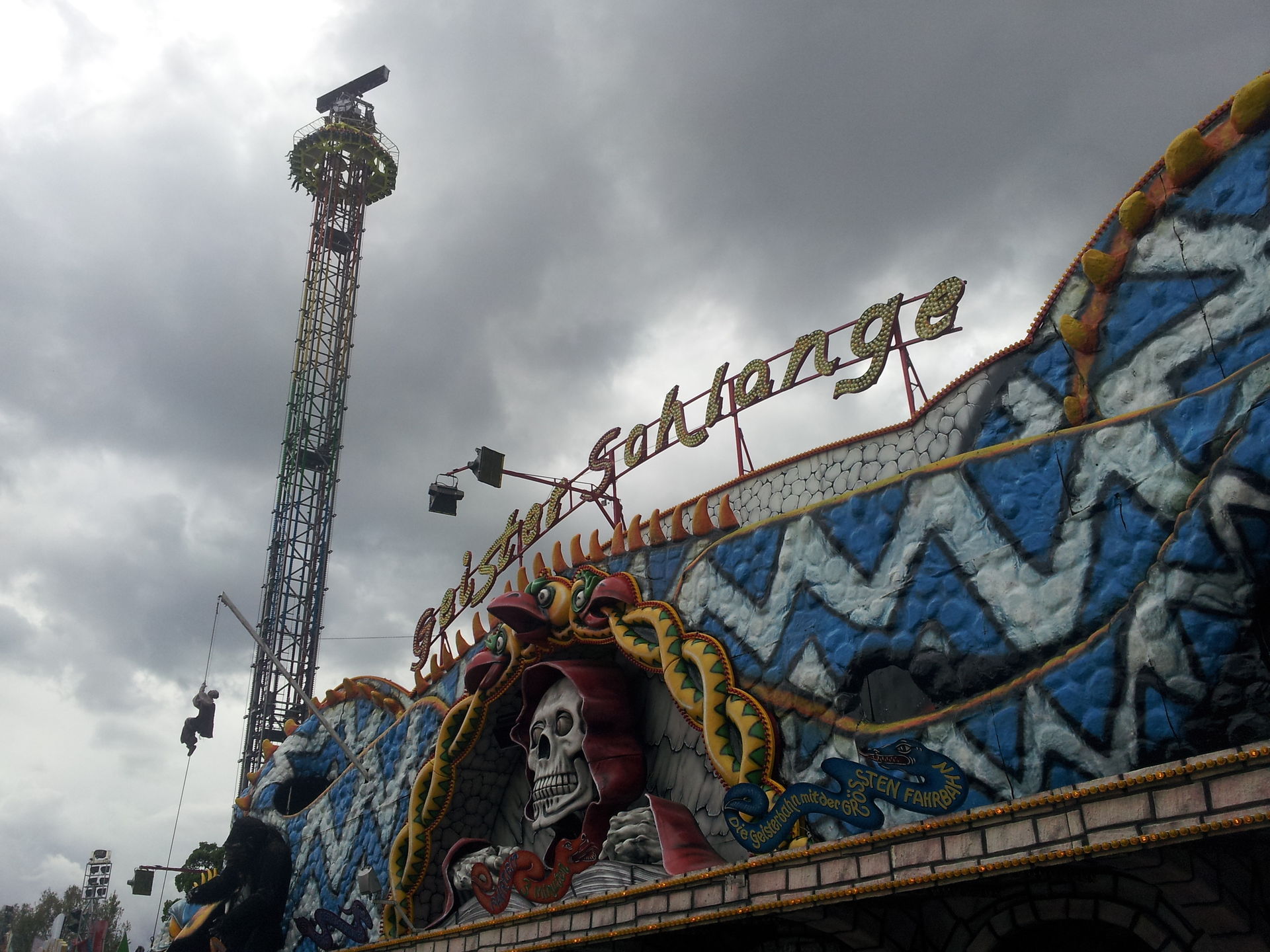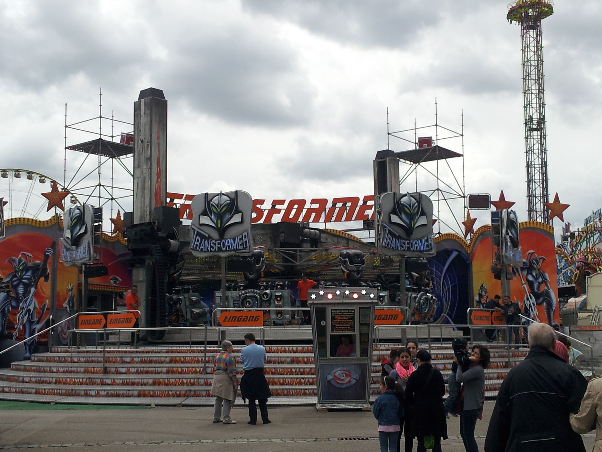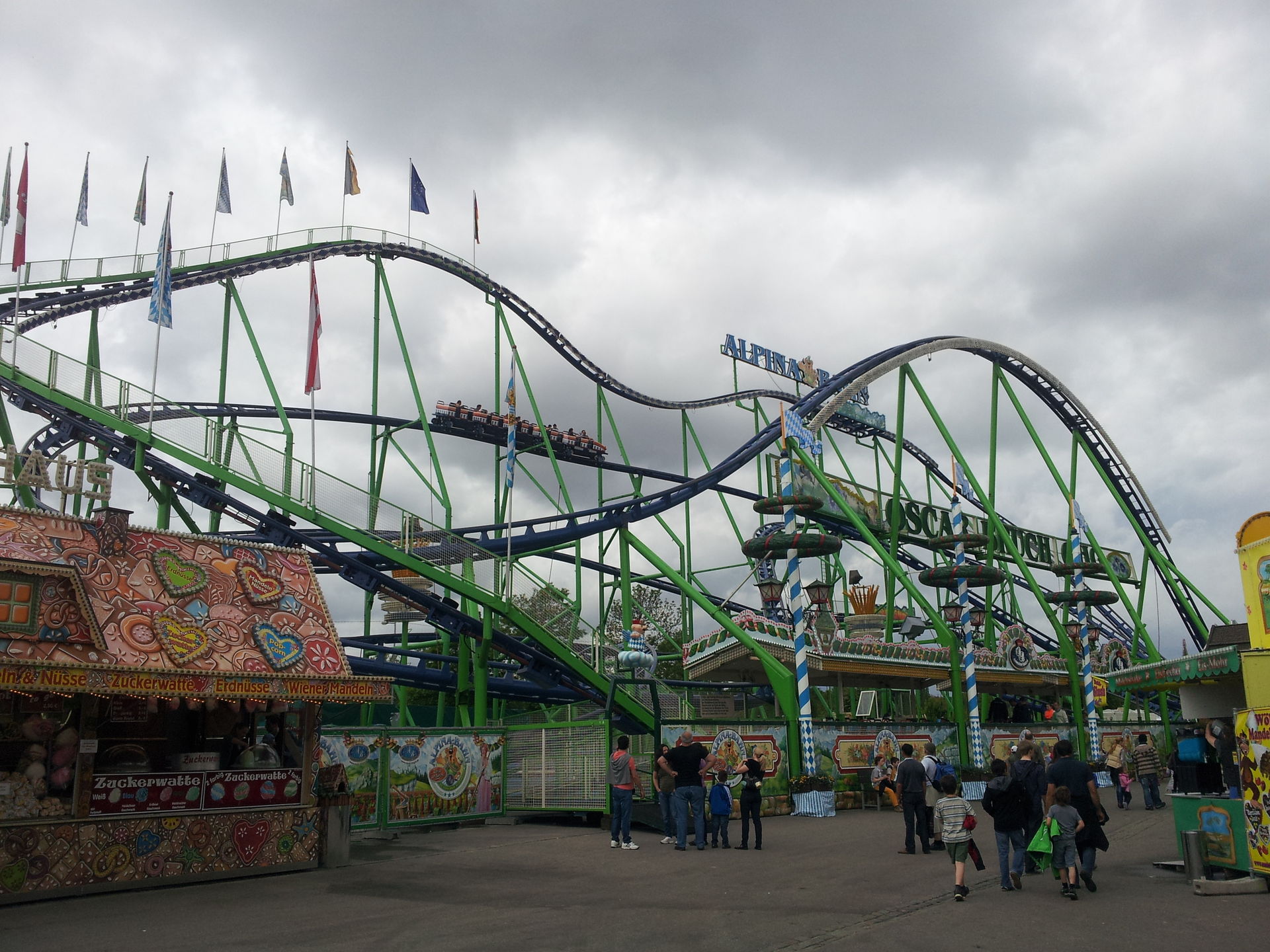 Während Martin, Julian und Markus für eine Kinderachterbahn Frankenthal ansteuerten, ging es für mich mit der Bahn nach Stuttgart. Und pünktlich um 11:21 Uhr konnte ich - gemeinsam mit der teils mehr, teils weniger betrunkenen Menschenmasse - gen Festplatz marschieren. Dort dauerte es ein wenig, bis ich endlich die Alpina Bahn erreichte, wo RickLip bereits auf mich wartete. Wir fackelten natürlich nicht lange und eröffneten den Tag mit einer Runde auf der alten Schwarzkopf-Dame - wobei "wir" eigentlich nicht ganz stimmt, denn Patrick war ja schon länger dort und hatte bereits eine (enttäuschende) Fahrt auf The King hinter sich.