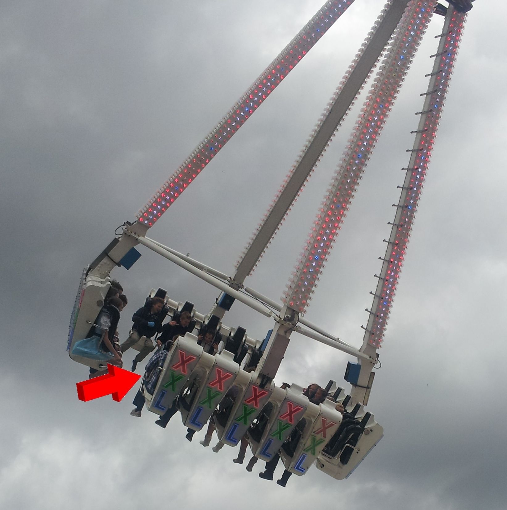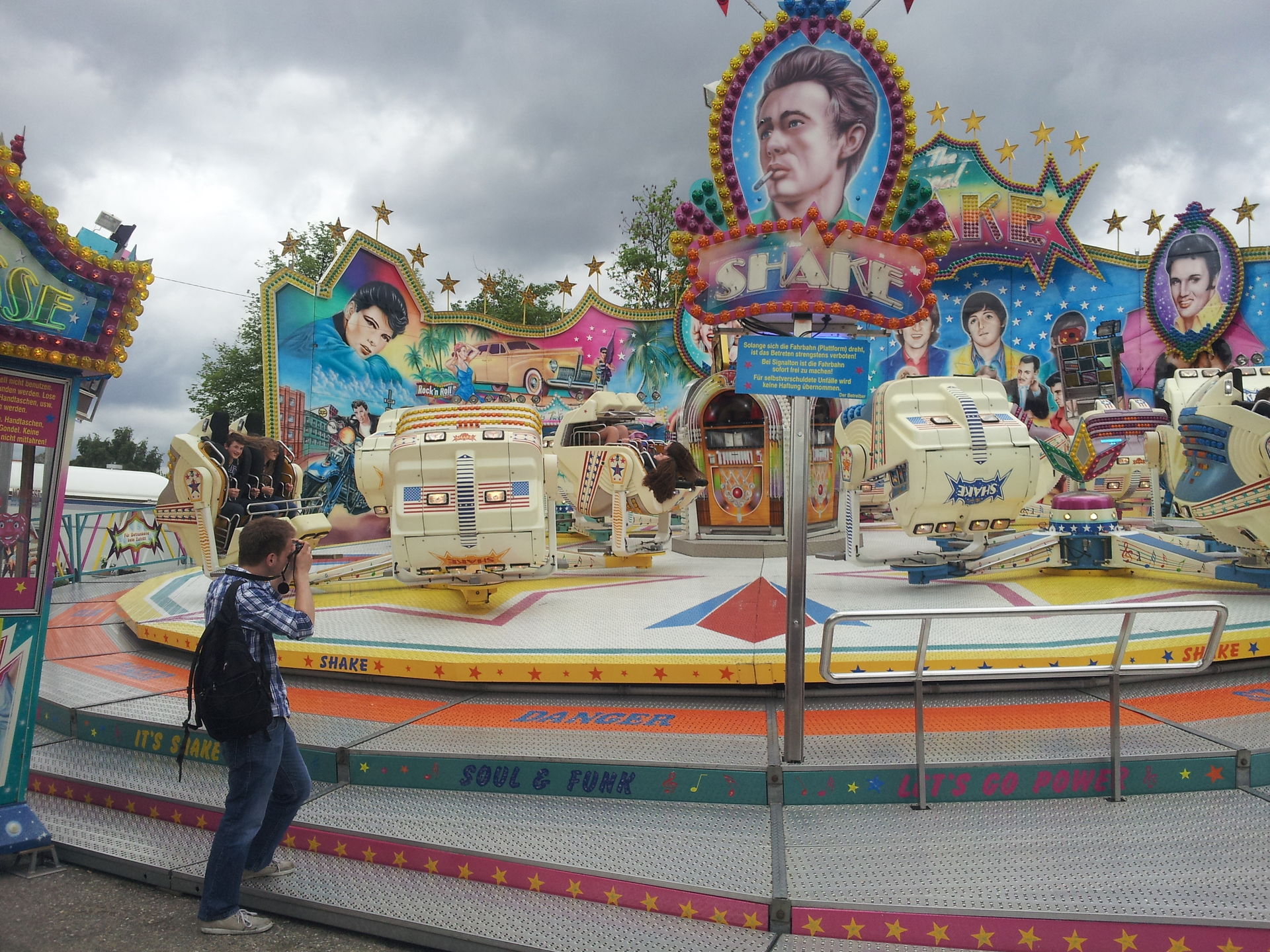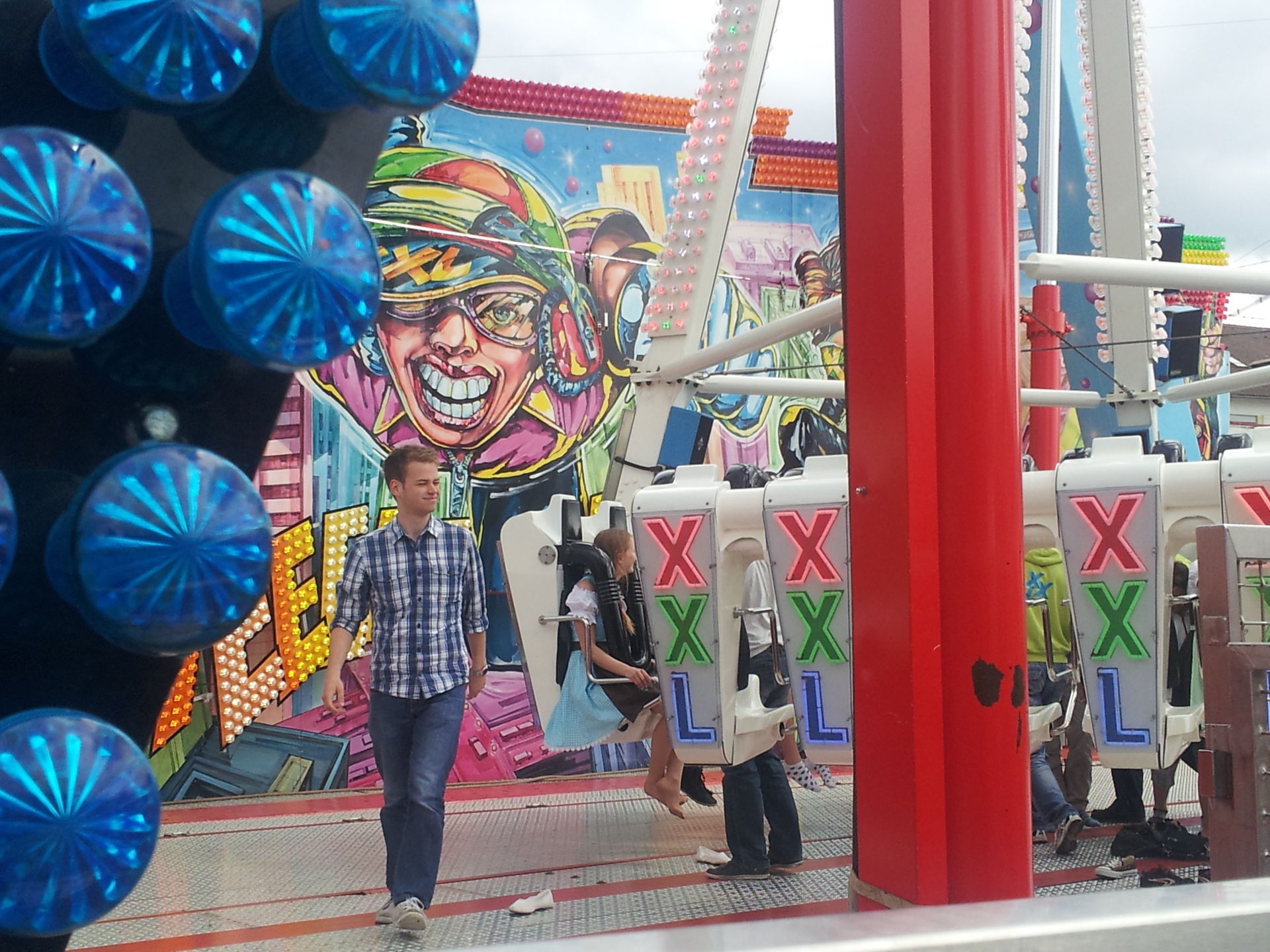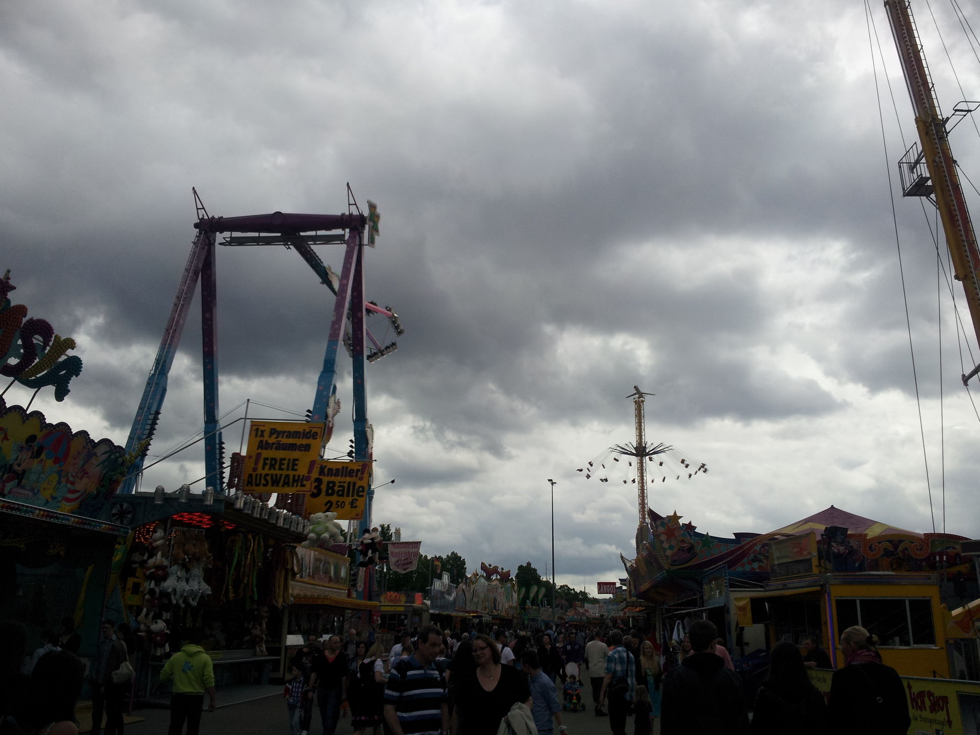 Während Martin, Julian und Markus für eine Kinderachterbahn Frankenthal ansteuerten, ging es für mich mit der Bahn nach Stuttgart. Und pünktlich um 11:21 Uhr konnte ich - gemeinsam mit der teils mehr, teils weniger betrunkenen Menschenmasse - gen Festplatz marschieren. Dort dauerte es ein wenig, bis ich endlich die Alpina Bahn erreichte, wo RickLip bereits auf mich wartete. Wir fackelten natürlich nicht lange und eröffneten den Tag mit einer Runde auf der alten Schwarzkopf-Dame - wobei "wir" eigentlich nicht ganz stimmt, denn Patrick war ja schon länger dort und hatte bereits eine (enttäuschende) Fahrt auf The King hinter sich.