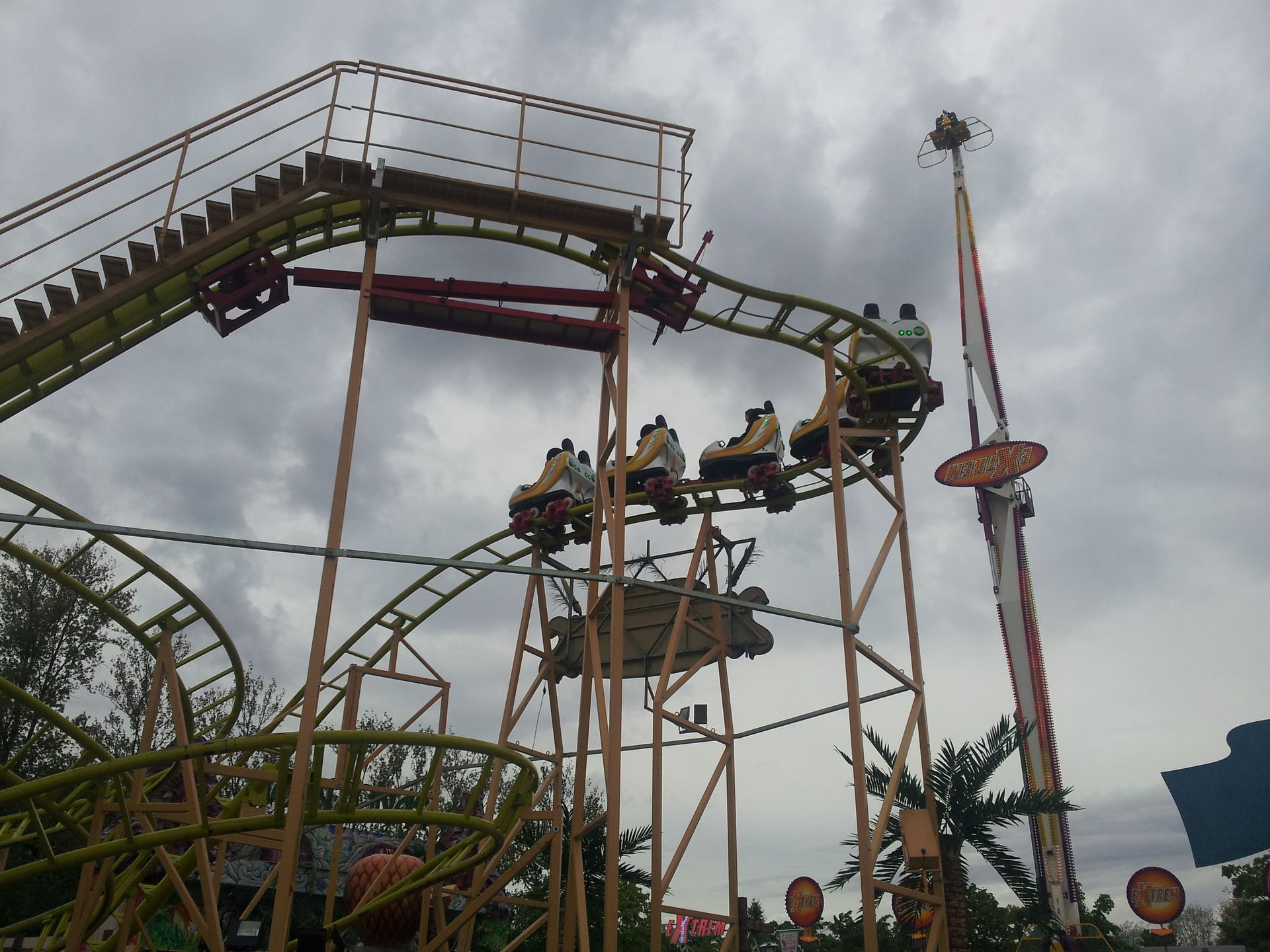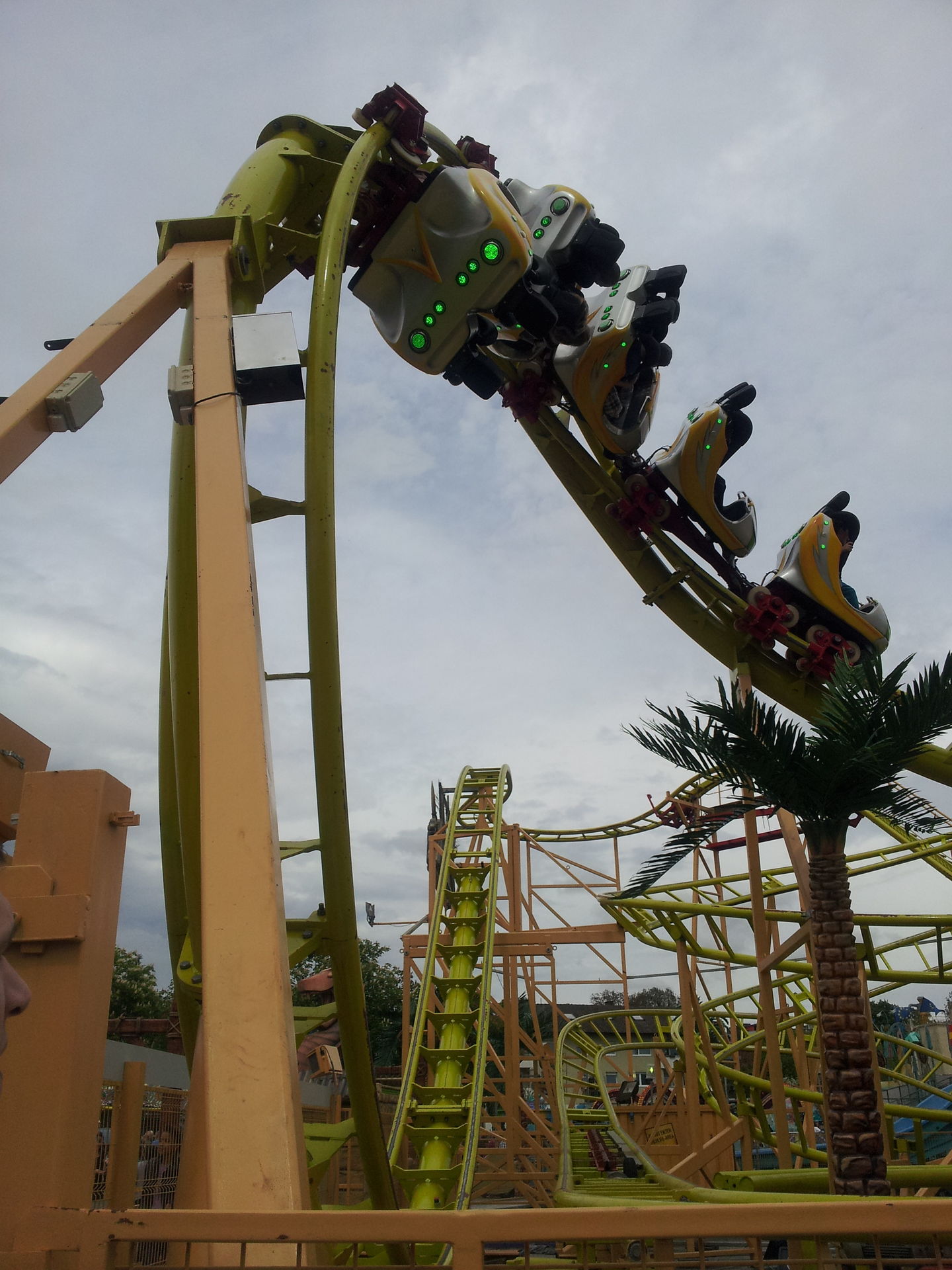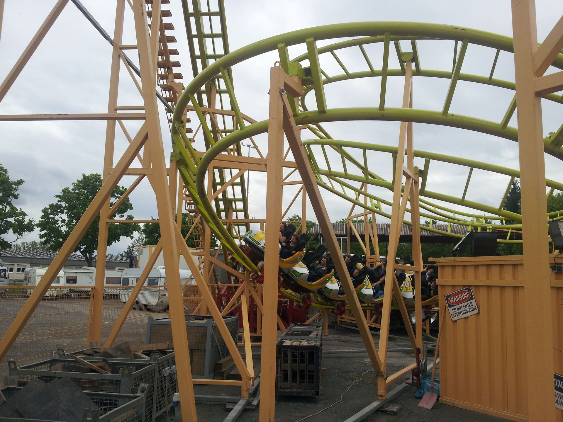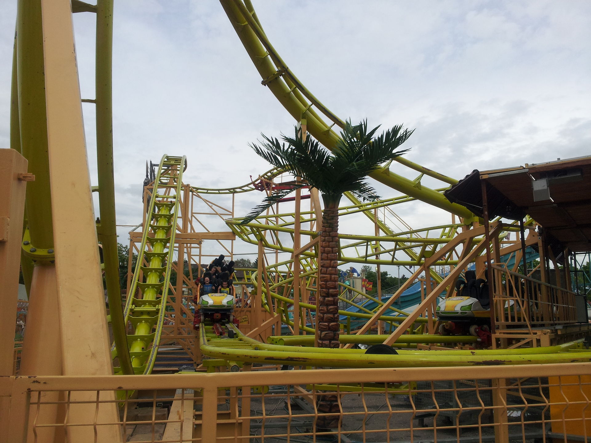 In Sinsheim hat man allerdings nicht die volle Thematisierung aufgebaut. Teilweise lagen noch Palmen und andere Dinge hinter und unter der Bahn.