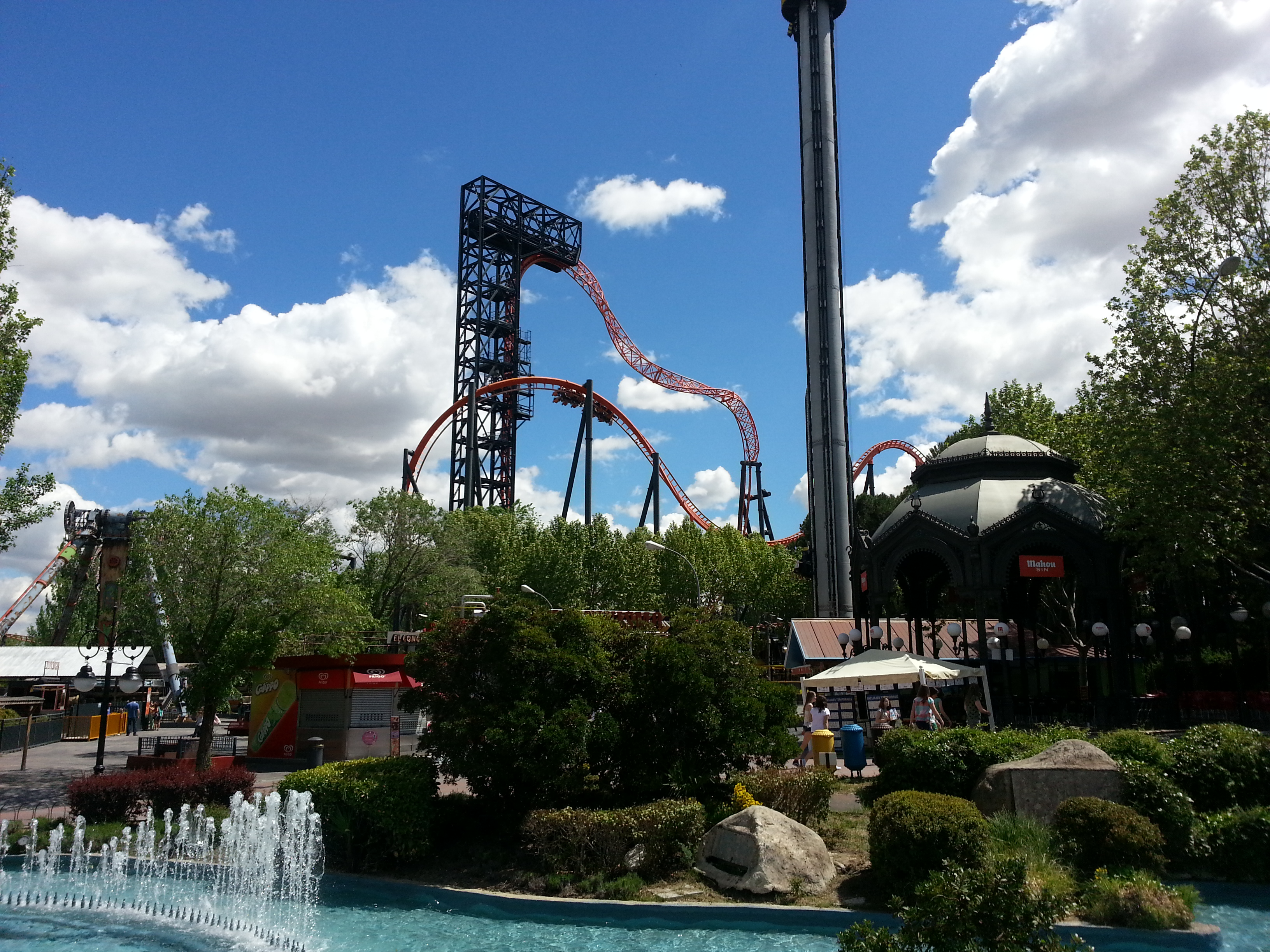 So dann fange ich auch endlich mal an ein paar Worte und Bilder zu der gesamten Tour beizusteuern. Heute ging es also für die gesamte Truppe zum ersten Park der Tour nämlich den sehr zentral gelegenen Parque de Atracciones de Madrid, welcher an diesem Tag von 12 bis 20 Uhr geöffnet hatte. Ich habe mich sehr auf diesen Park gefreut, weil hier mein erstes Sky-Wheel (Abismo) wartete. Nach einem Frühstück in einer der umliegenden und vielen Bars von Madrid traf man sich um 11:15 vorm Hotel um gemeinsam zur Metro-Station Sol zu marschieren. Dann hieß es mal wieder Metro counten und nach gut 20 Minuten sind wir auch endlich angekommen. Also direkt zum Eingang und die Tickets gelöst.