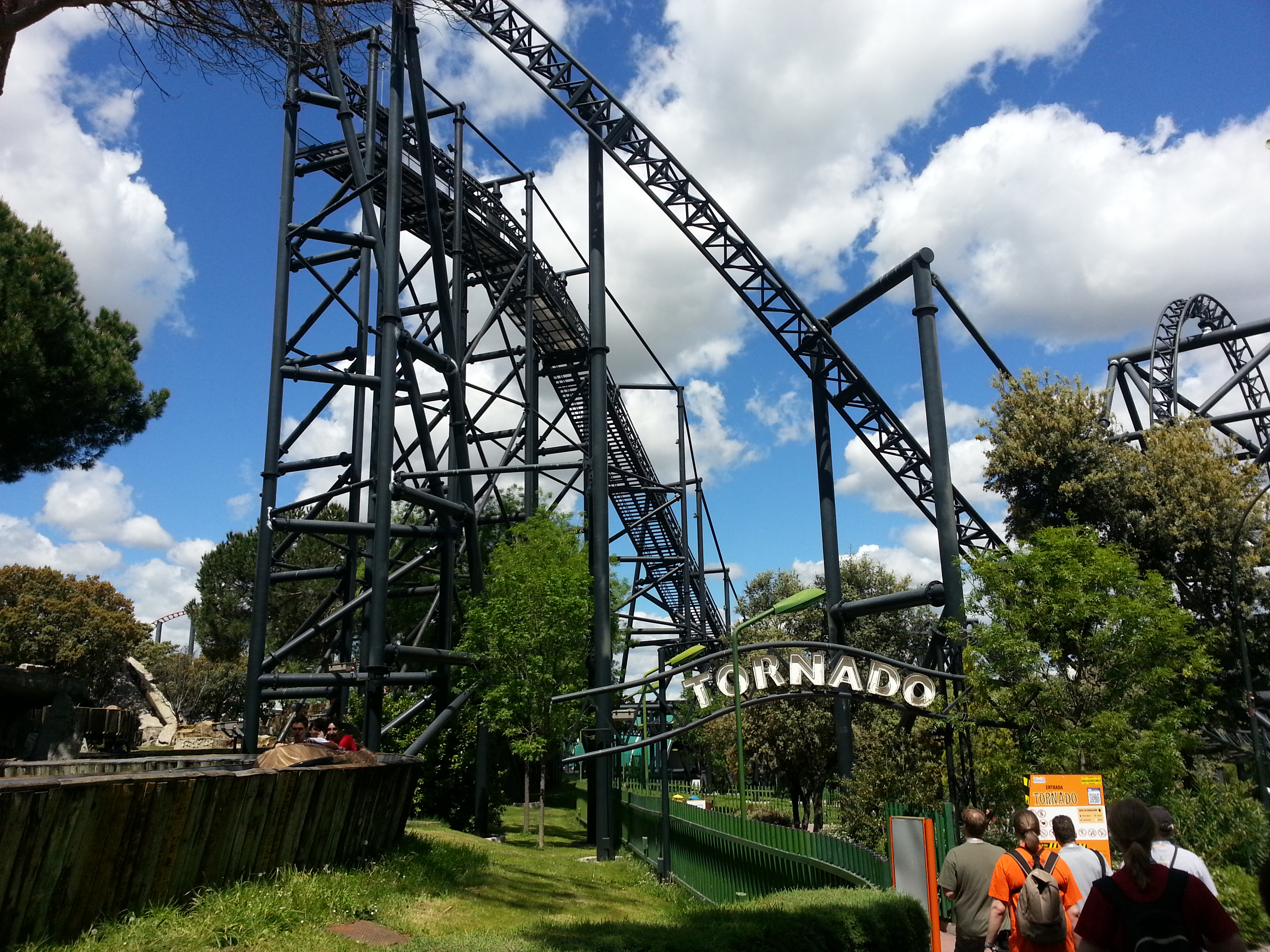 Nach dieser ernüchternden Nachricht kamen wir also bei Tornado an. Natürlich wollten wir mit der gesamten Mannschaft einen Zug füllen, doch dies dauerte etwas, weil die Mitarbeiter des Parks sich ein wenig Zeit ließen um die Überreste zu beseitigen, die von einem Fahrgast hinterlassen wurden. Ums kürzer sagen: die Fahrt war wohl zum kotzen.
