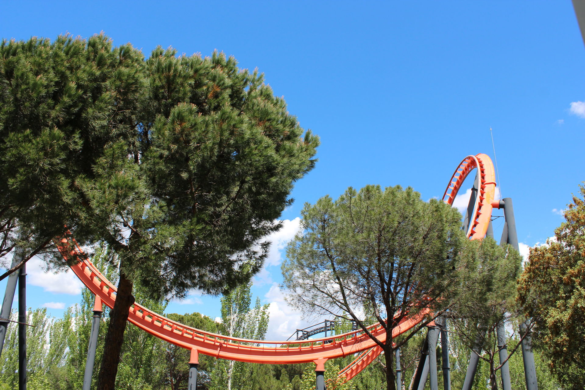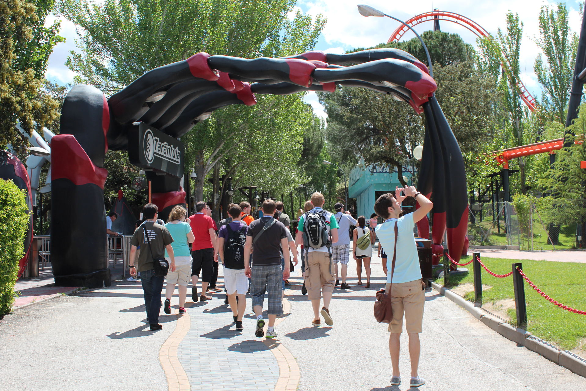 Danach ging es mit der ganzen Mannschaft begleitend von guter Party-Musik, zum Themenbereich "Zona del Maquinismo", wo Konsorten wie Abismo, der Free-Fall, Tarantula und Tornado standen. Auf dem Weg zu Tornado (die Bahn welche als nächstes Folgen sollte, weil dieser Nina's 800ster Coaster gewesen ist) ergaben sich ein paar schöne Foto-Motive.
